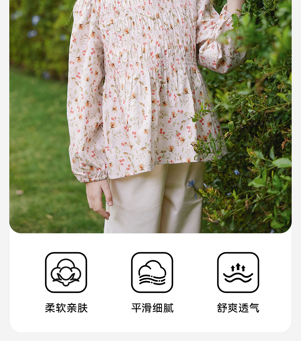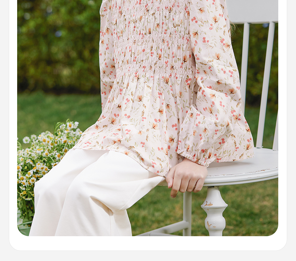 英氏儿童衬衫夏长袖甜美女童碎花上衣女孩可爱夏日套头衫2025新款