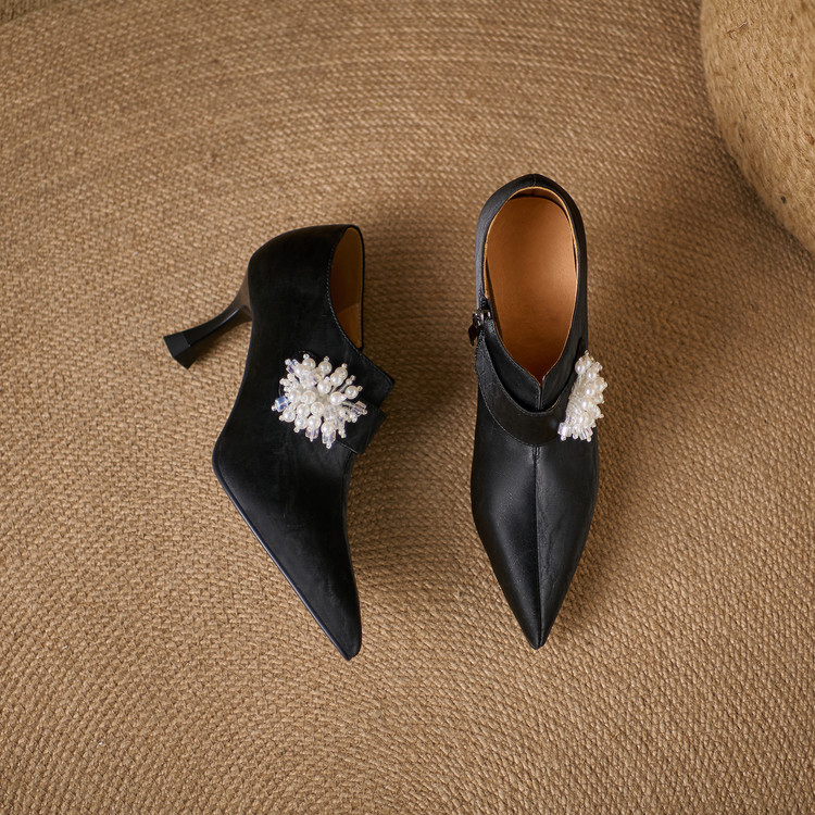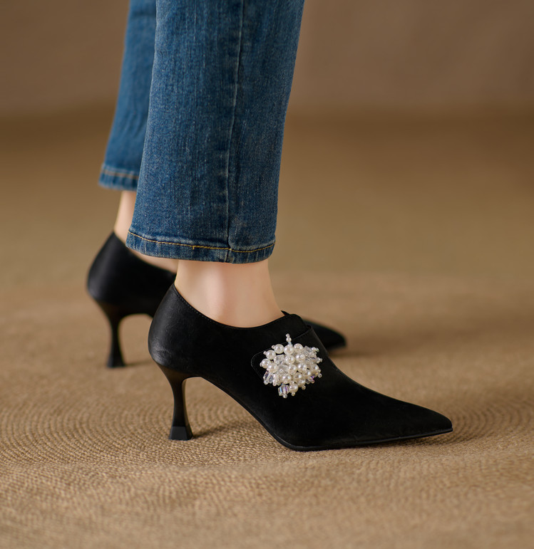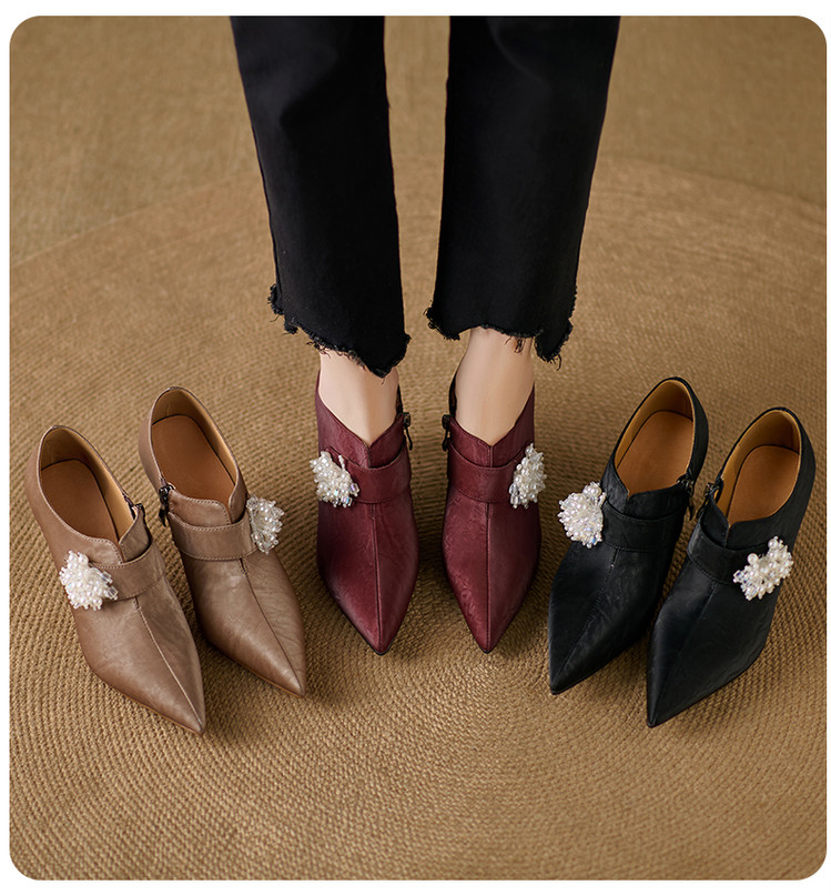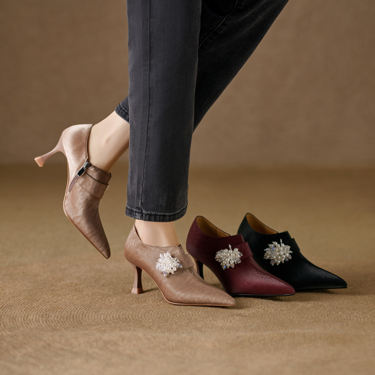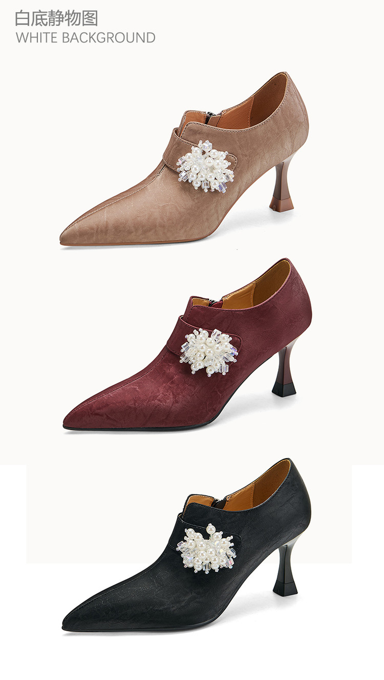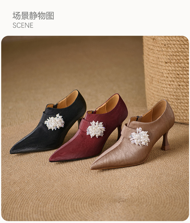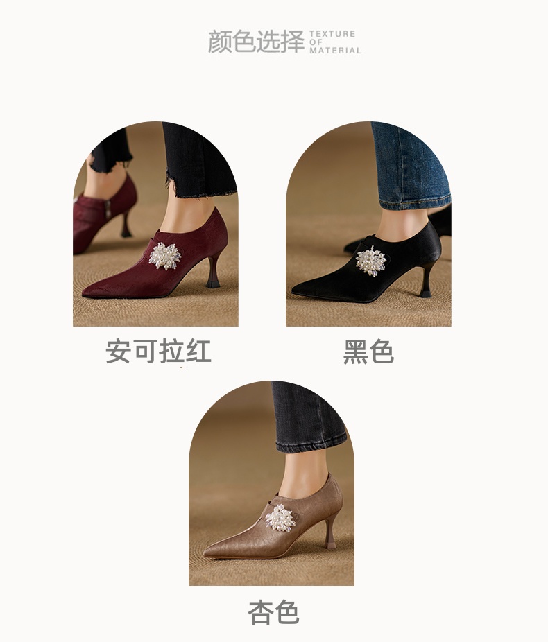 【预售5天】时尚气质细跟高跟及裸靴法式复古真皮新中式显瘦尖头深口单鞋女YS&YSD7106