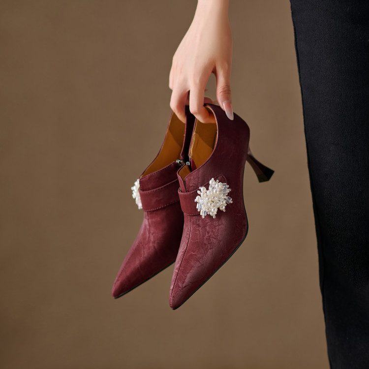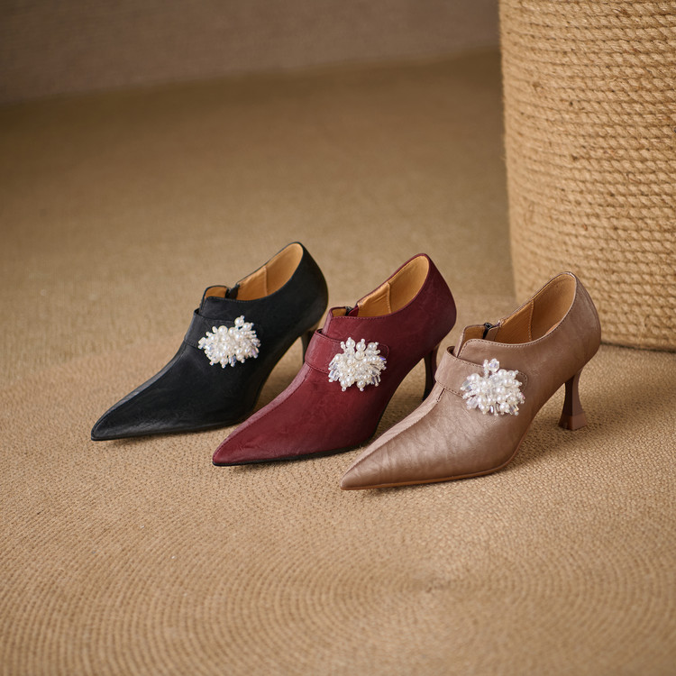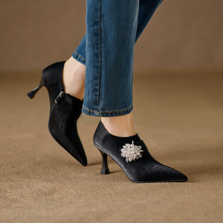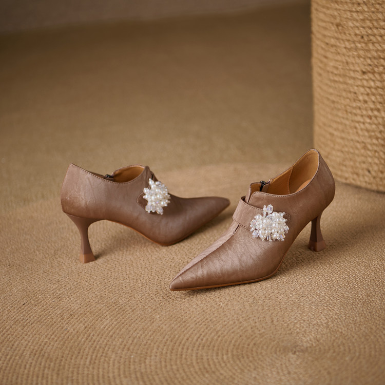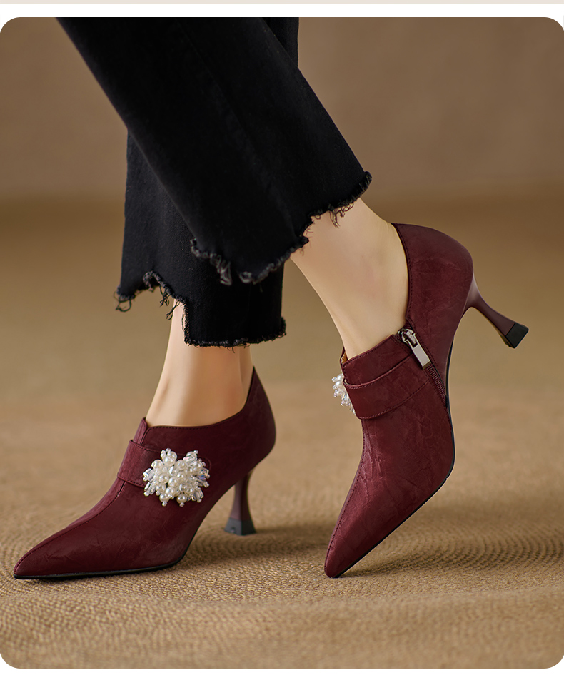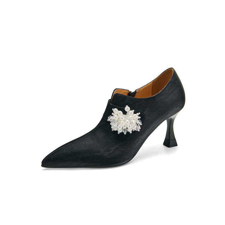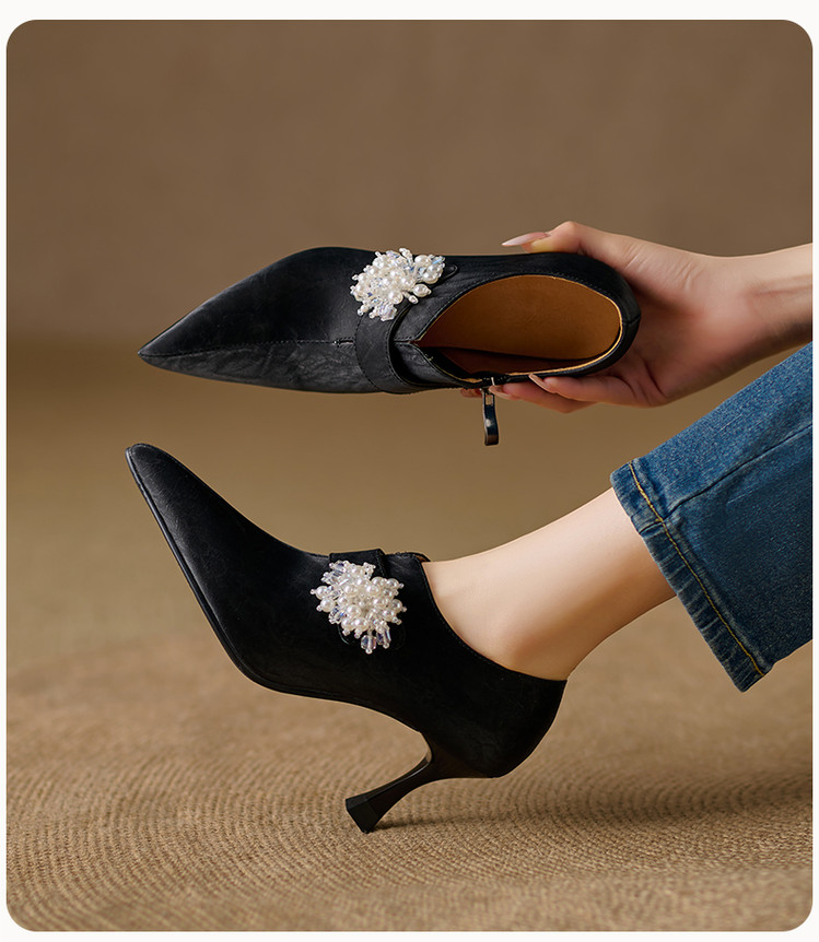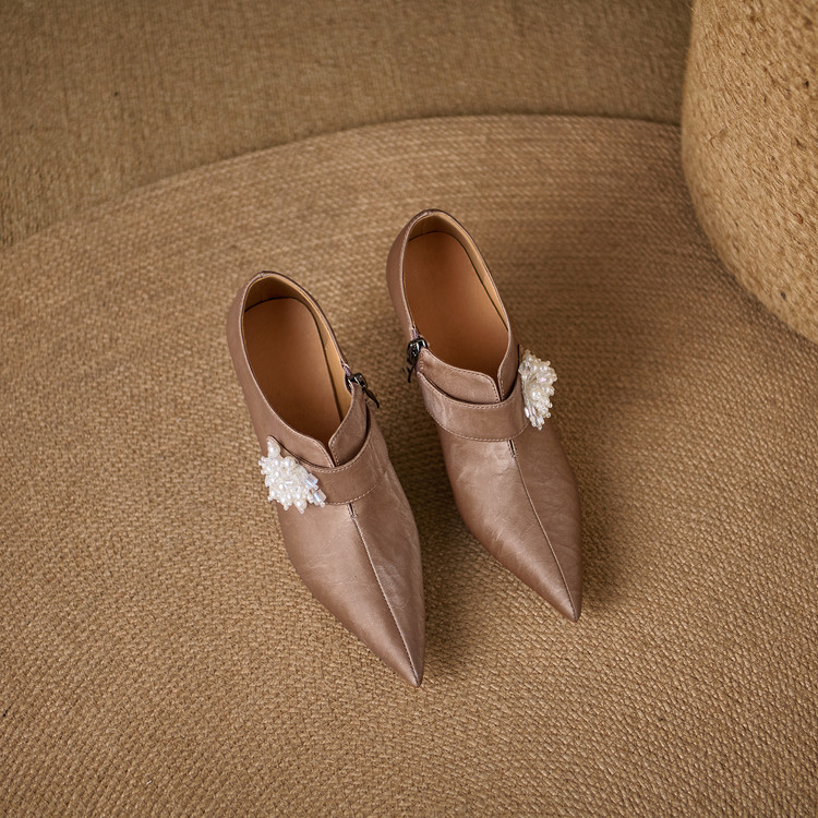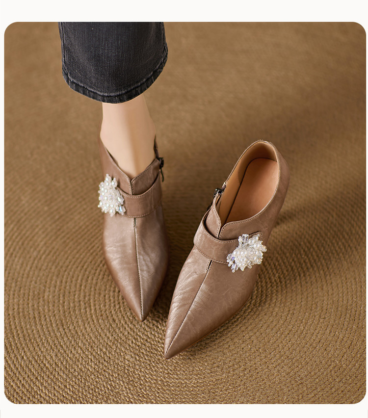 【预售5天】时尚气质细跟高跟及裸靴法式复古真皮新中式显瘦尖头深口单鞋女YS&YSD7106