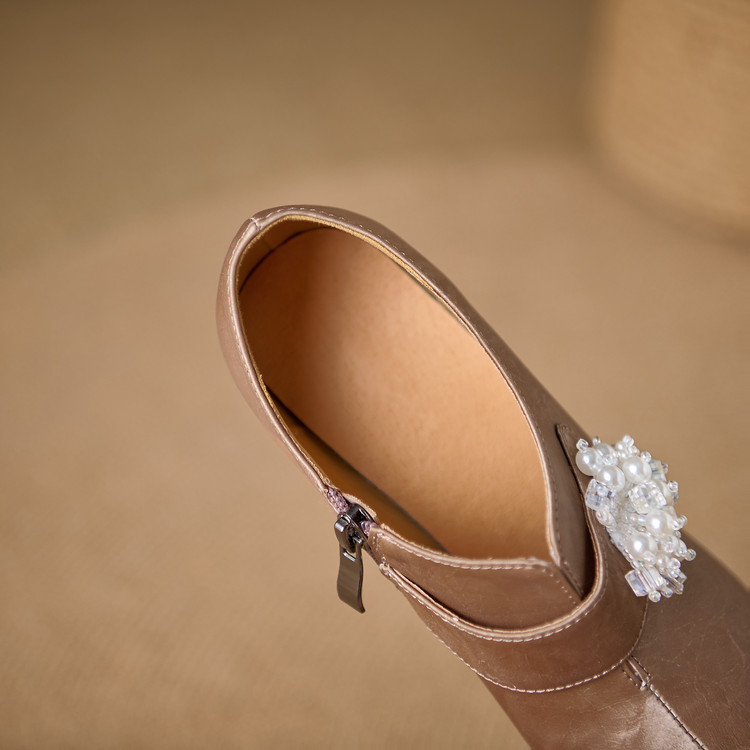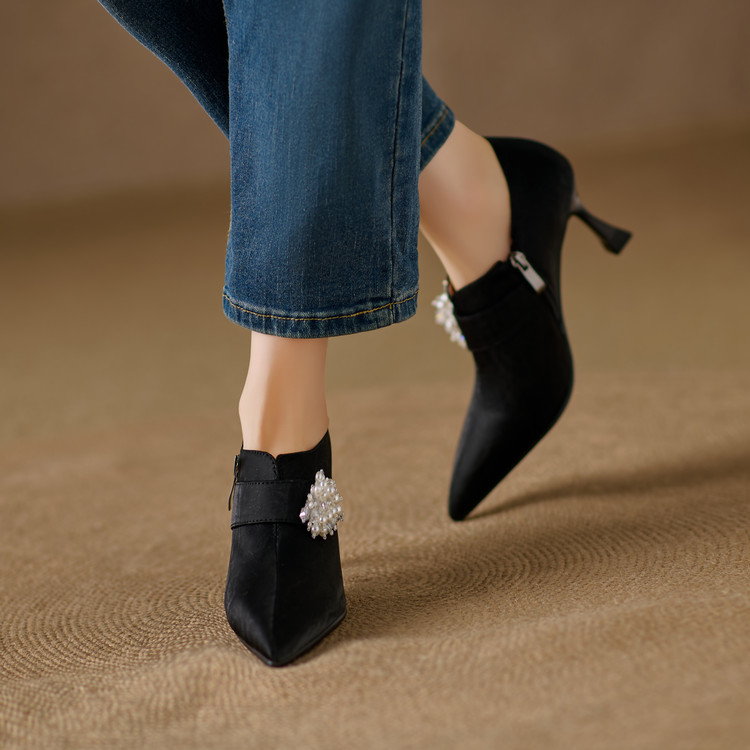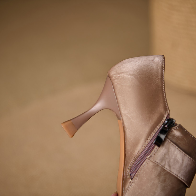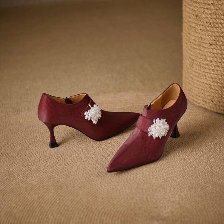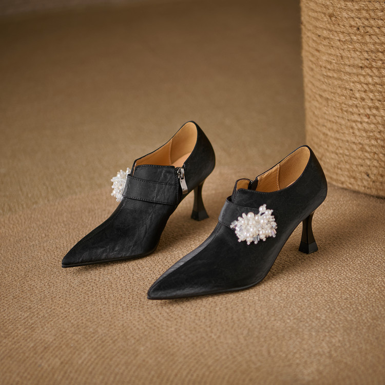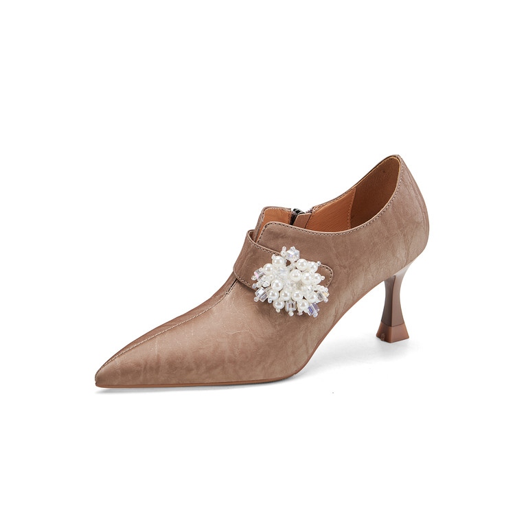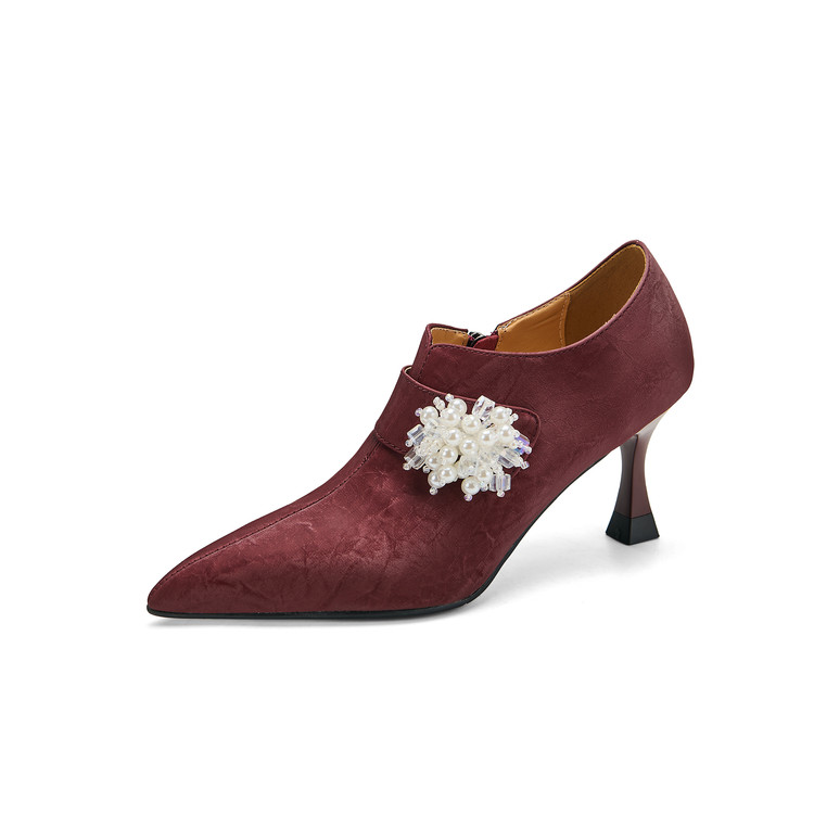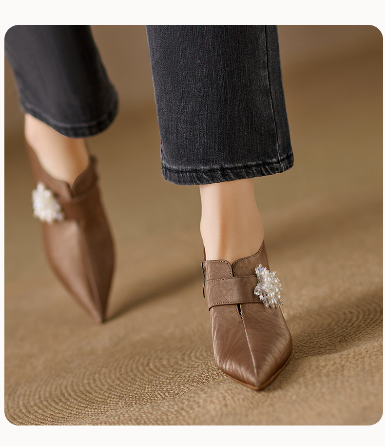 【预售5天】时尚气质细跟高跟及裸靴法式复古真皮新中式显瘦尖头深口单鞋女YS&YSD7106
