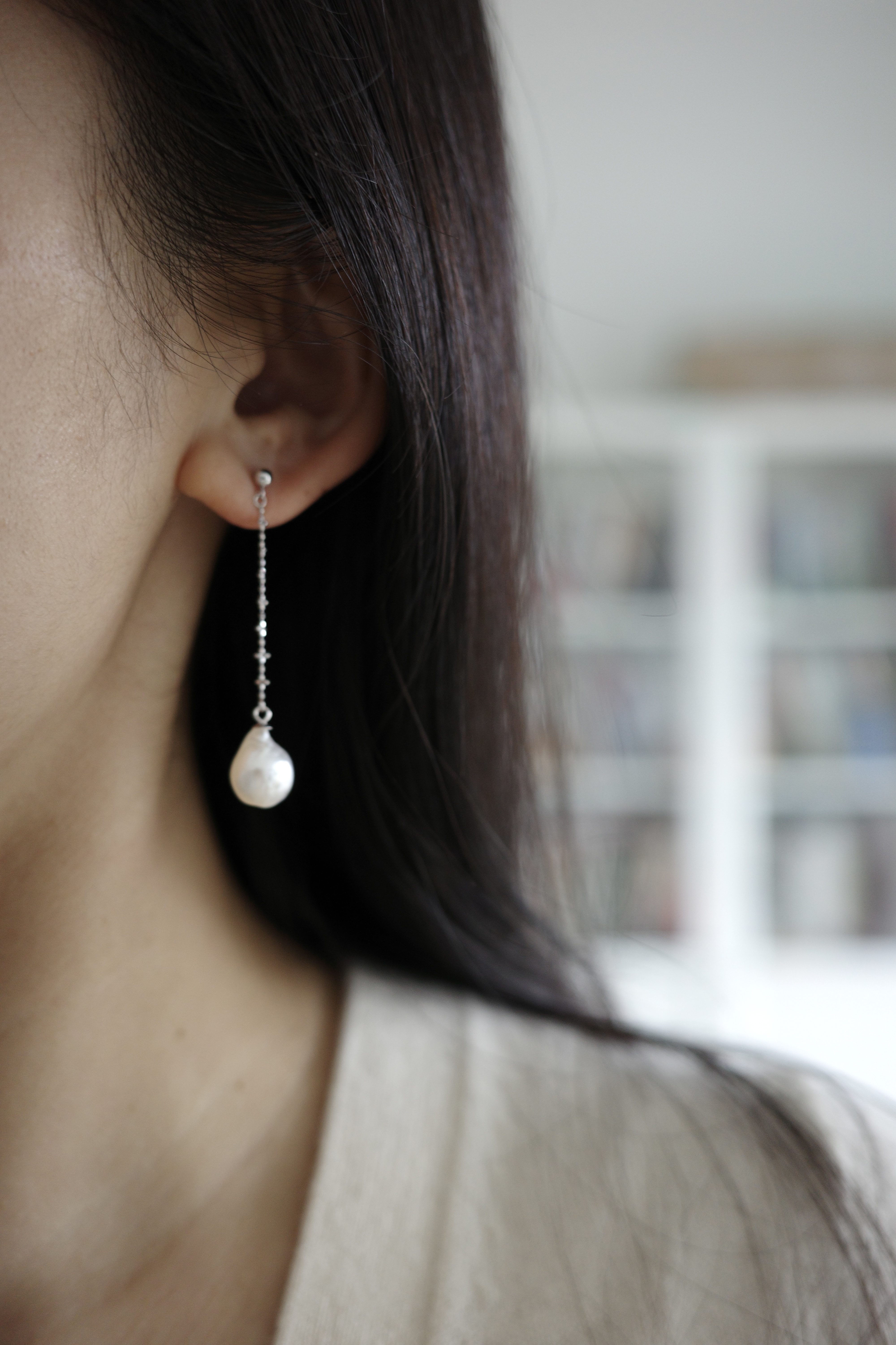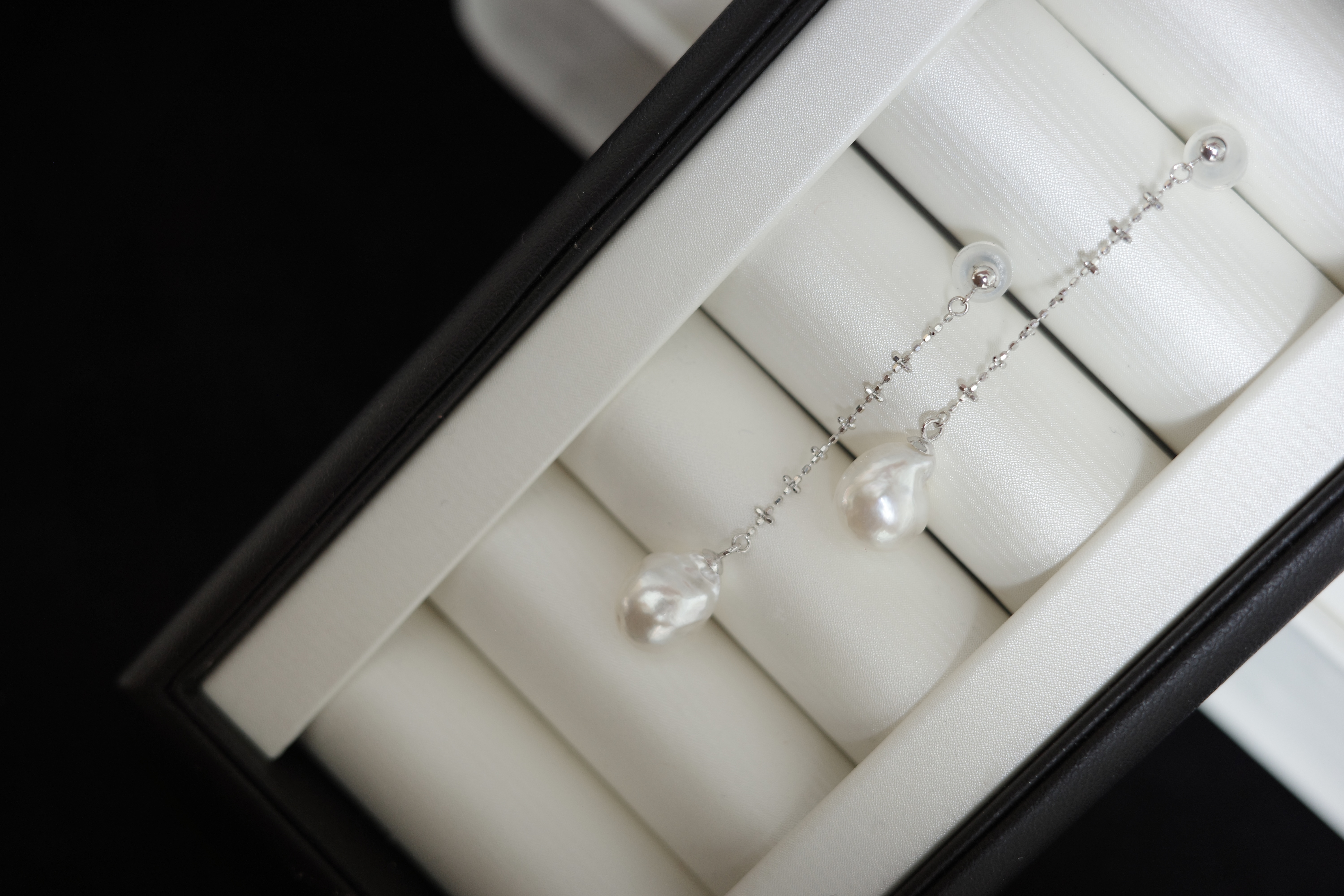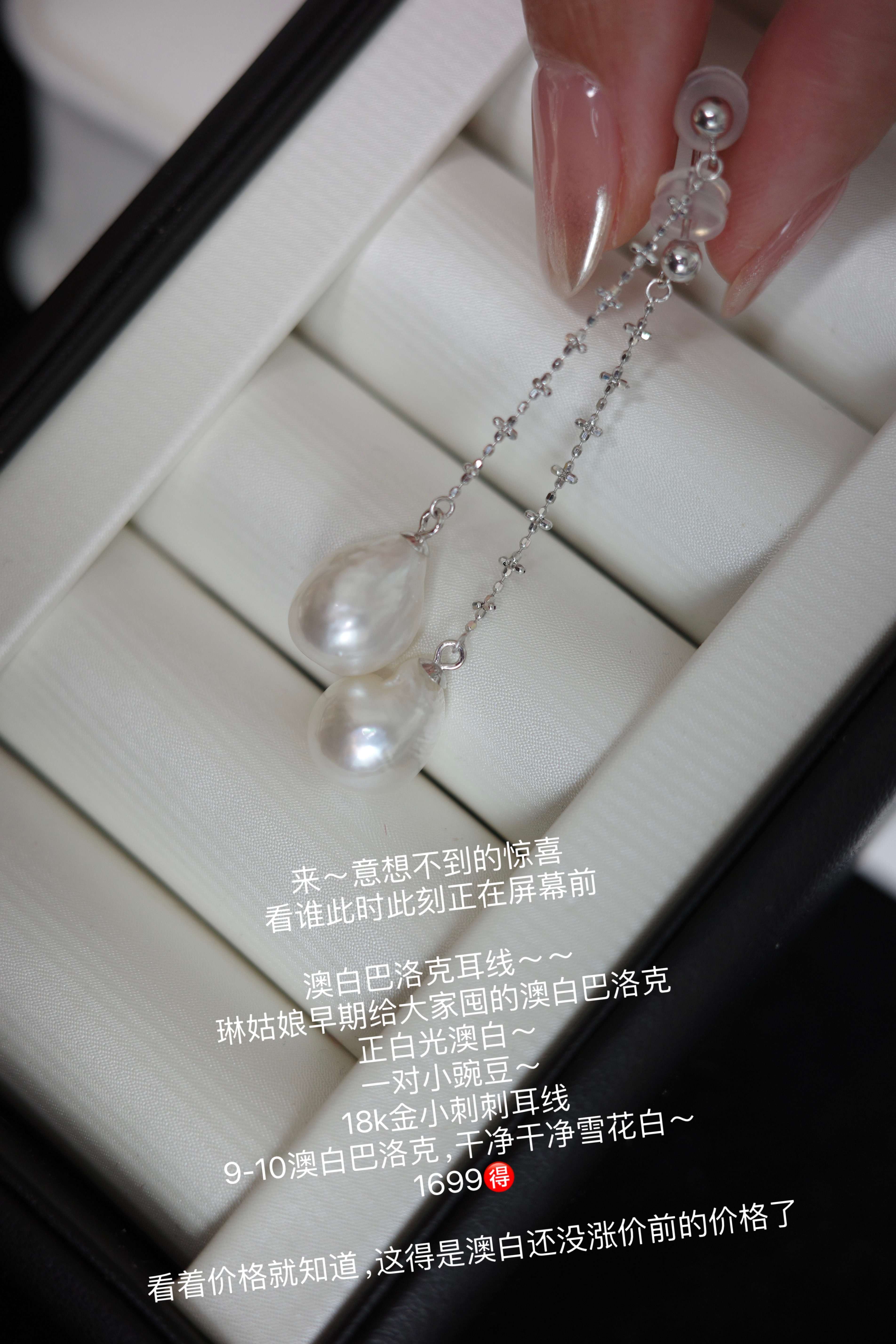 澳白巴洛克耳线~~早期给大家囤的澳白巴洛克正白光澳白~一对小豌豆~18k金小刺刺耳线9-10mm澳白巴洛克,干净干净雪花白~1699🉐️