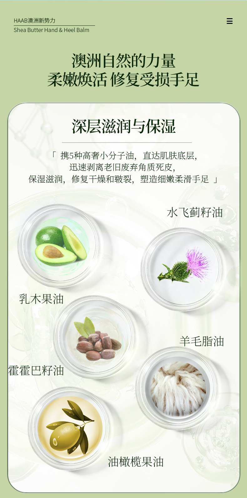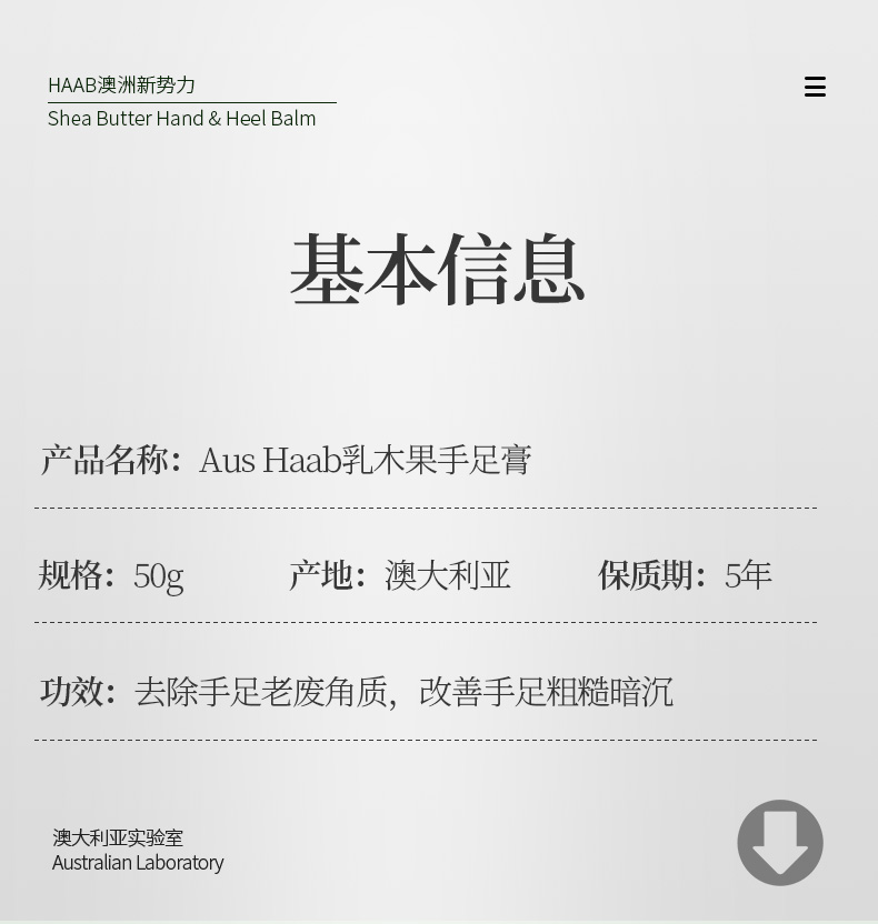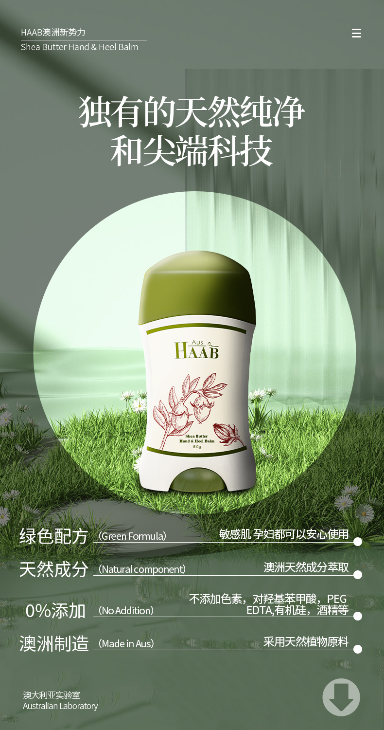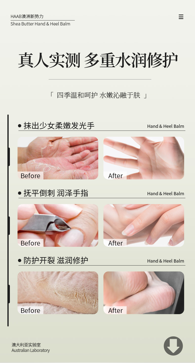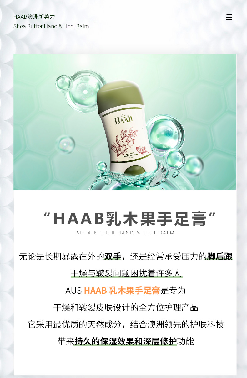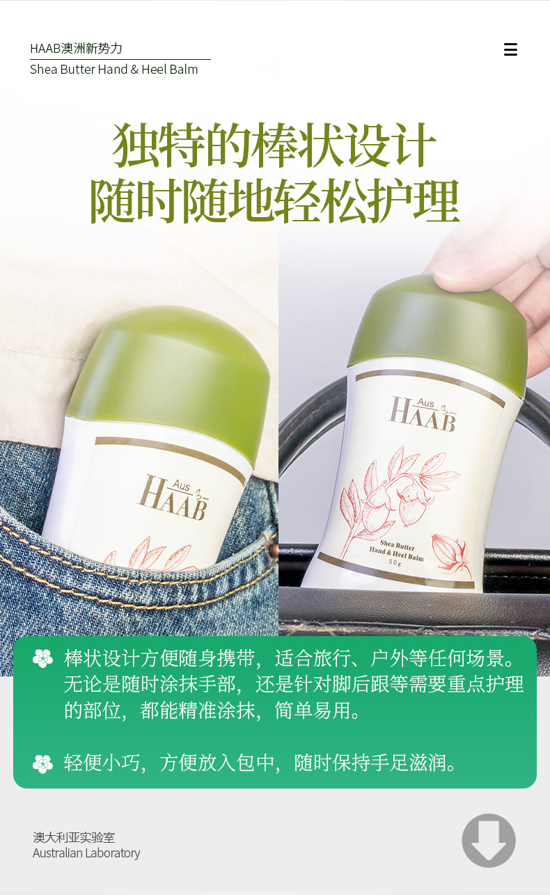 干裂无踪!澳洲HAAB乳木果油手足膏50G 保湿防护开裂脚部护理霜
