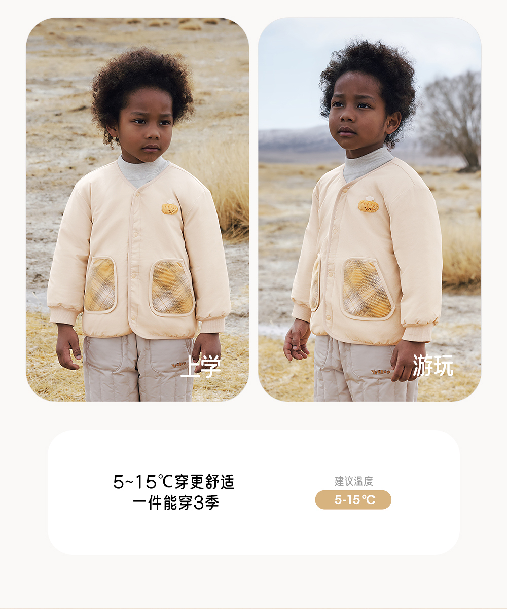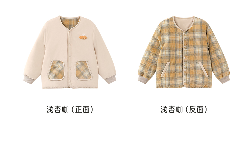 【商场同款】英氏男宝宝双面外套秋冬装新款加厚保暖儿童格子上衣