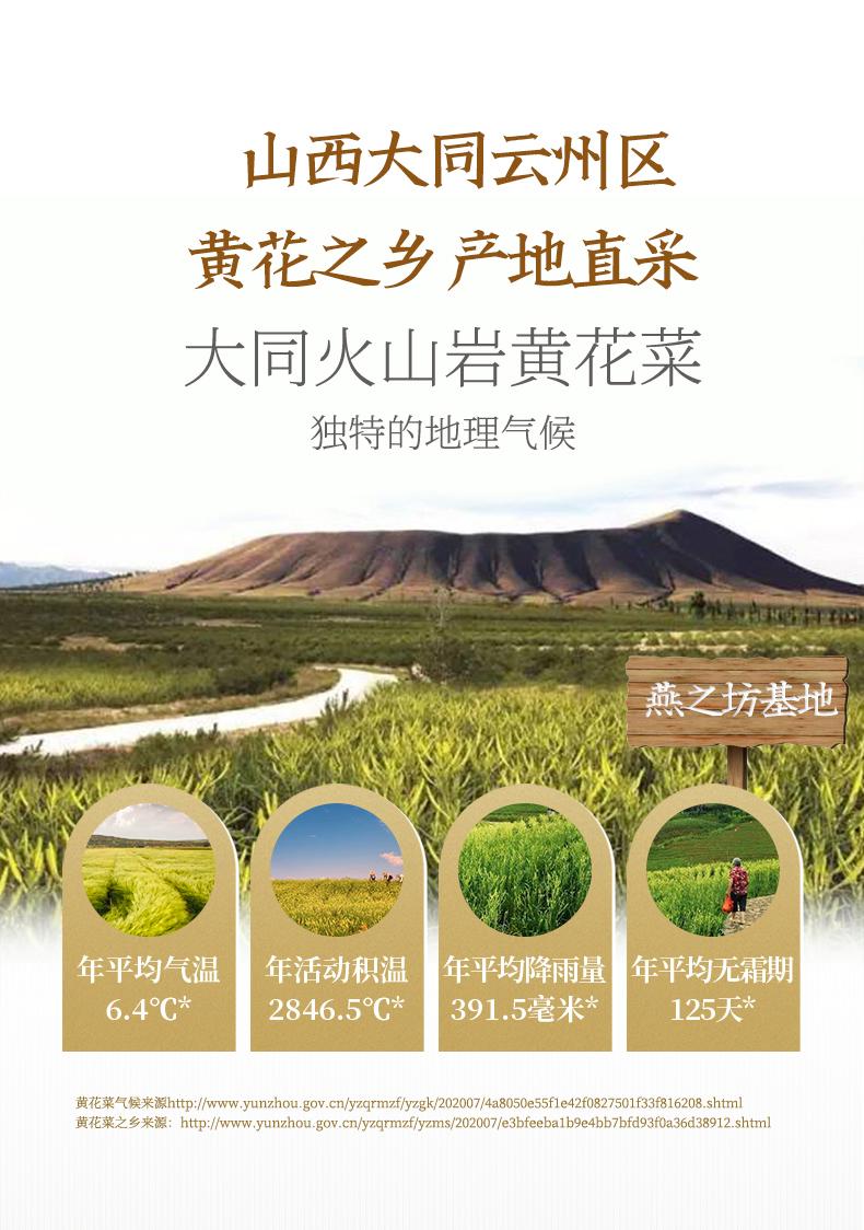 新鲜无硫黄花菜大同火山岩原产【燕之坊】金针黄花菜200g 50g*3易泡肉厚 农家干货