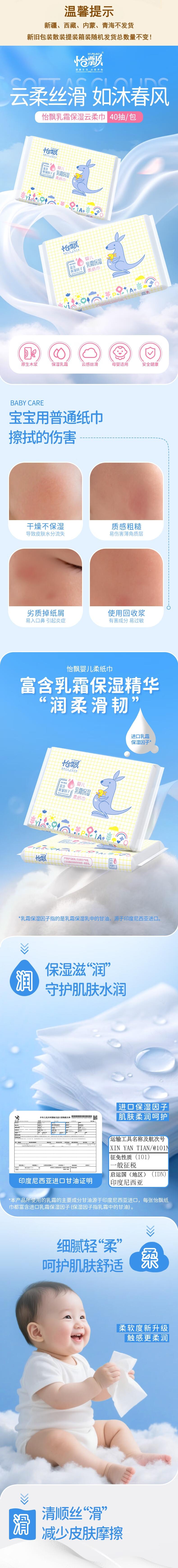 怡飘 袋鼠系列保湿乳霜抽纸3层40抽*60包 YP40C60B-RS