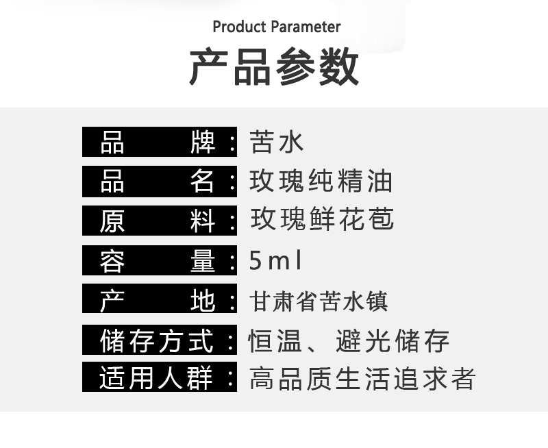 苦水印象牌口服玫瑰油5ml甘肃核心产区玫瑰蒸馏提取按摩护肤玫瑰纯精油