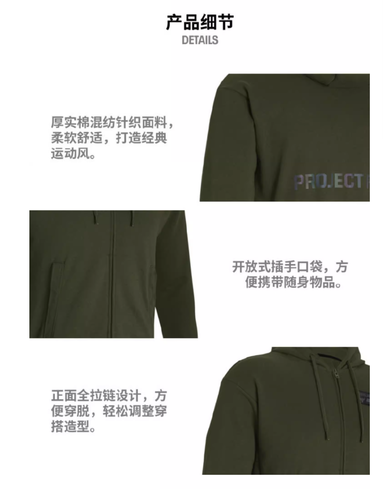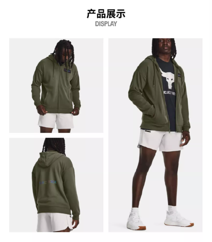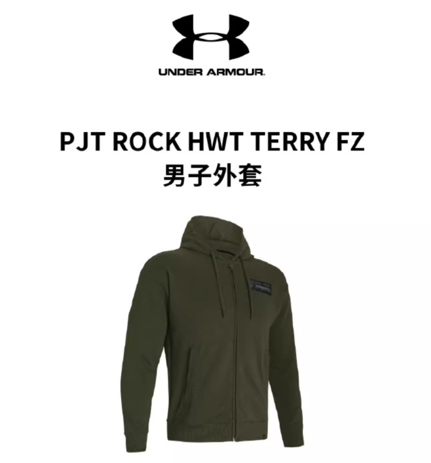【M/L/XL码,如无货将做退款】安德玛男士UA Project Rock强森高克重棉织全拉链运动上衣 1380151-390