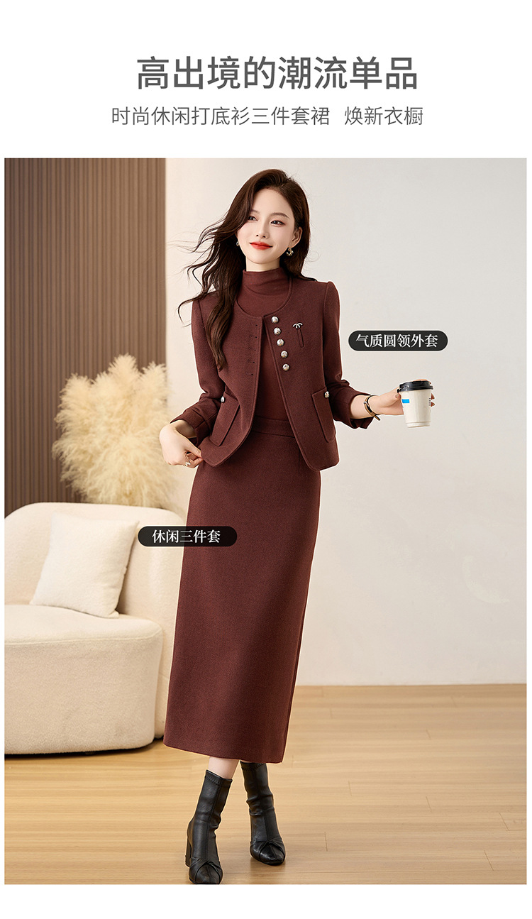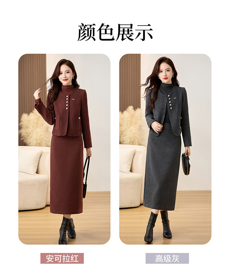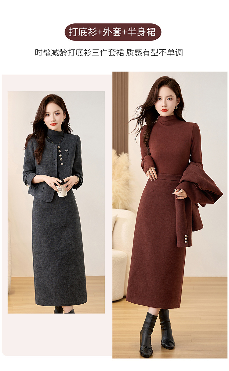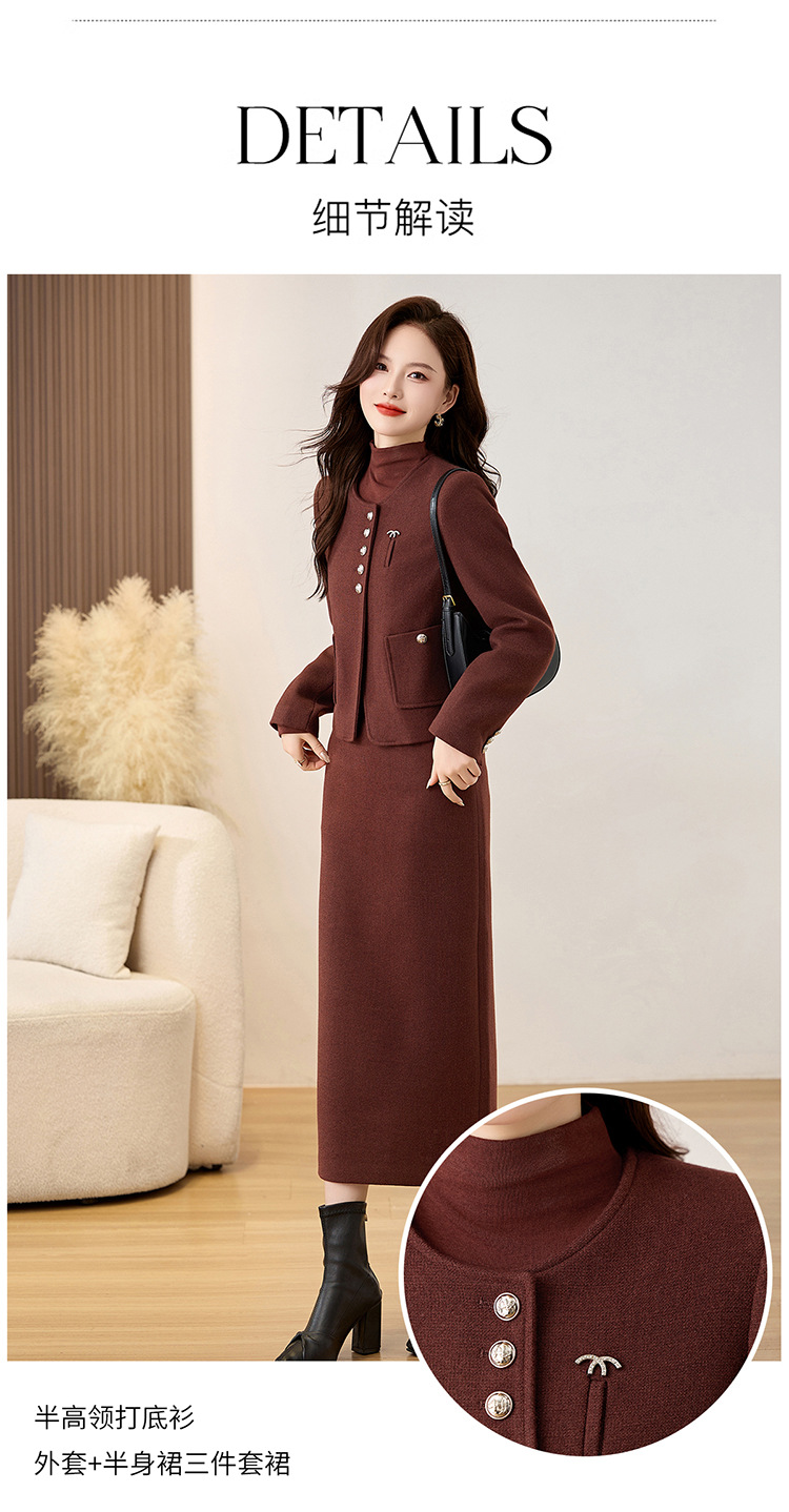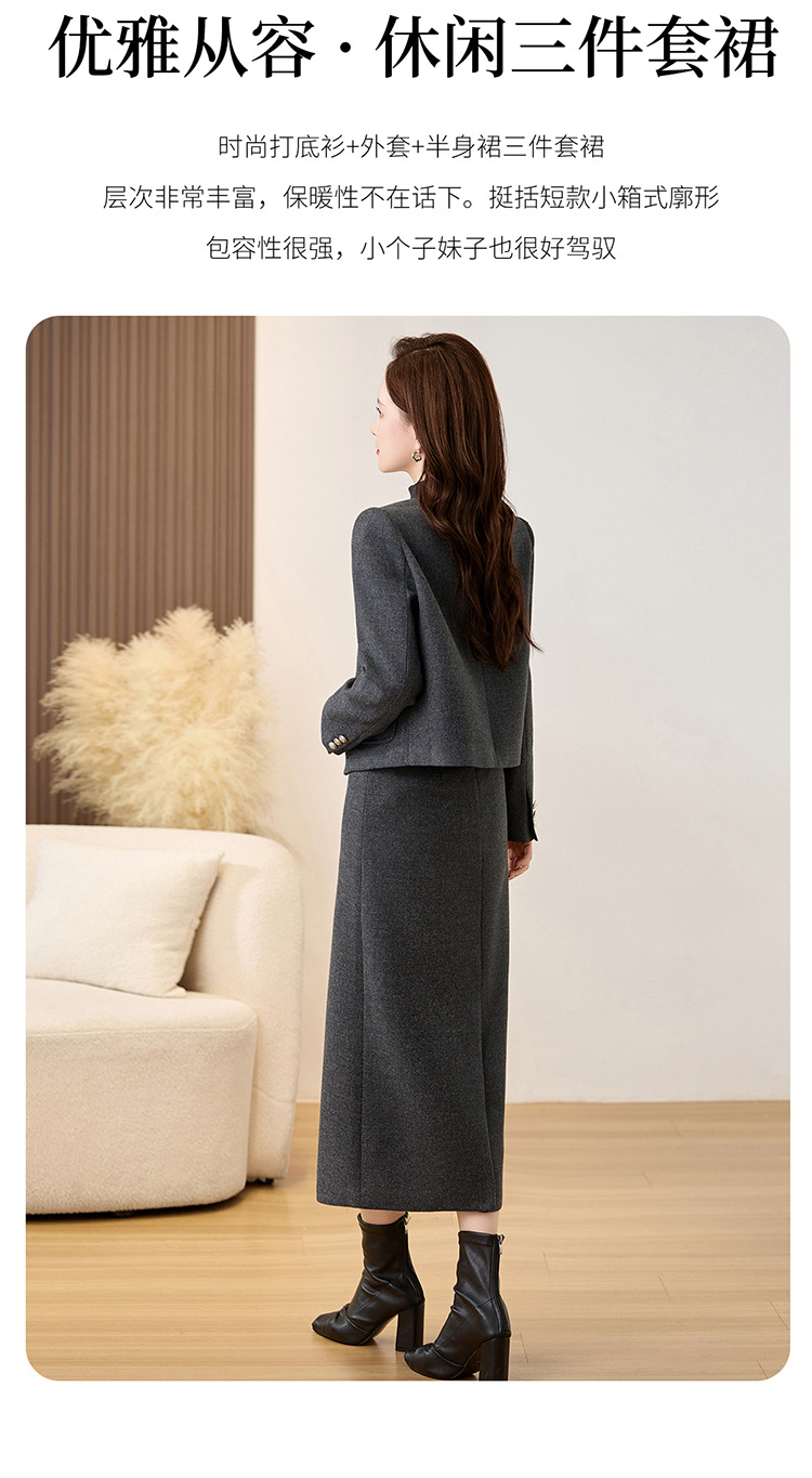 HR MEIQIN1866法式气质小香风毛呢套装裙名媛气质时尚三件套裙 商品图5