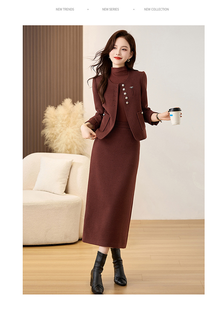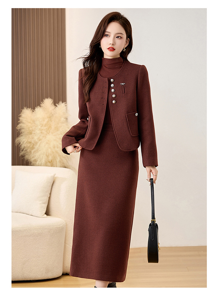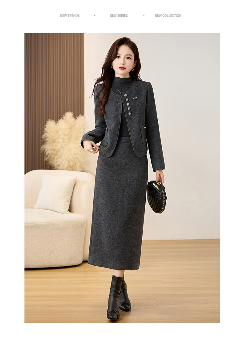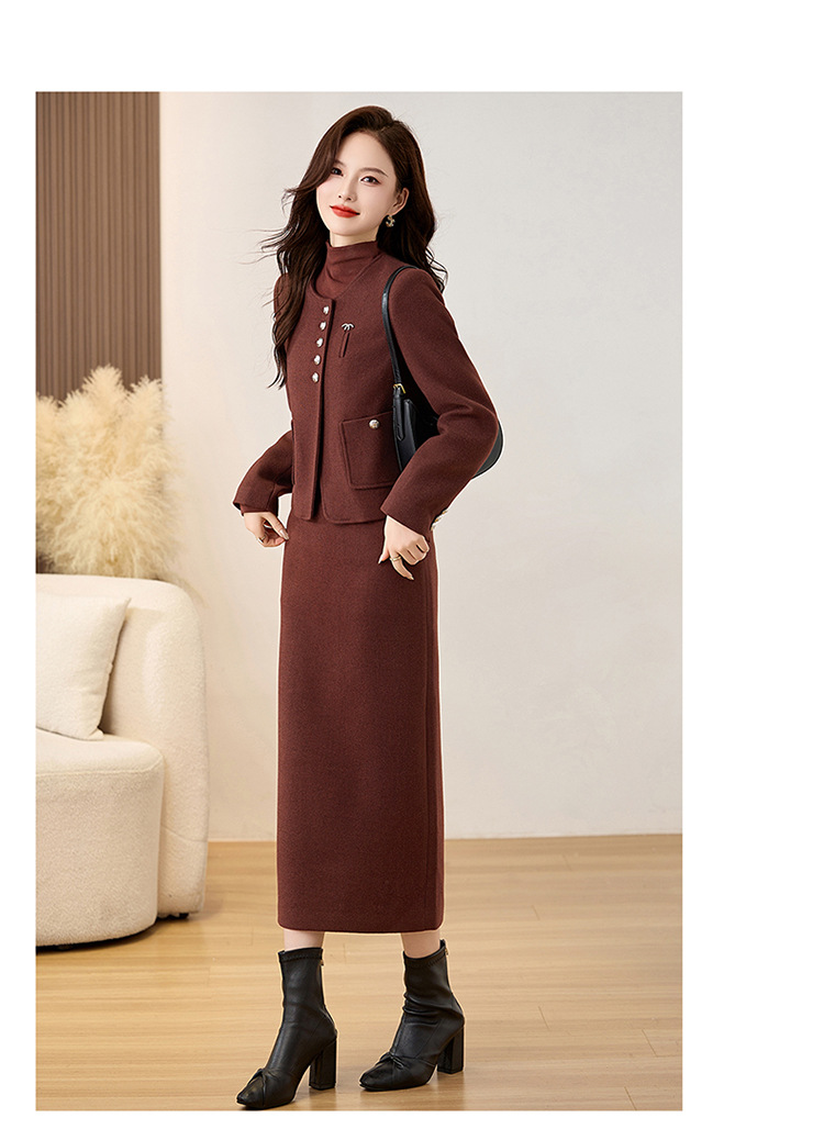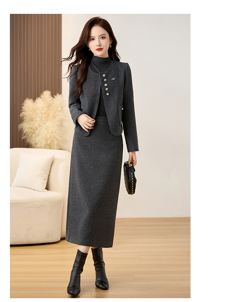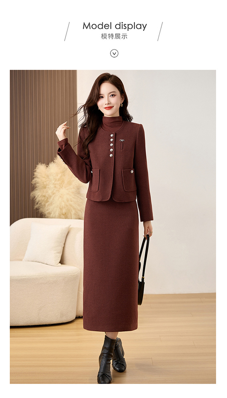 HR MEIQIN1866法式气质小香风毛呢套装裙名媛气质时尚三件套裙 商品图5