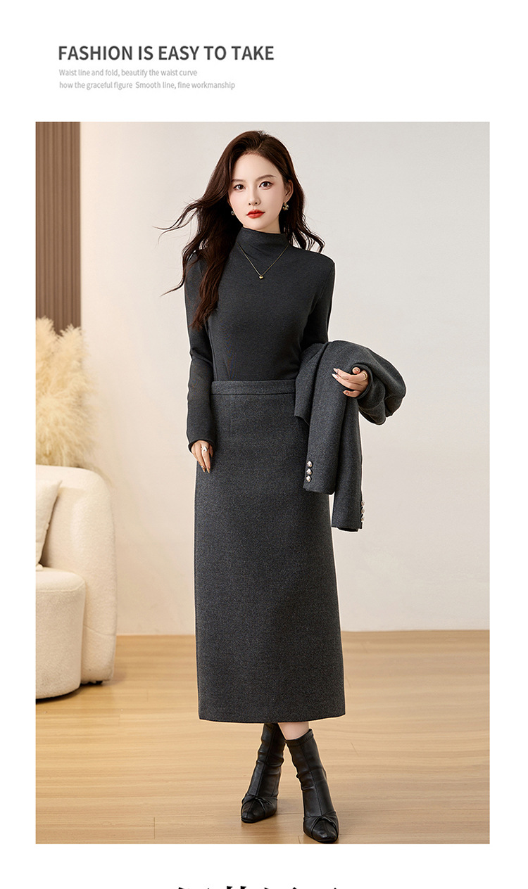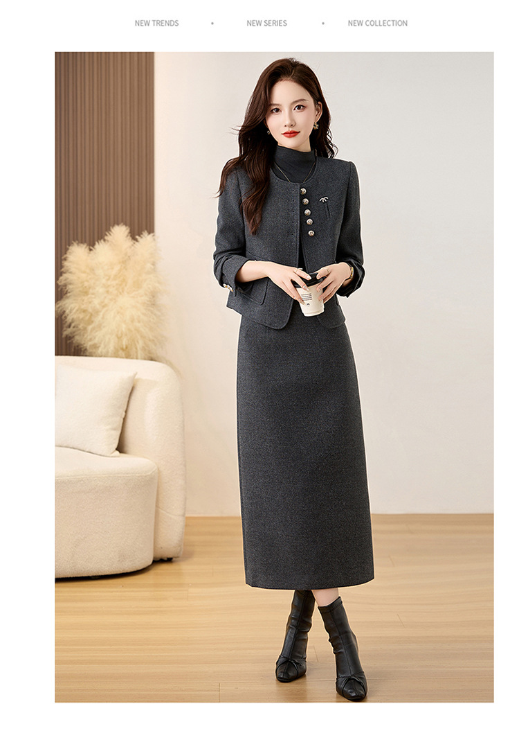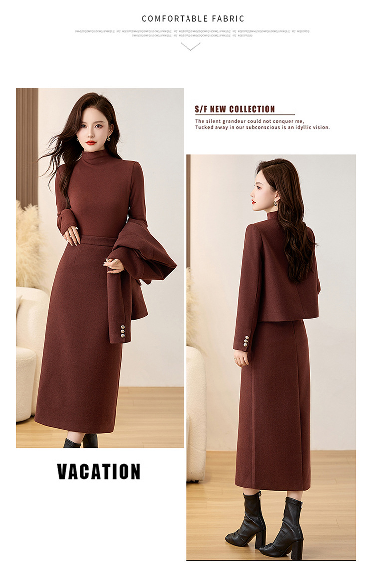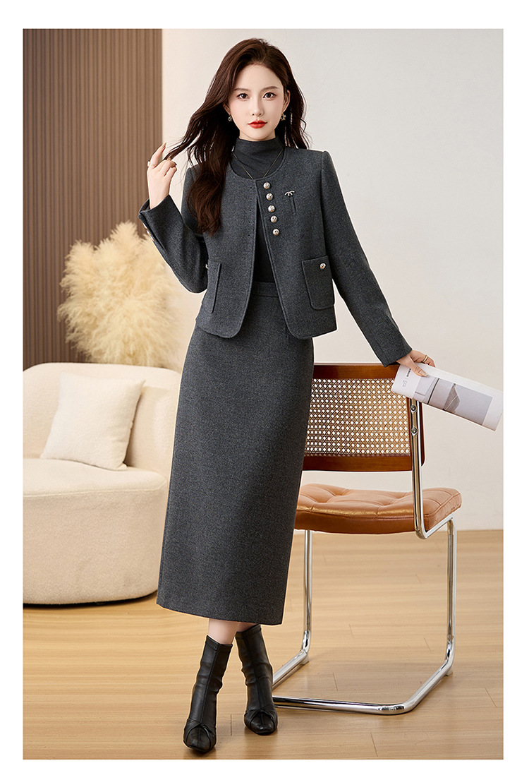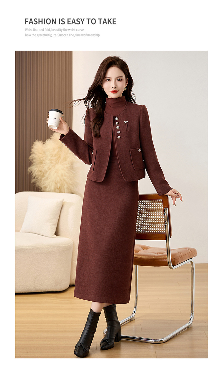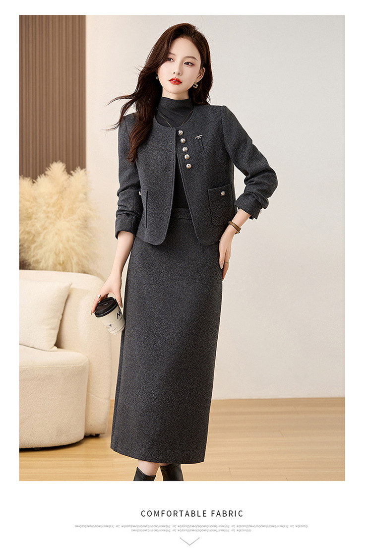 HR MEIQIN1866法式气质小香风毛呢套装裙名媛气质时尚三件套裙 商品图5