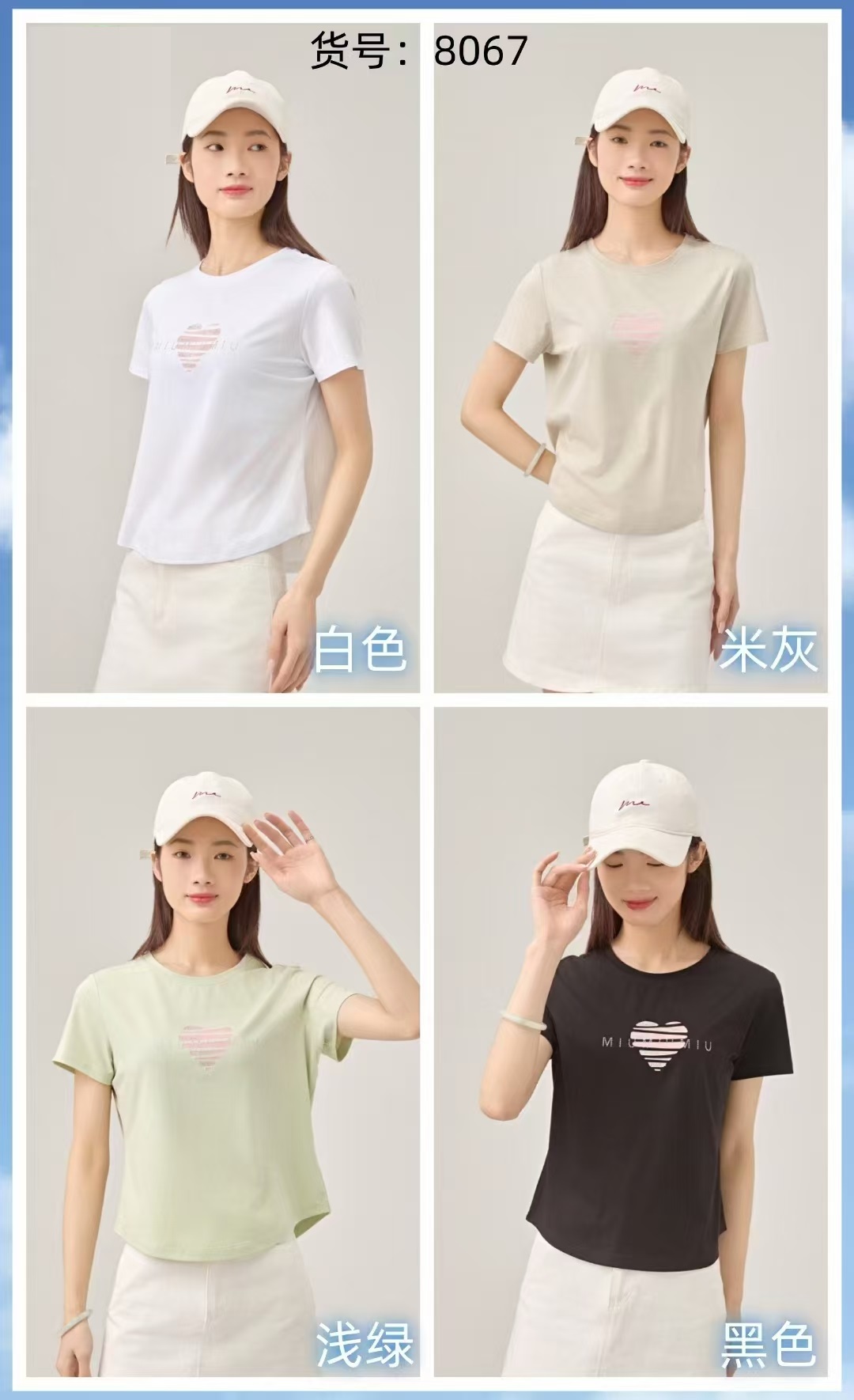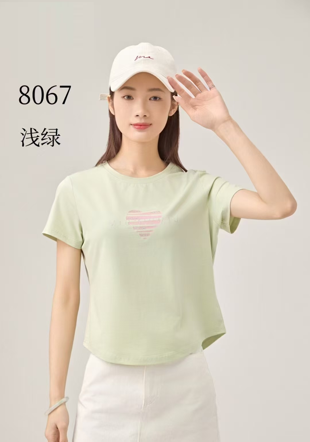 【品名】FF竹纤维女士竹棉爱心亮钻圆领半袖8067