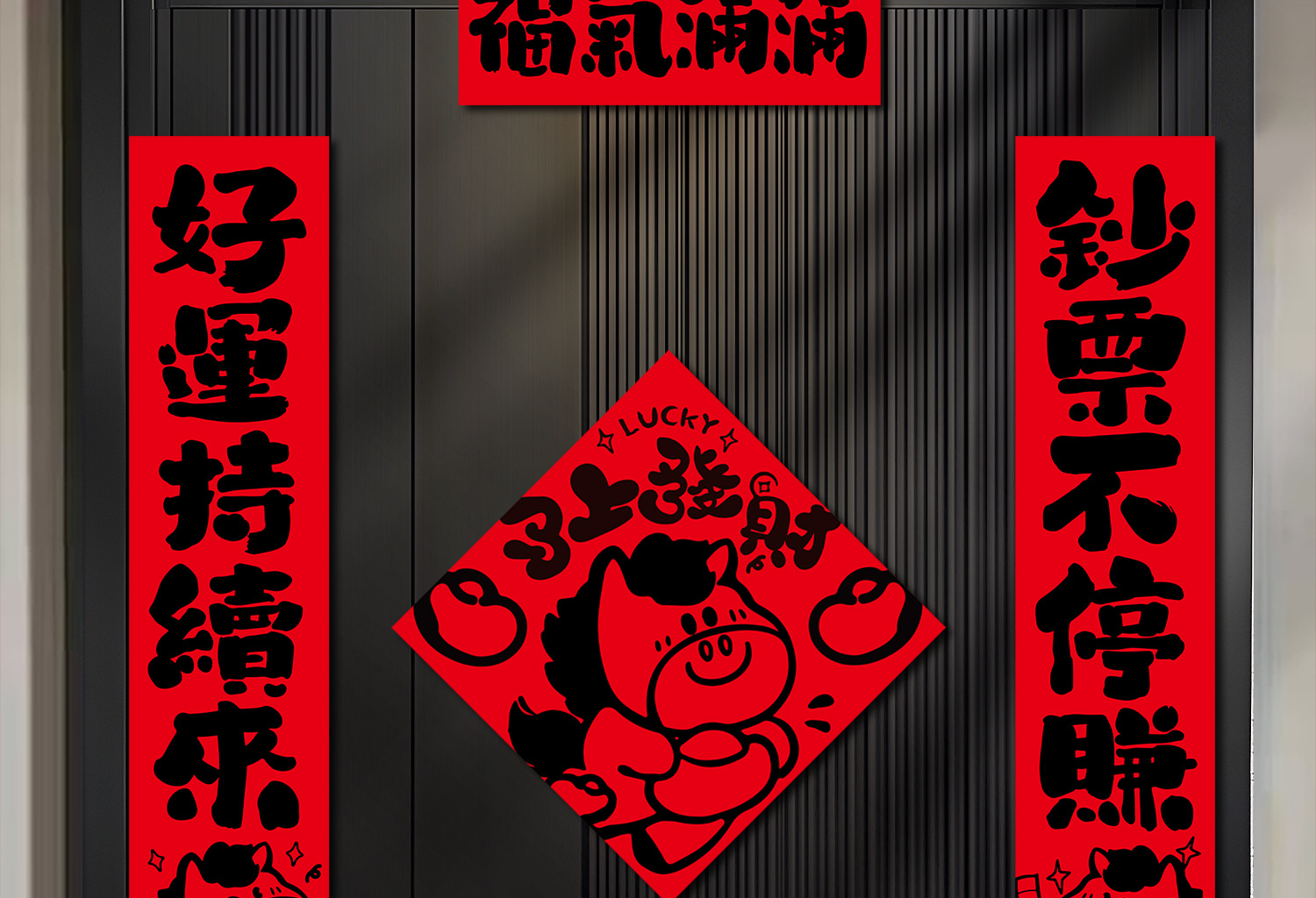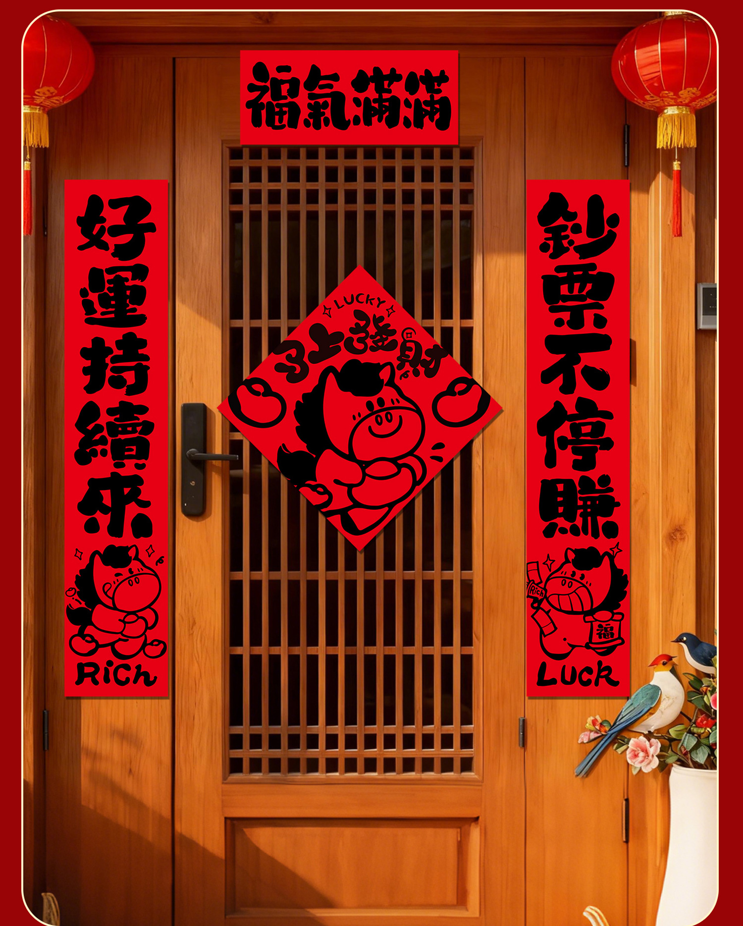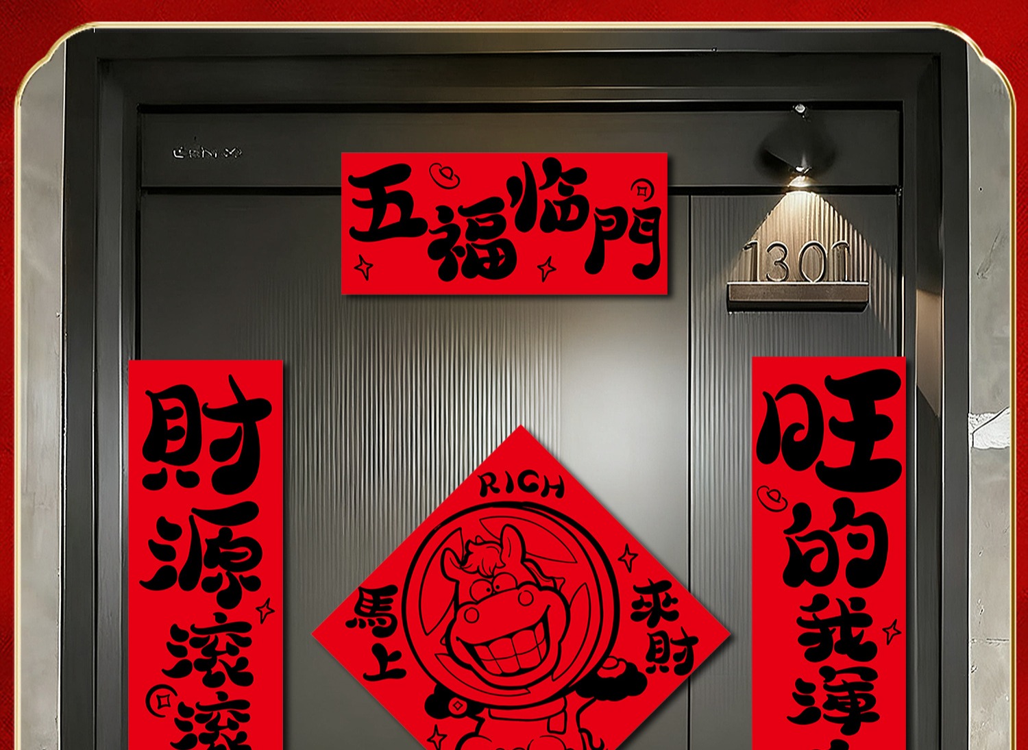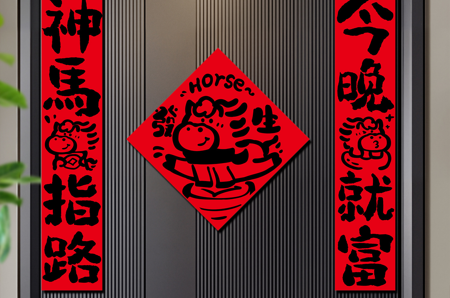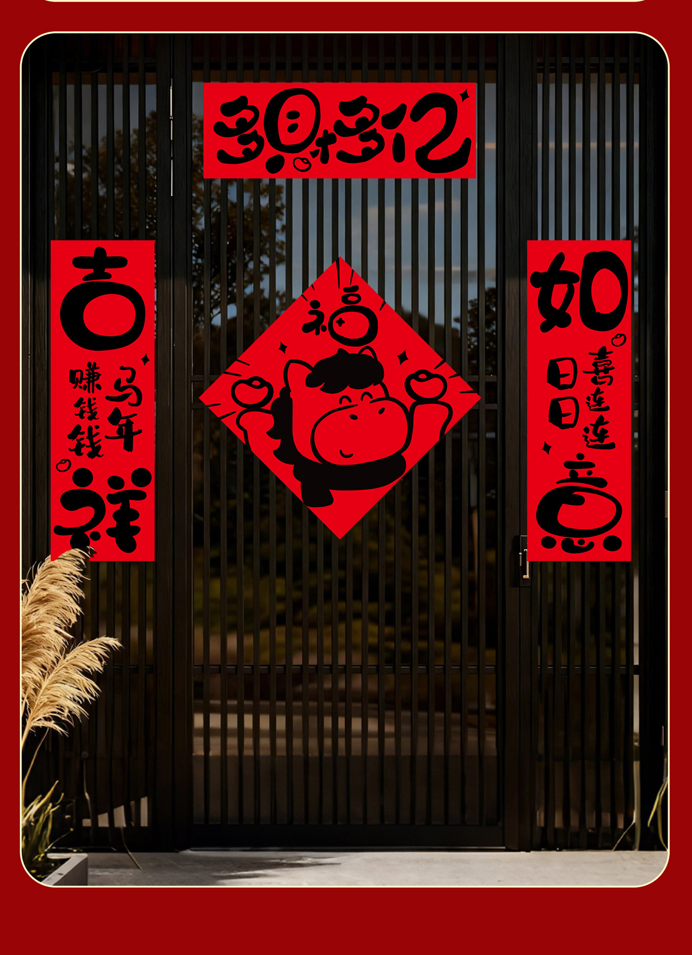 【趣味书法马年对联福字门贴套装】2026马年春节过年布置新年装饰品铜版纸盒装春联