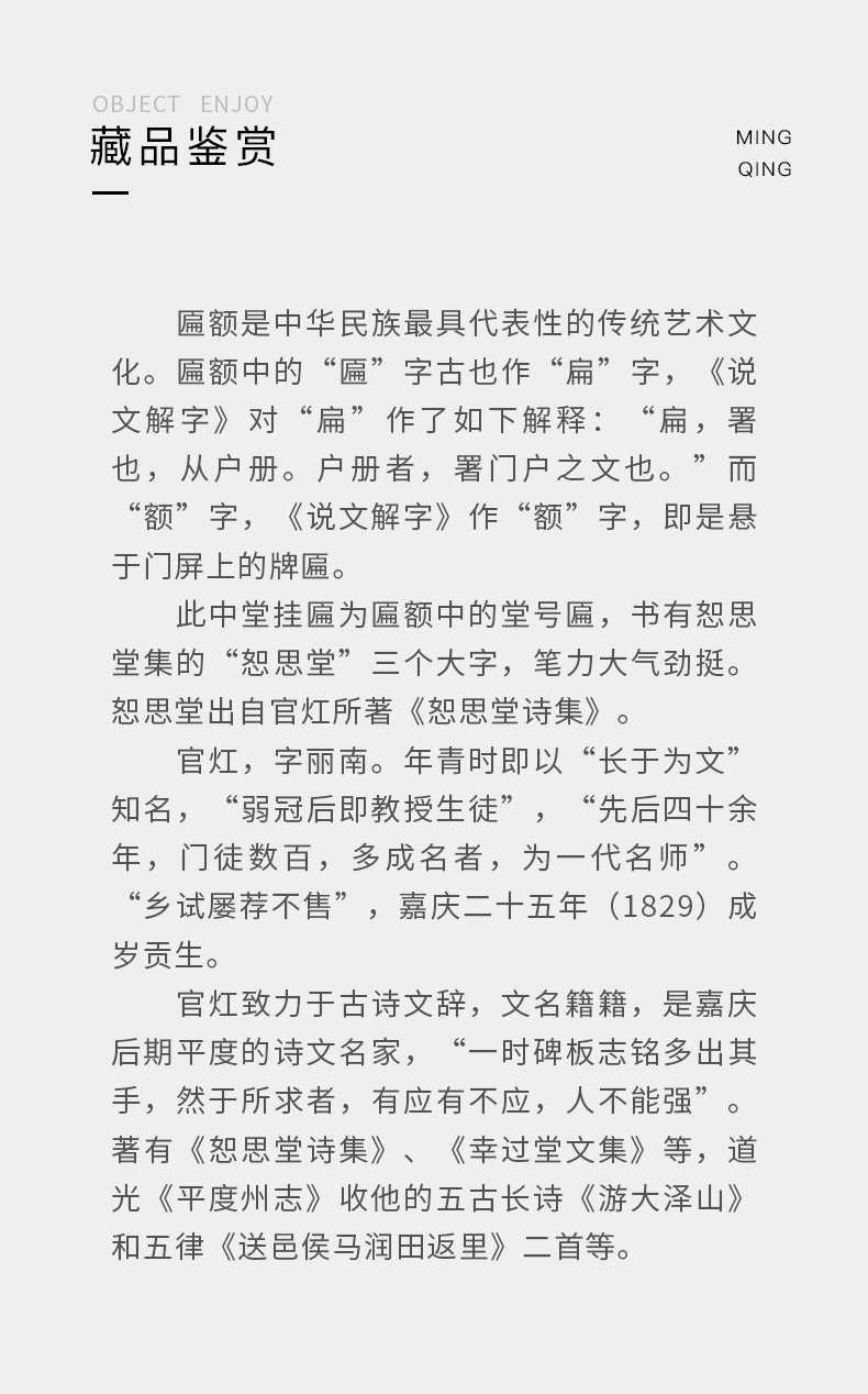 清 “恕思堂”中堂挂匾