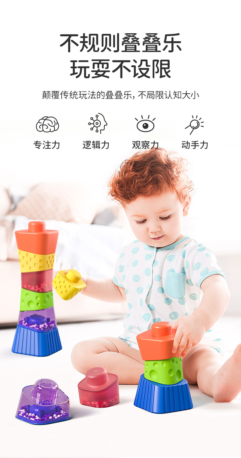 【儿益智早教!不规则叠叠乐】丰富的颜色和形状,激发宝宝的创造力和想象力,助力宝宝智力和手眼协调能力的全面发展li。