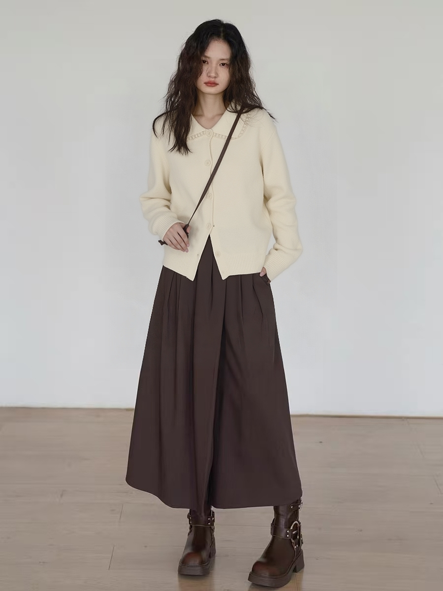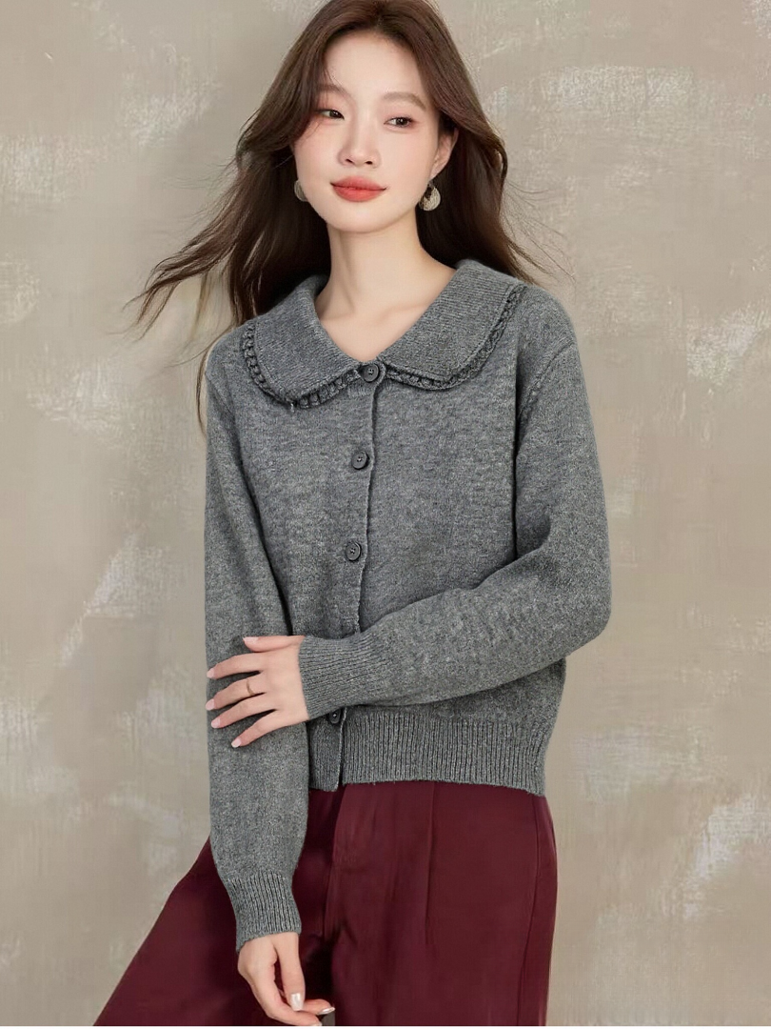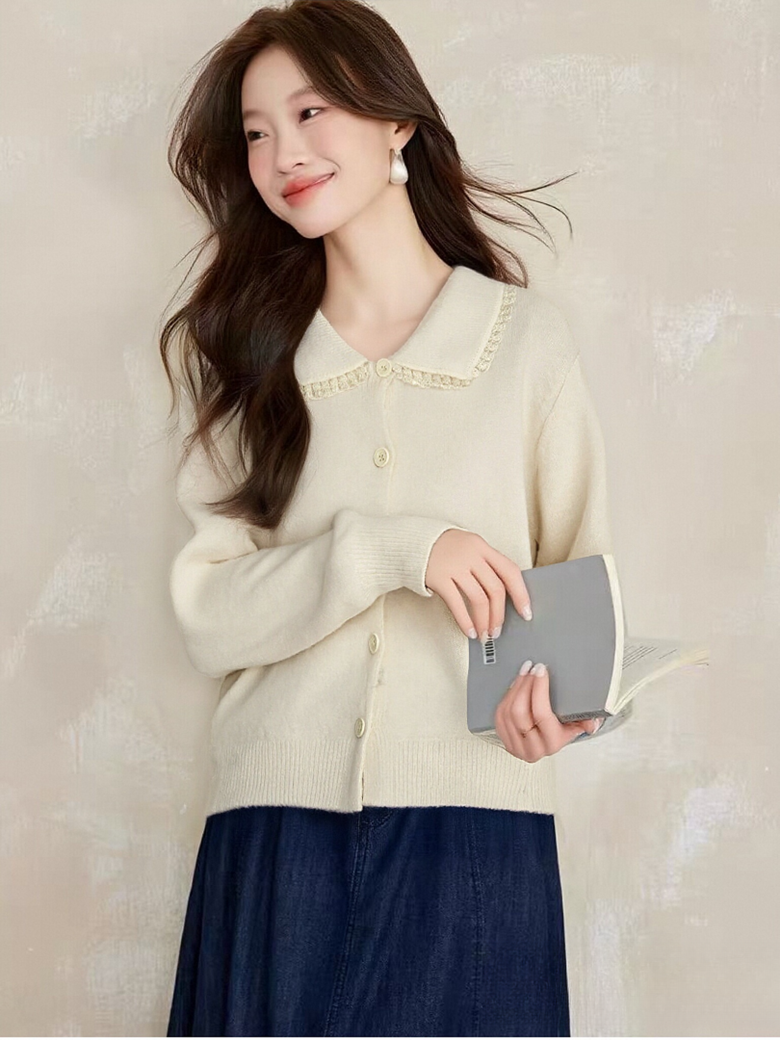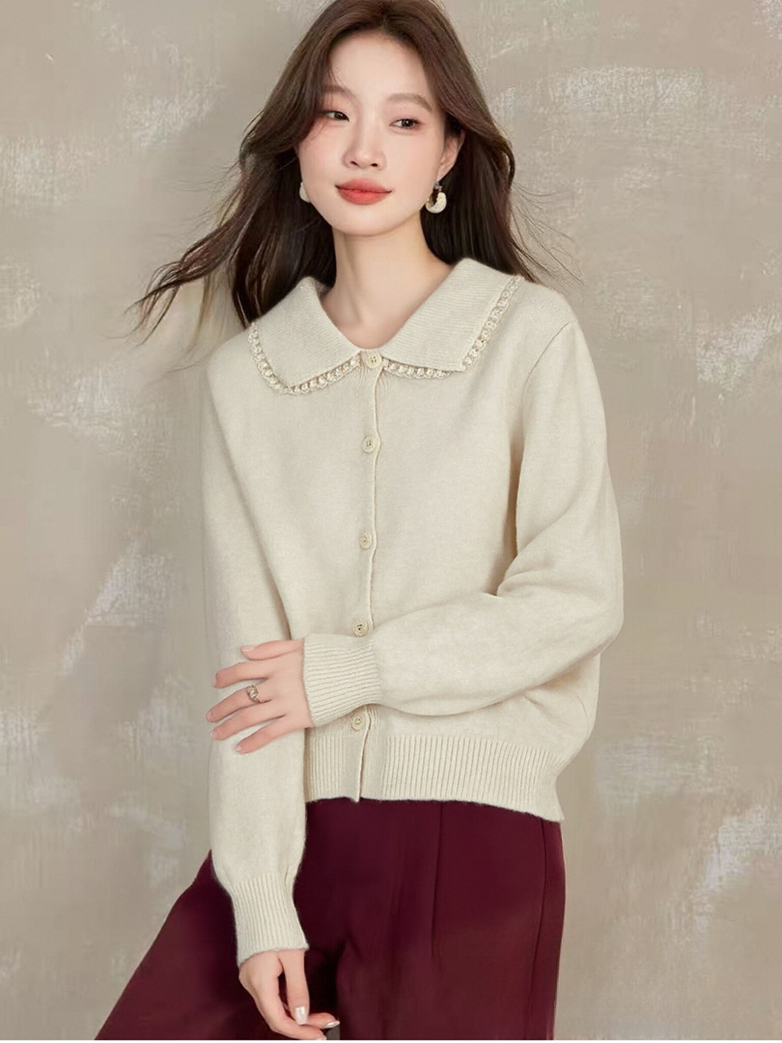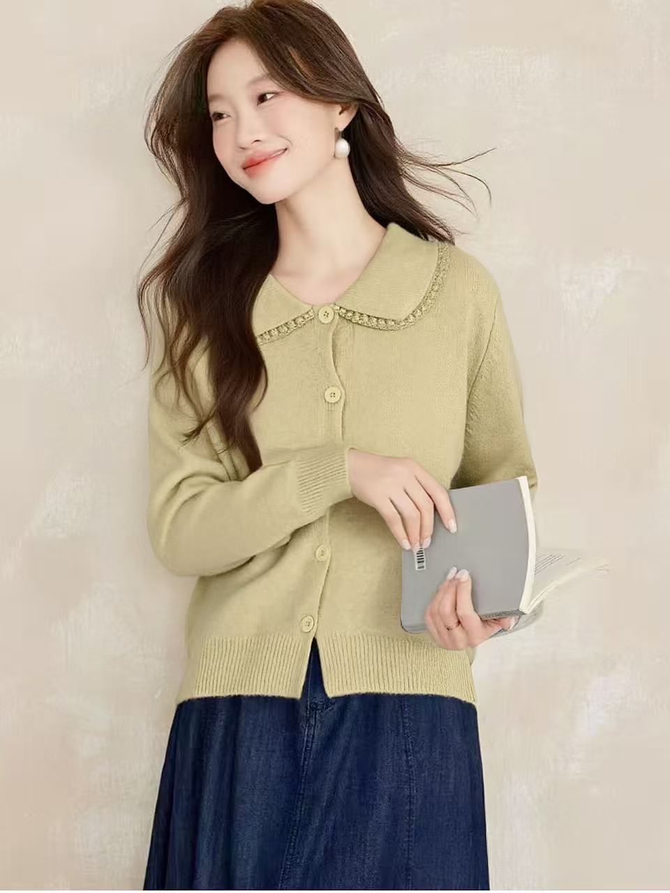 【韩系毛衣】2025 蕾丝翻领短款宽松针织毛衣-喜出