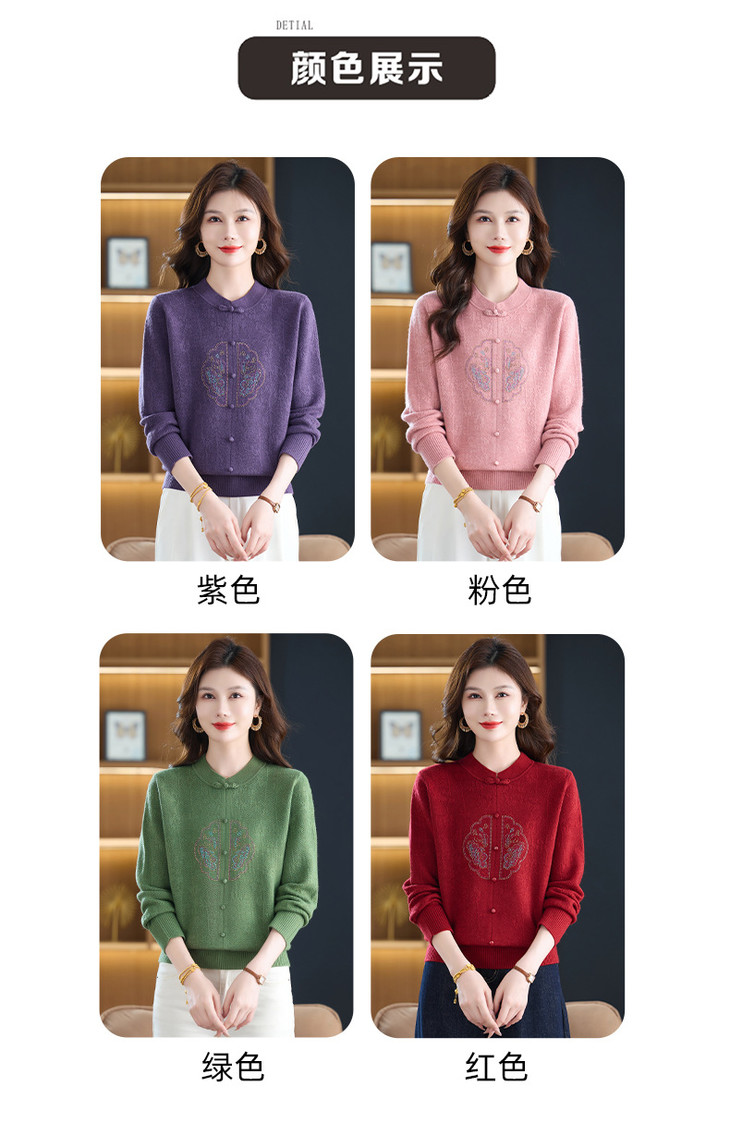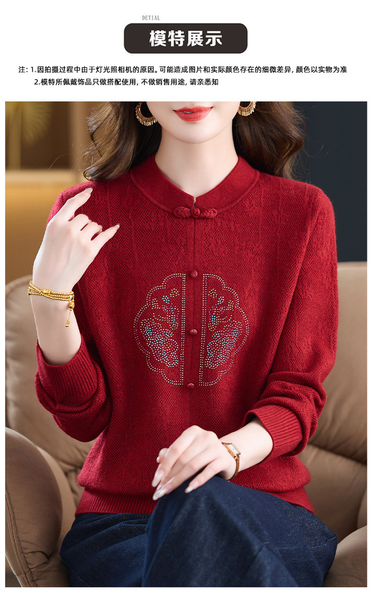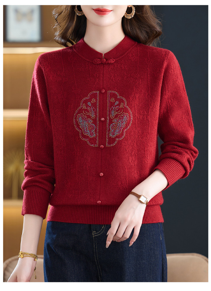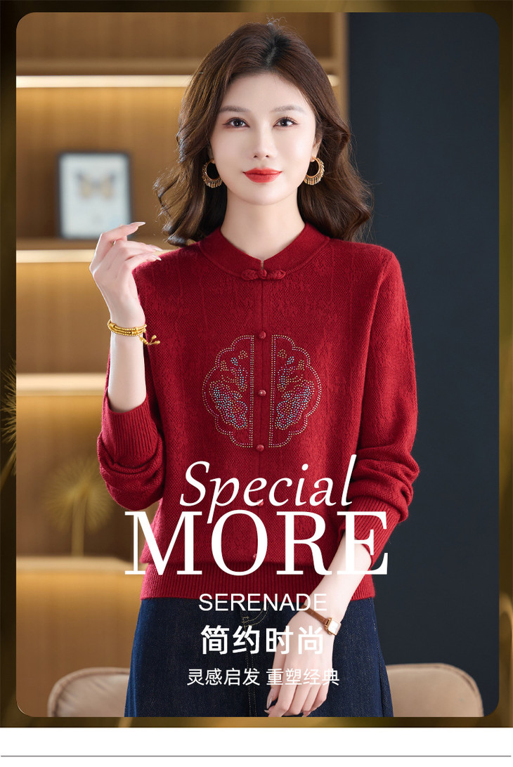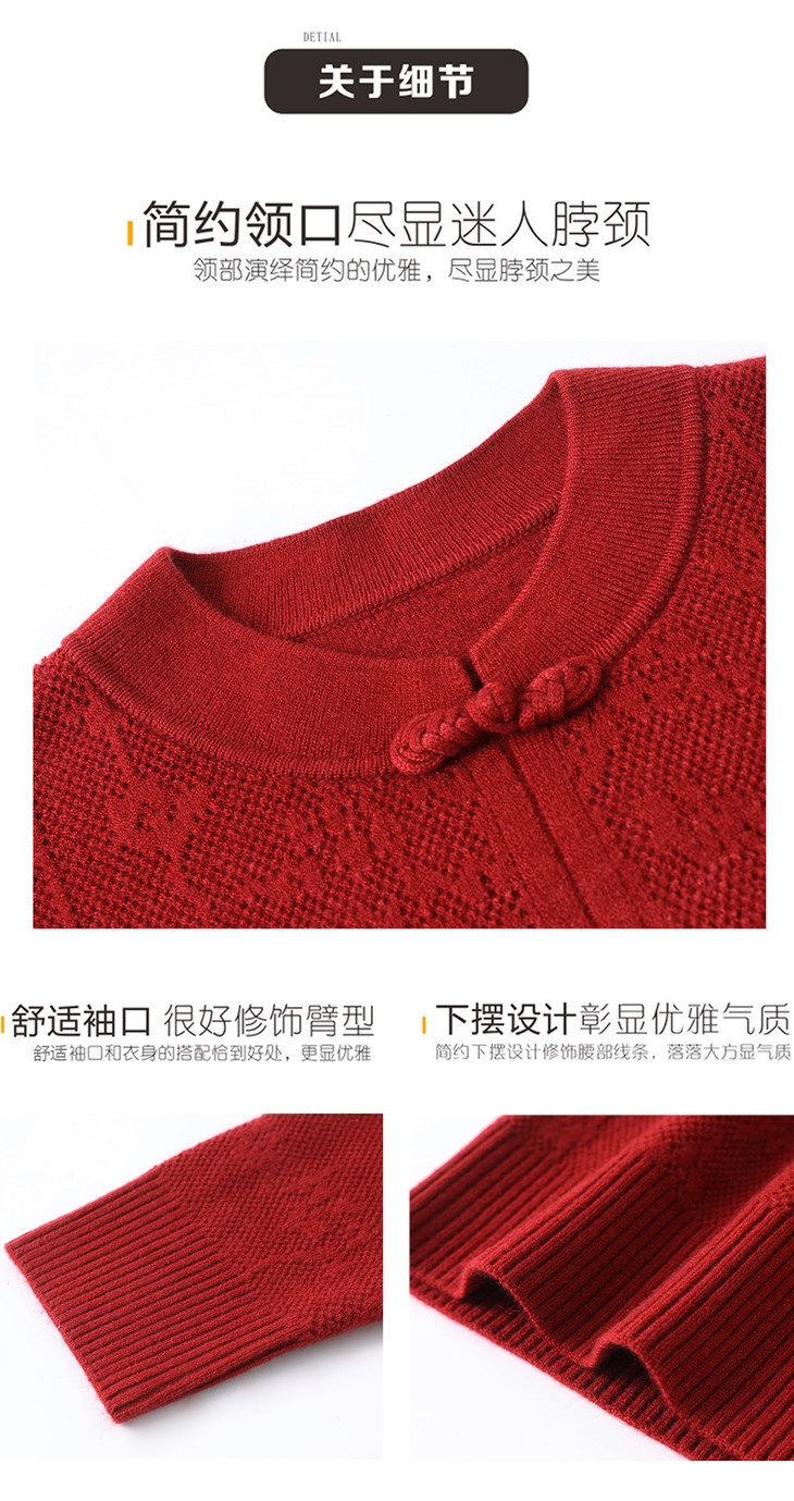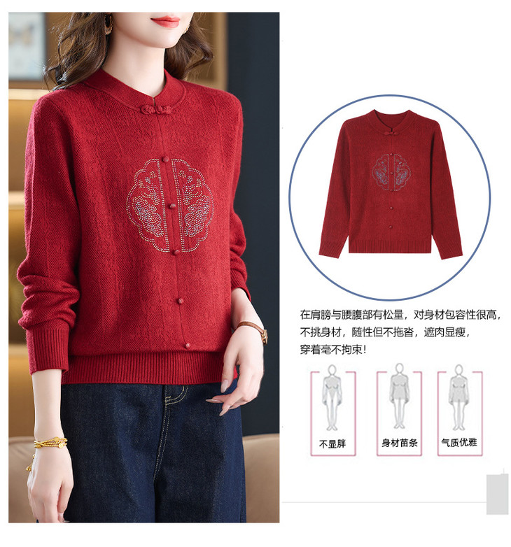 复古盘扣红色针织衫,时尚气质显瘦百搭短款长袖上衣CC-101-83503