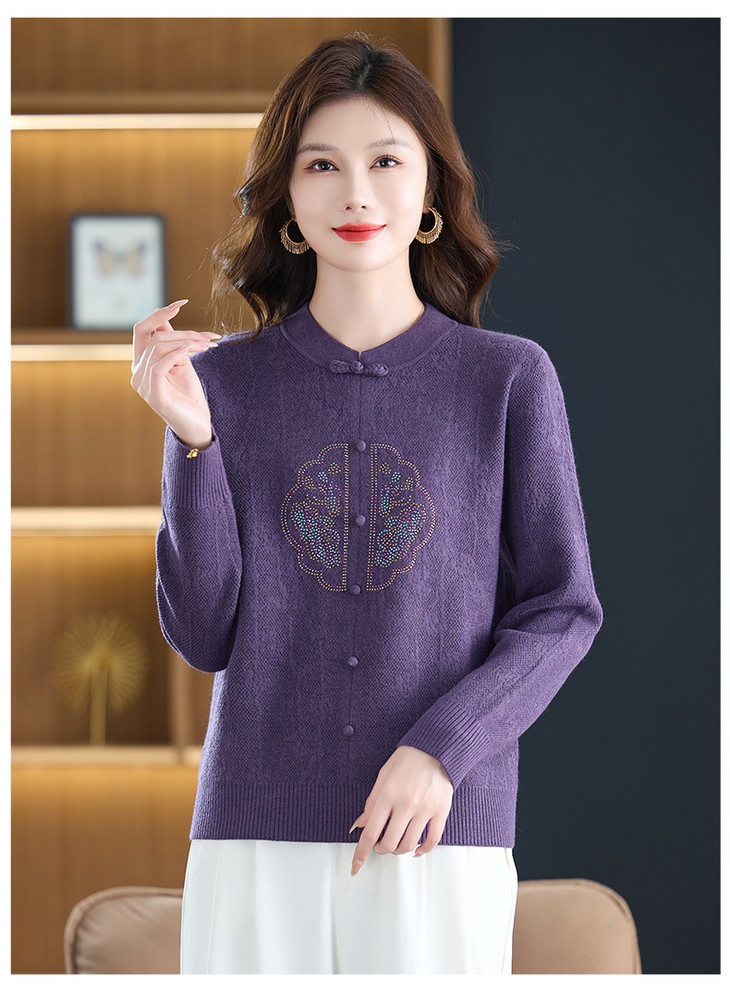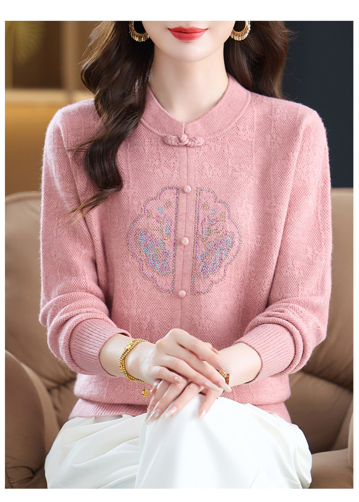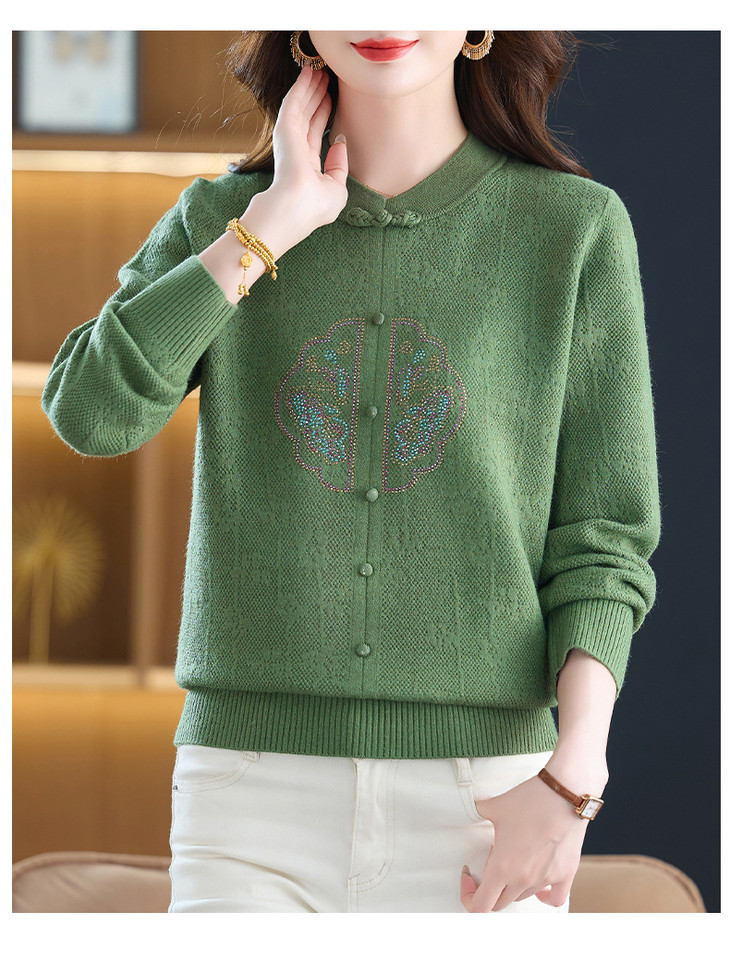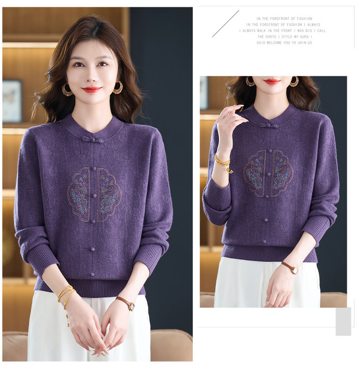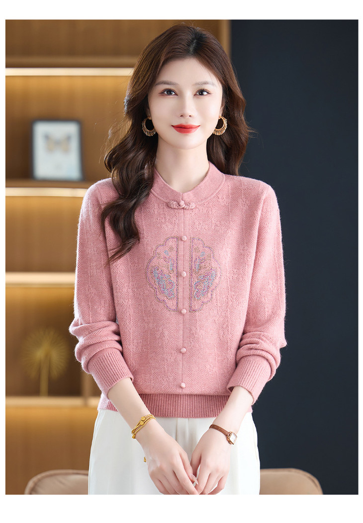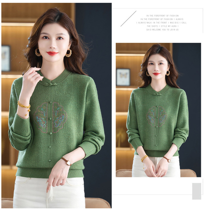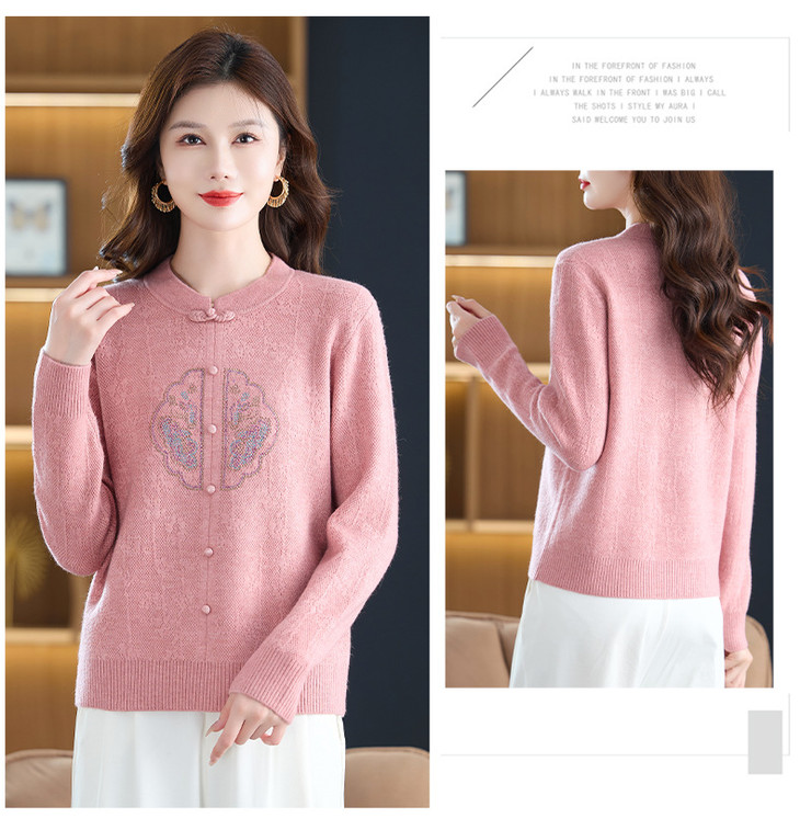复古盘扣红色针织衫,时尚气质显瘦百搭短款长袖上衣CC-101-83503