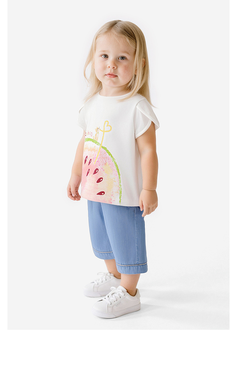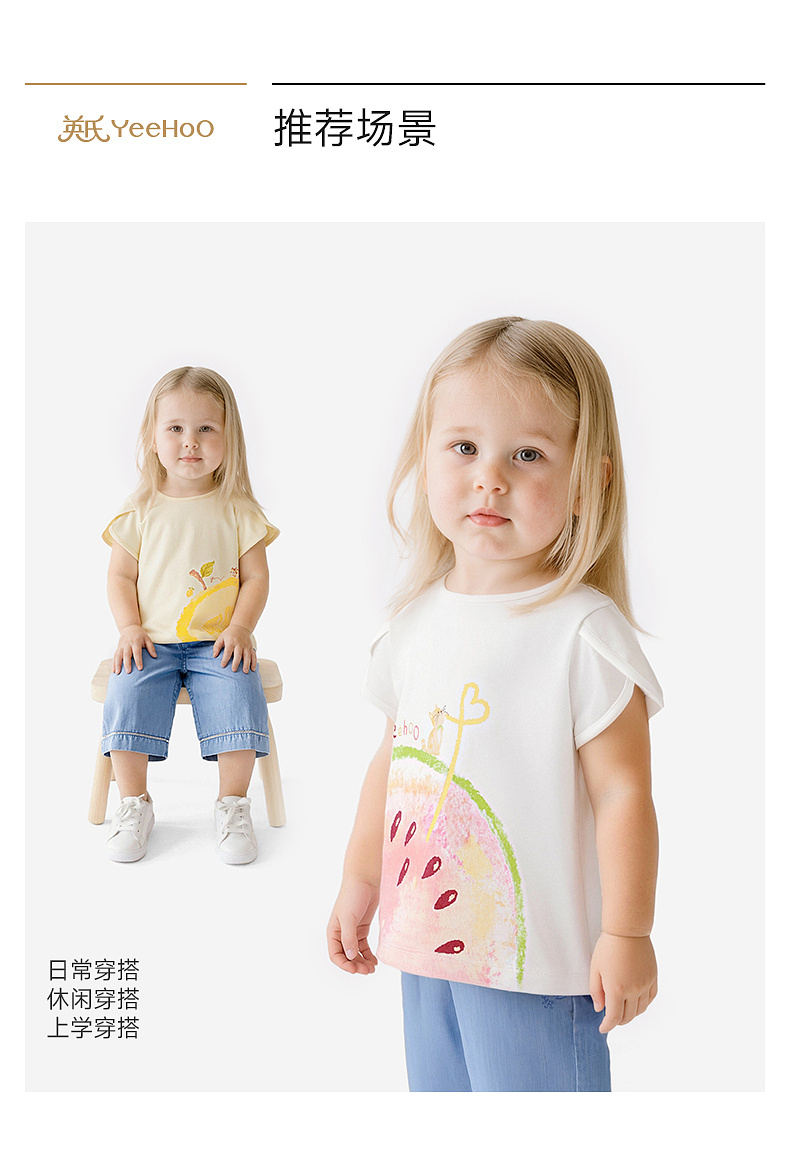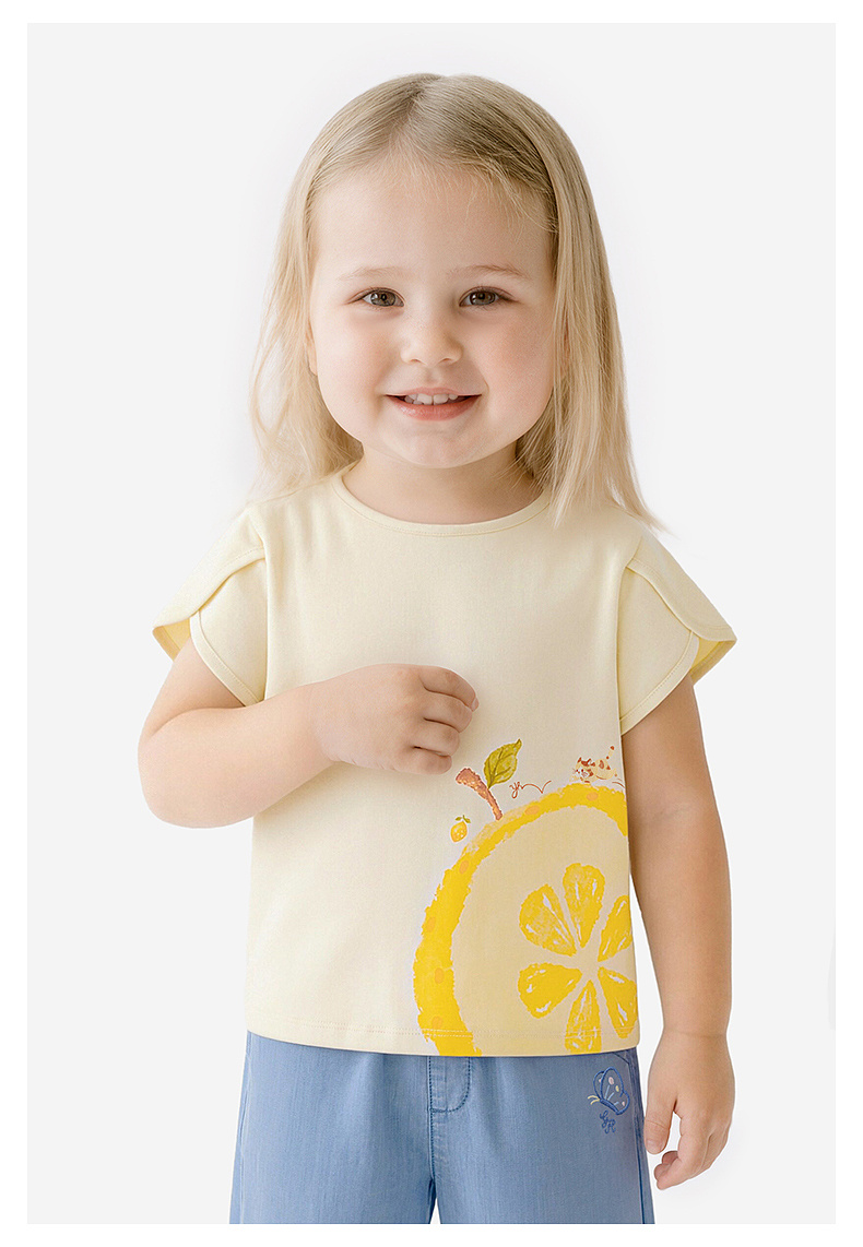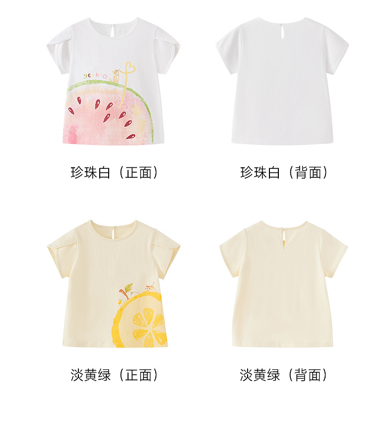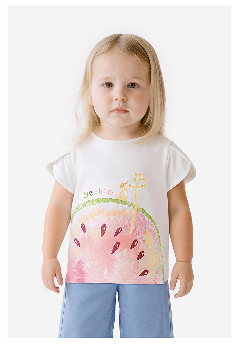 【100%精梳棉】英氏儿童衣服女童圆领可爱百搭上装夏季短袖T恤针织卡通薄款上衣