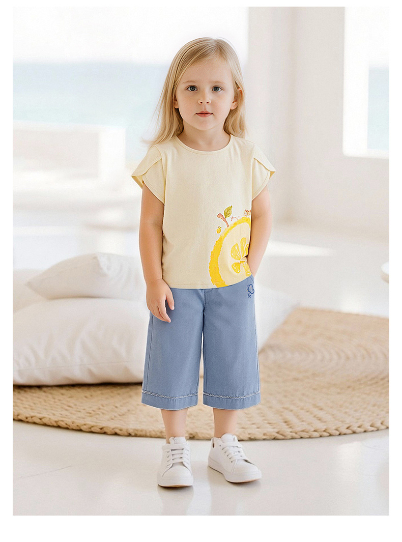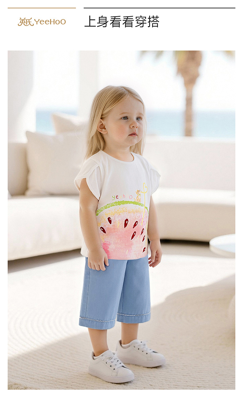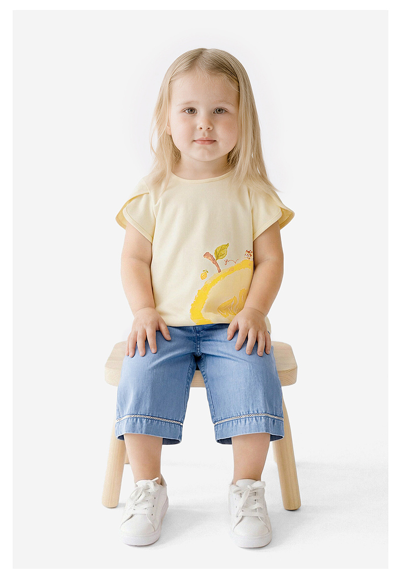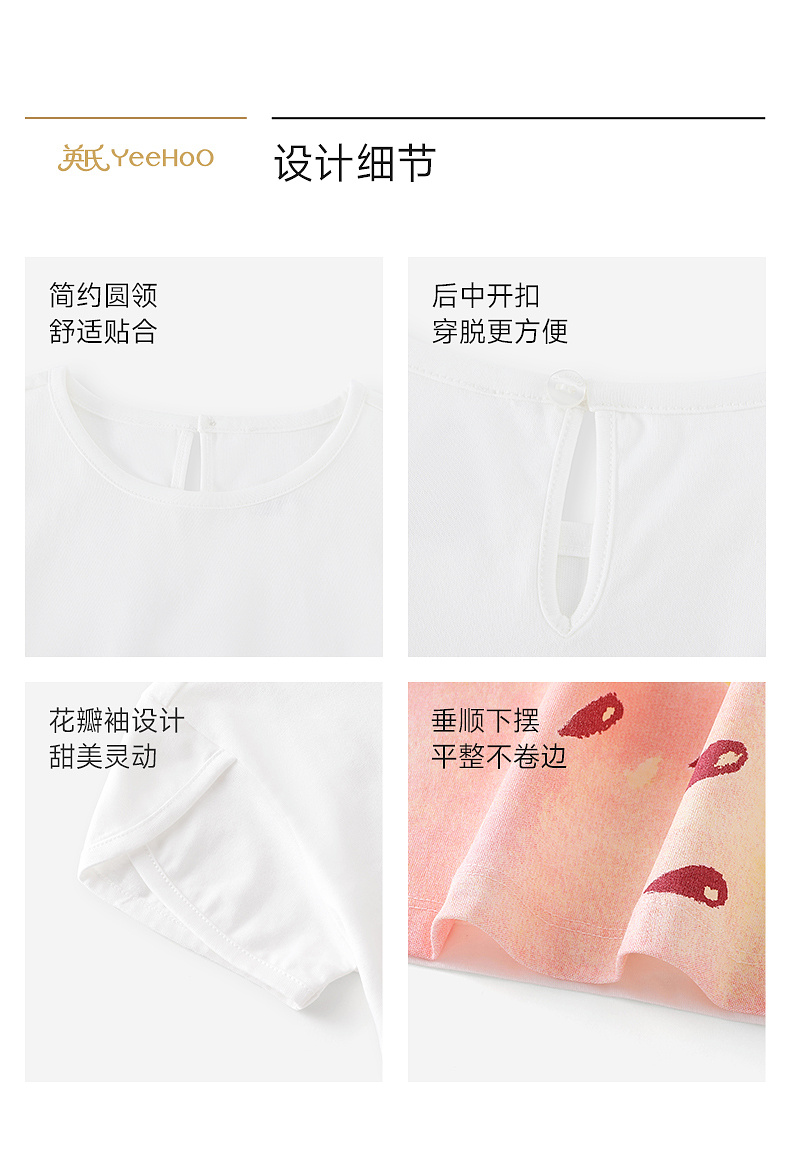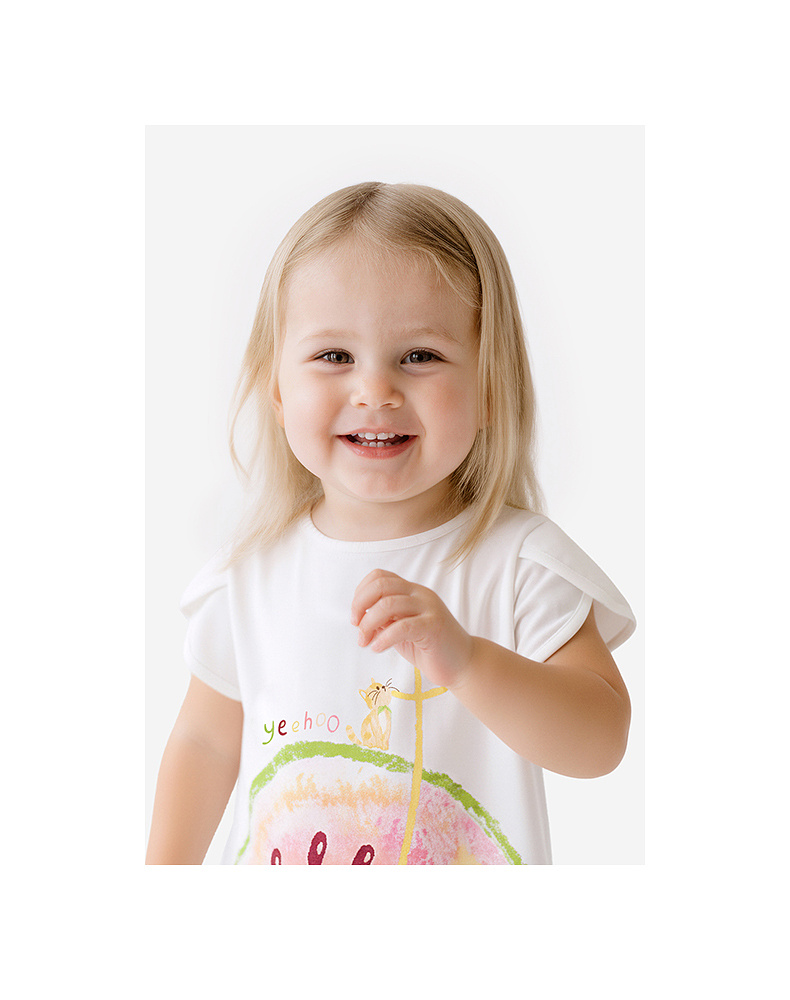 【100%精梳棉】英氏儿童衣服女童圆领可爱百搭上装夏季短袖T恤针织卡通薄款上衣