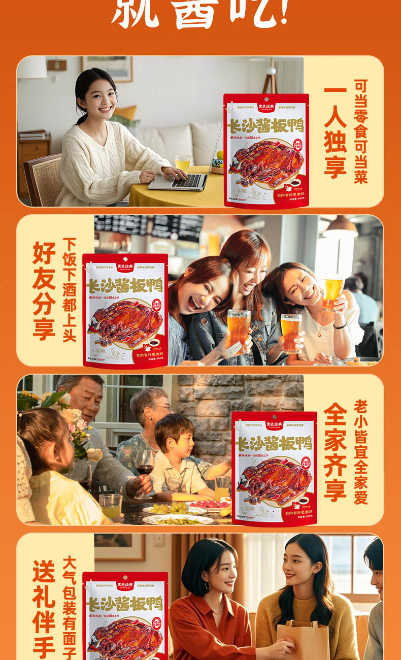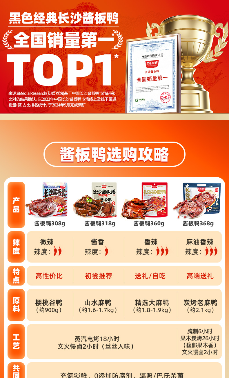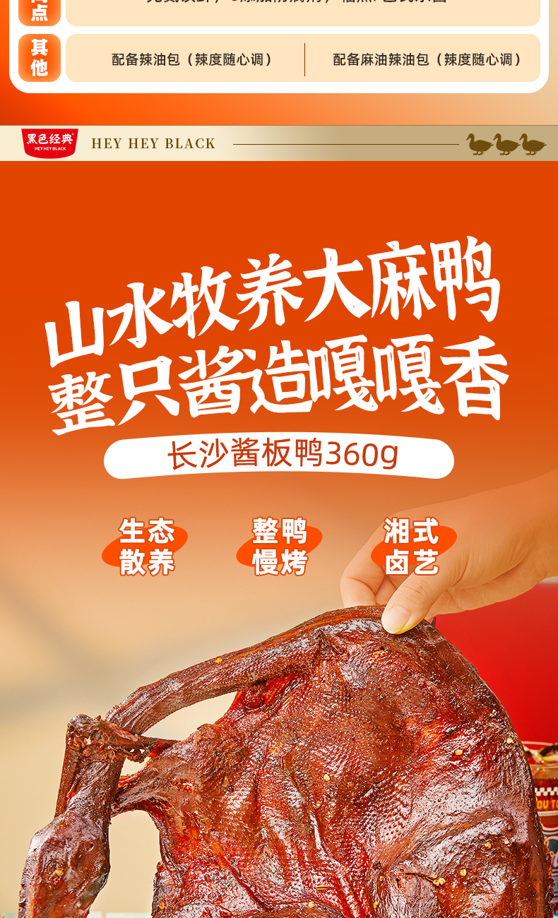 【300积分+65元兑换】黑色经典香辣手撕酱板鸭350g/袋 带辣椒油包