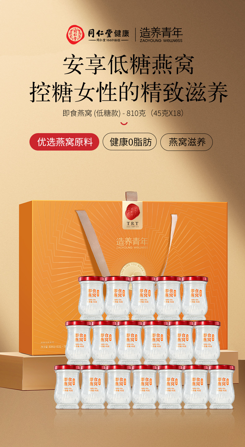 【正宗同仁堂品牌】北京同仁堂 即食燕窝810g(45g*18瓶) 国风礼盒 固形物含量≥30% SY