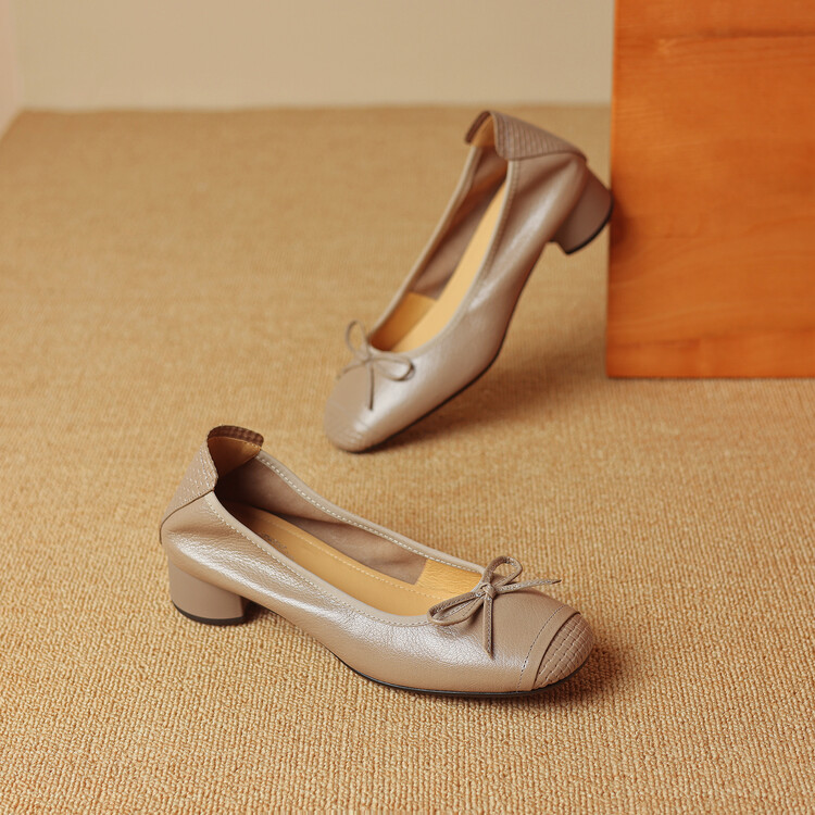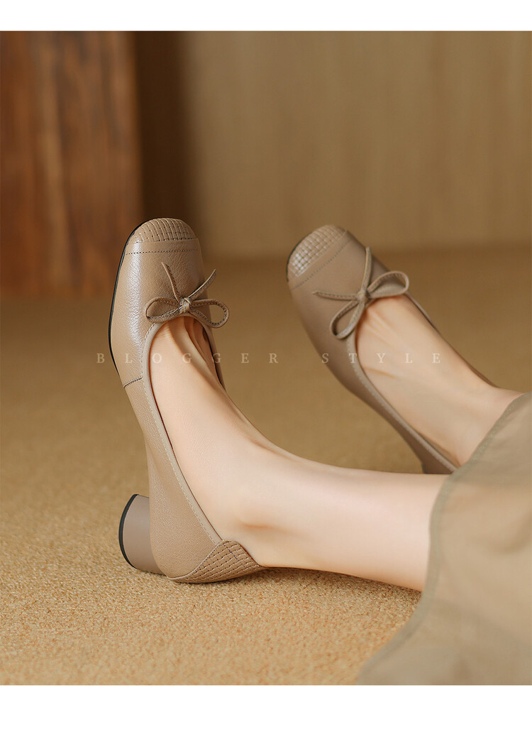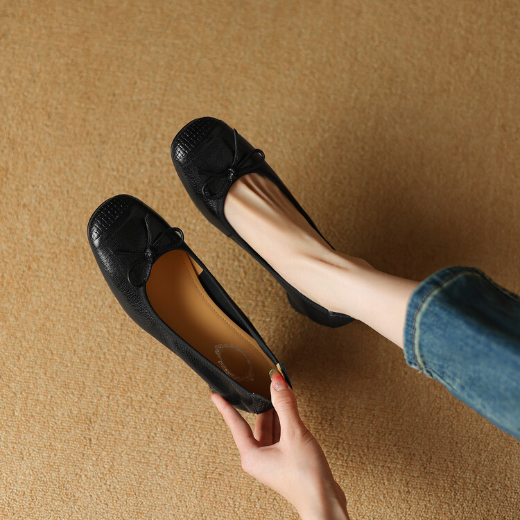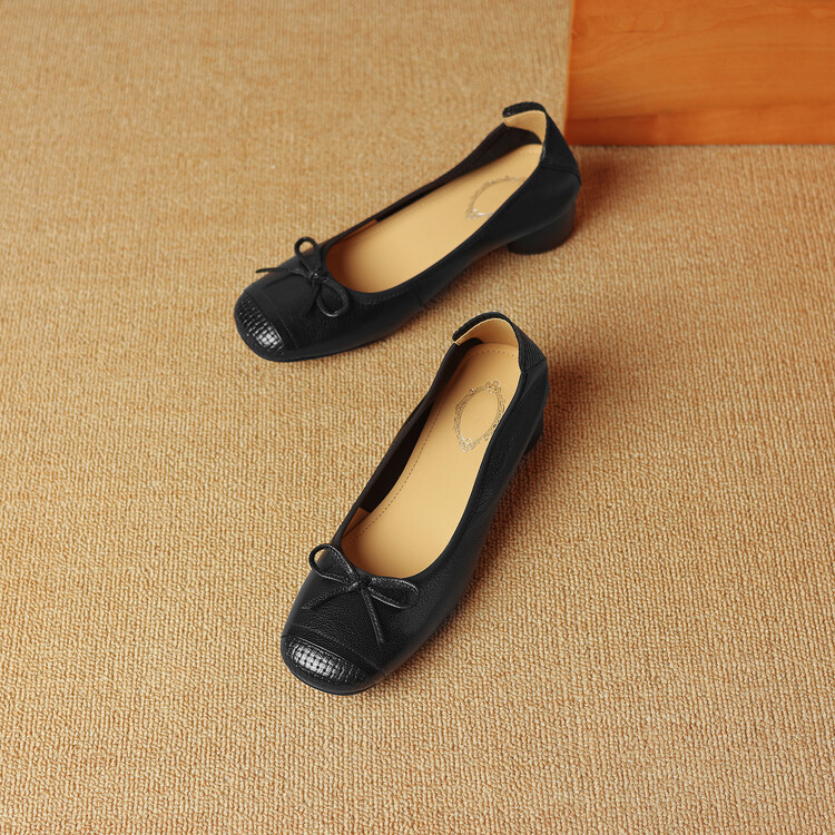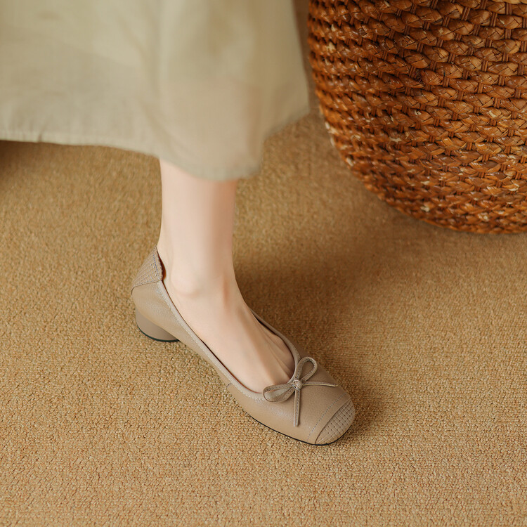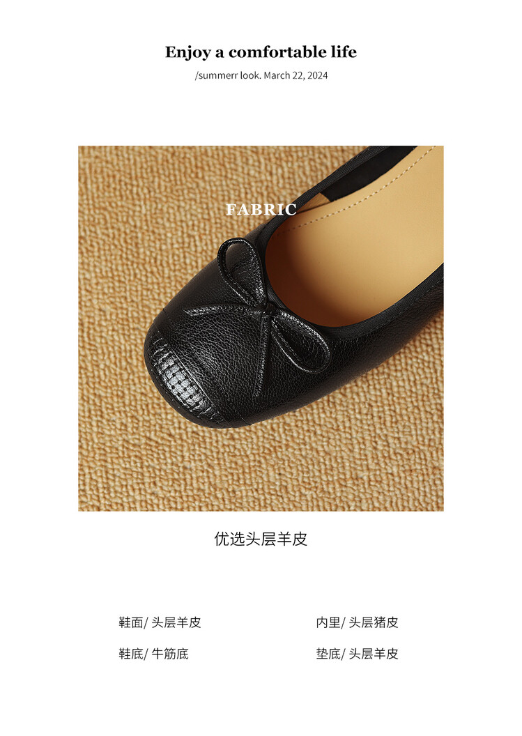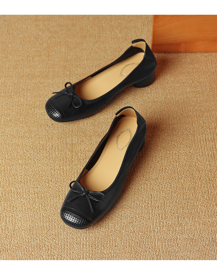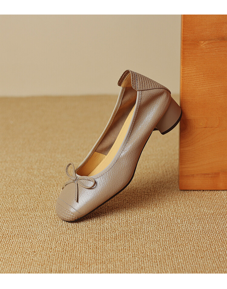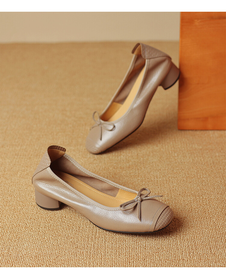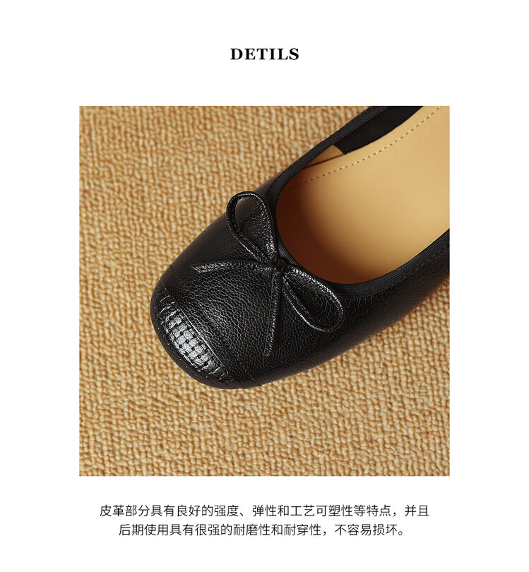 【预售5天】软羊皮单鞋女春秋浅口蝴蝶结红色软底粗跟中跟真皮通勤女鞋DPJ&2673