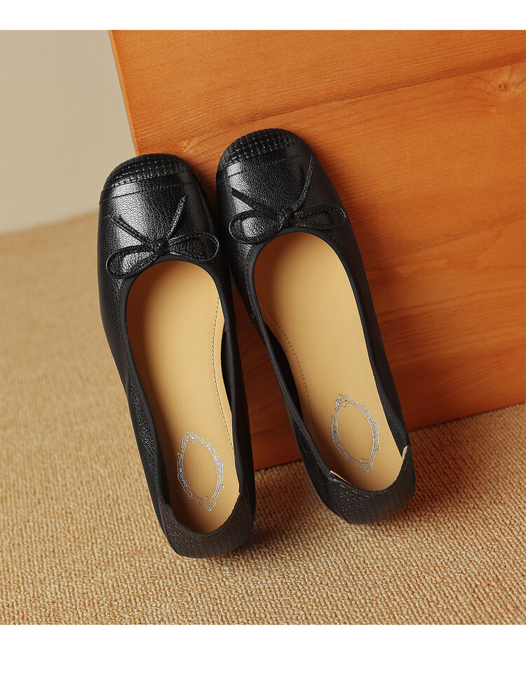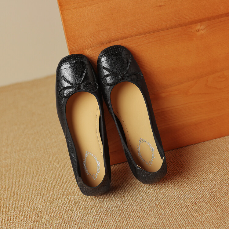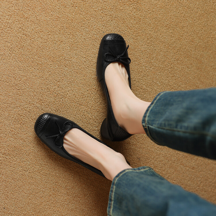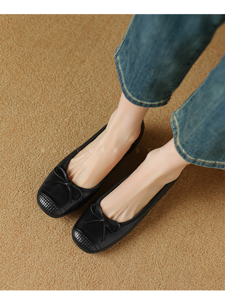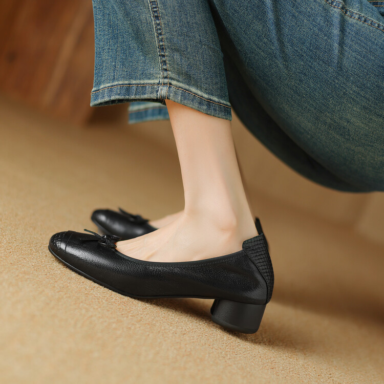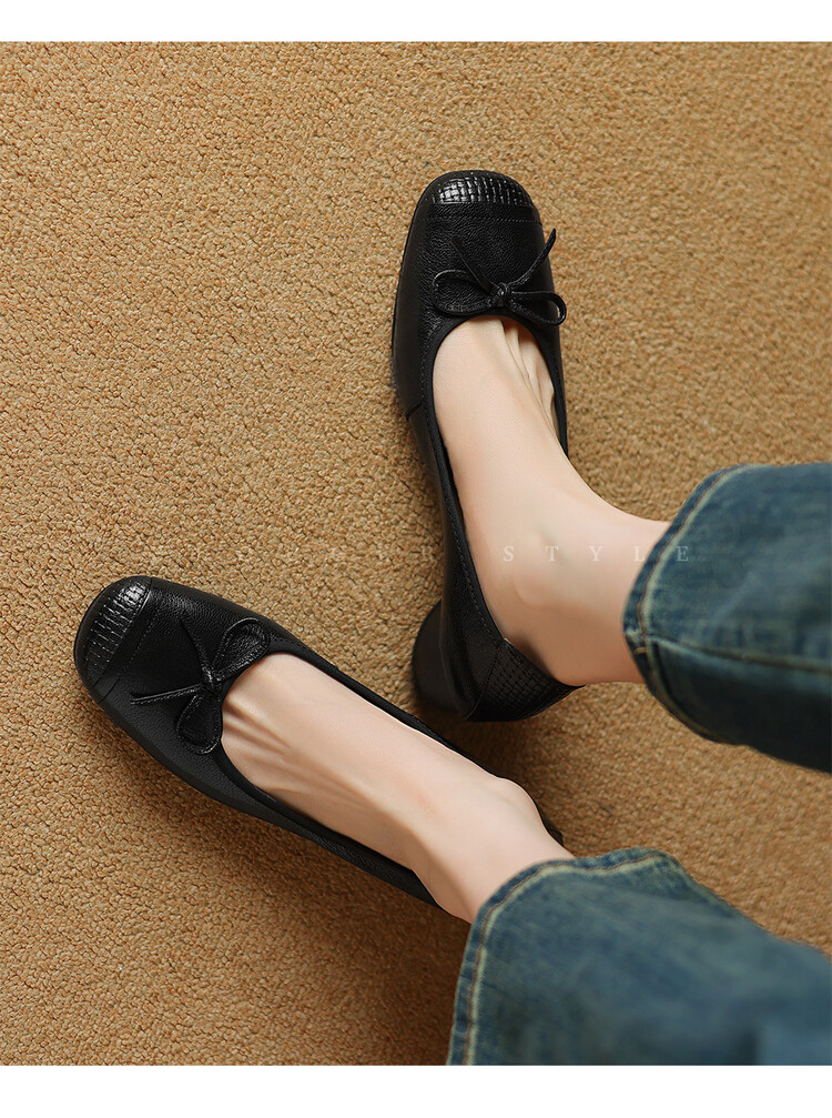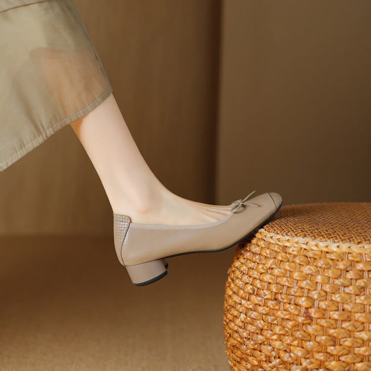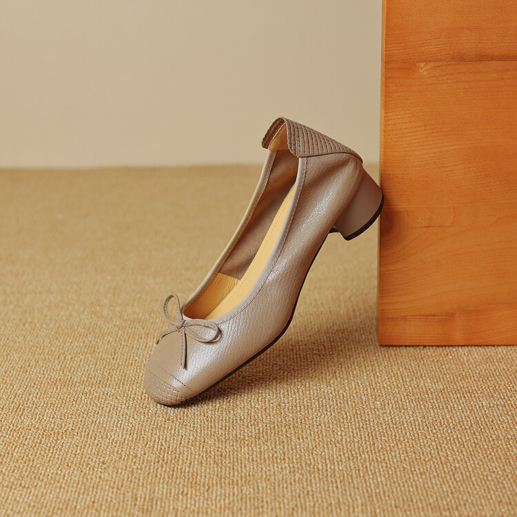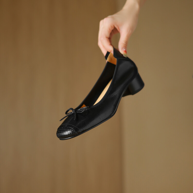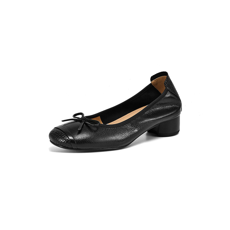 【预售5天】软羊皮单鞋女春秋浅口蝴蝶结红色软底粗跟中跟真皮通勤女鞋DPJ&2673