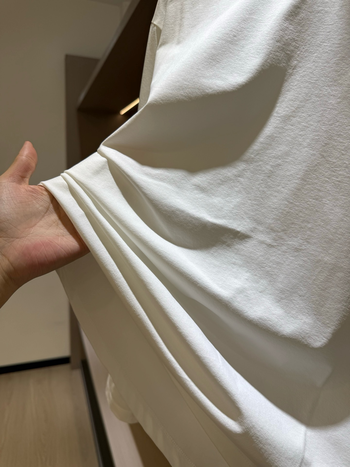下摆袖口全部双针收边走线,平整顺直,内里无毛边异物