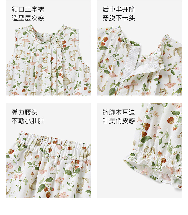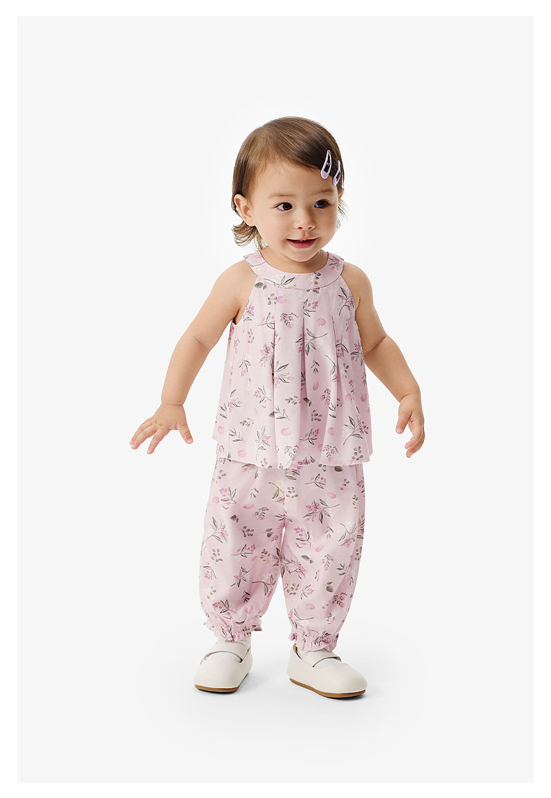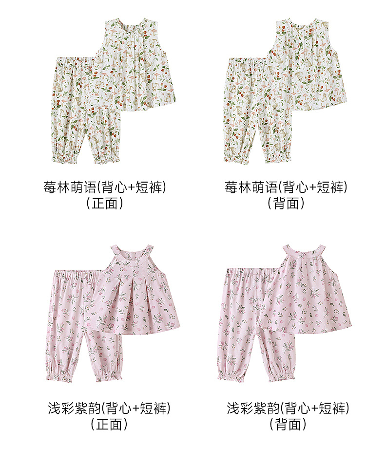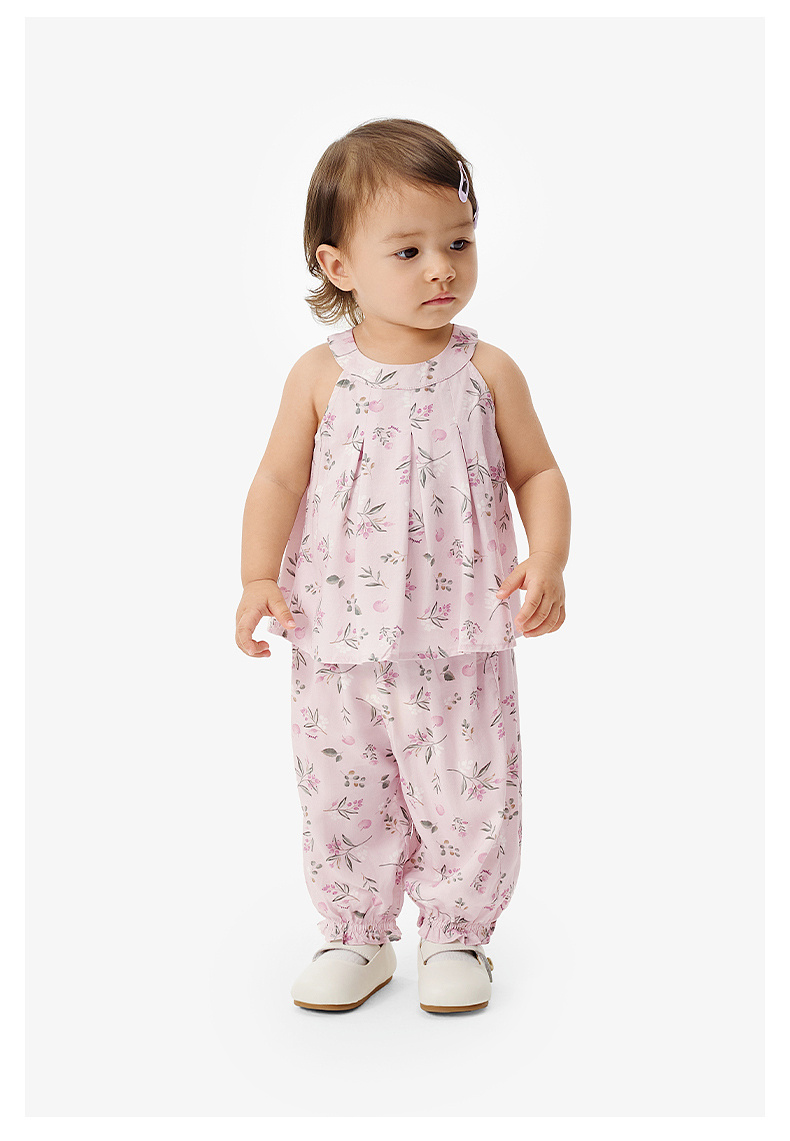 【莱赛尔】英氏儿童套装夏季透气女童背心上衣束脚长裤鲜花印花休闲可爱套装