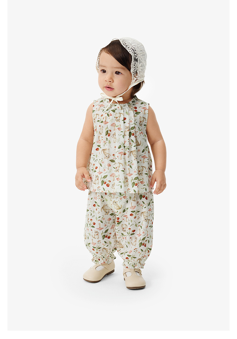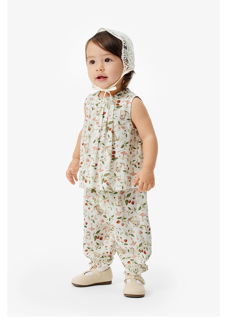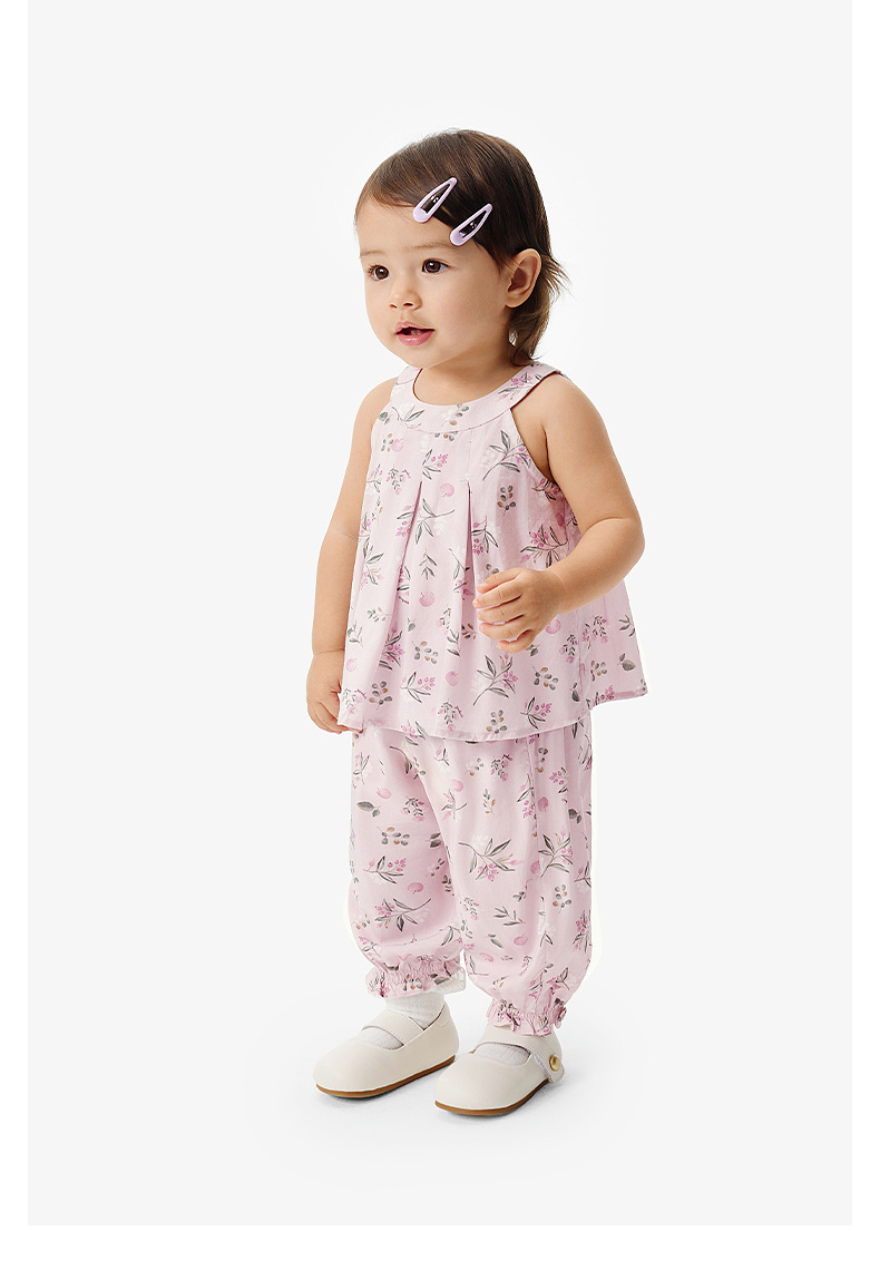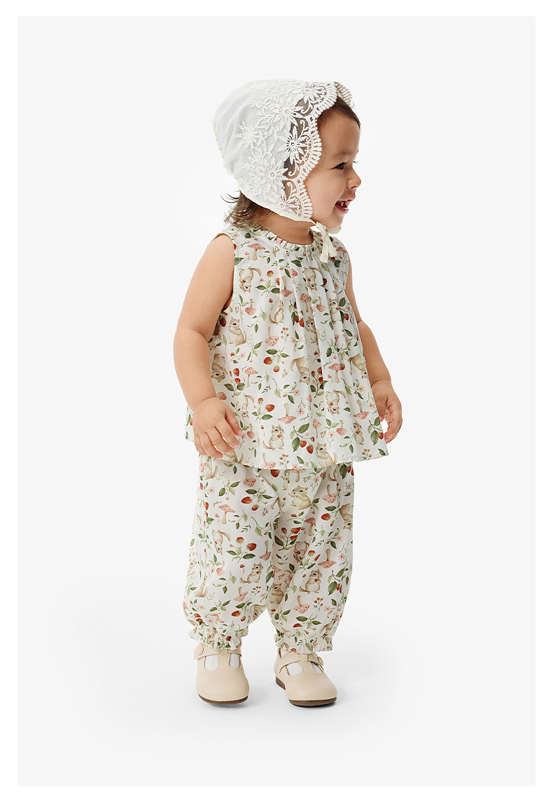 【莱赛尔】英氏儿童套装夏季透气女童背心上衣束脚长裤鲜花印花休闲可爱套装
