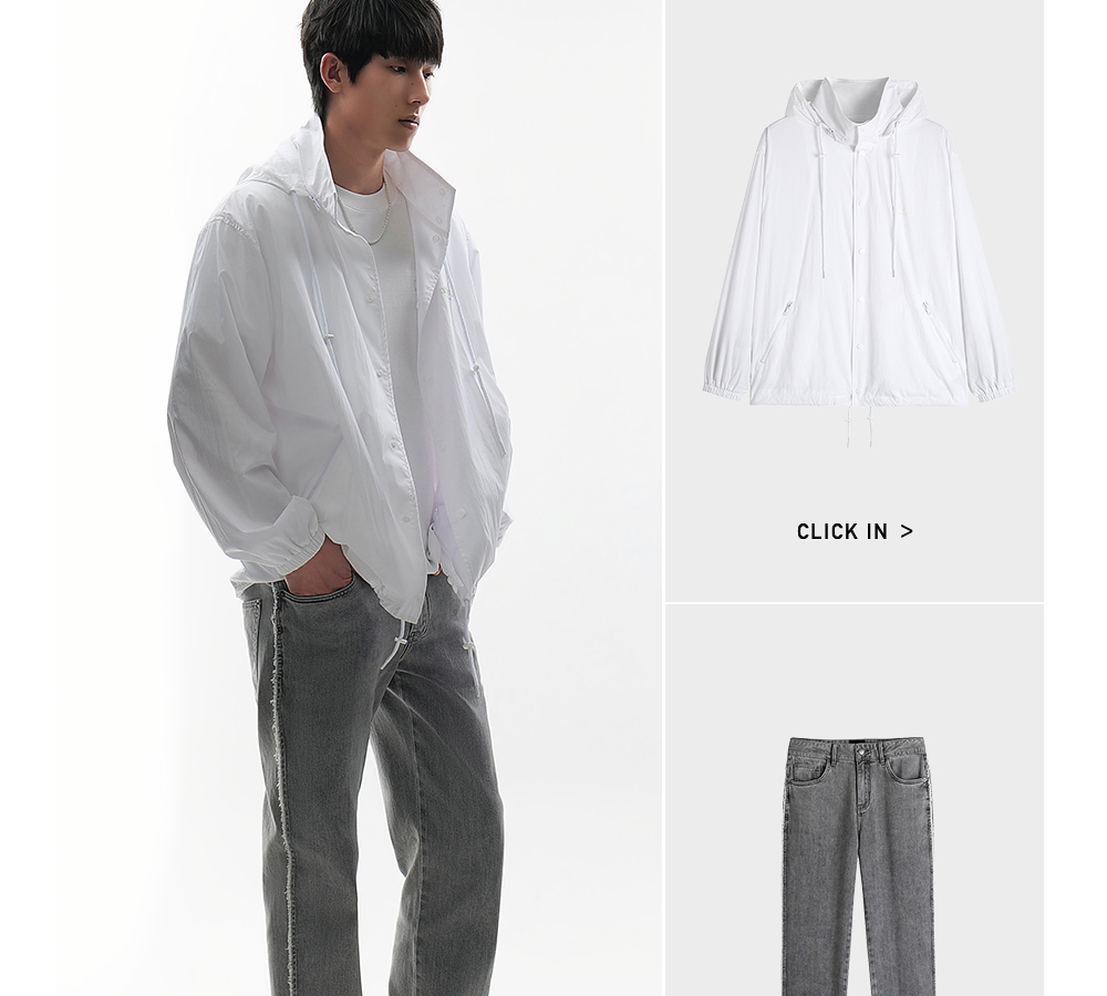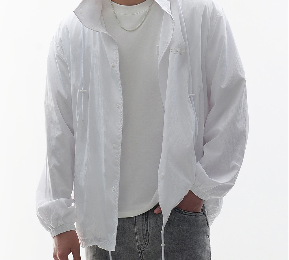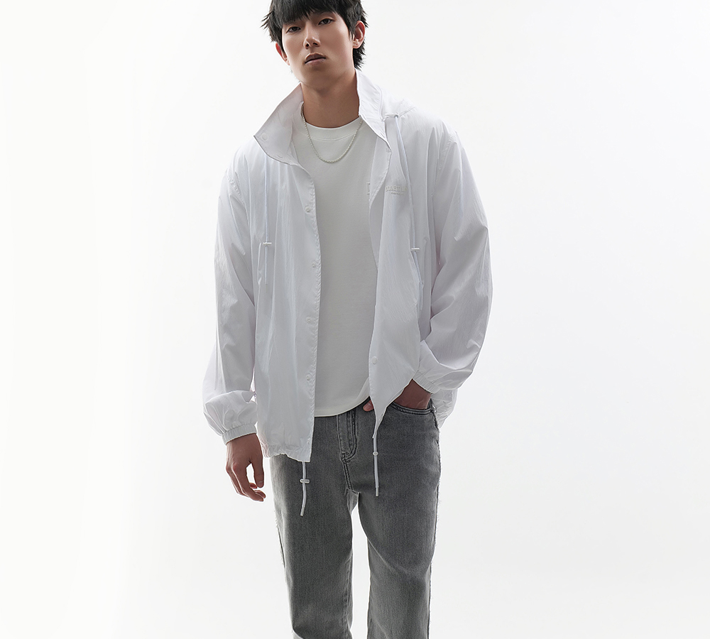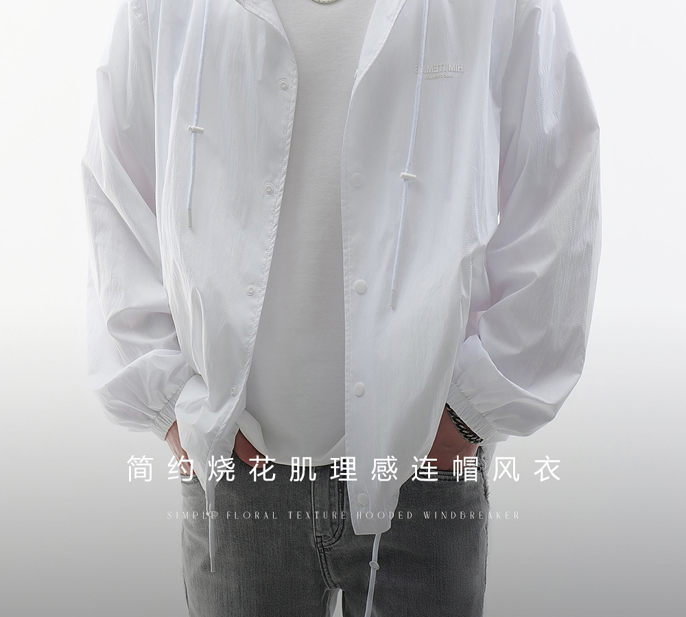 HIM漢崇 可收纳连帽夹克同色字母烧花舒适休闲运动外套 2026春季