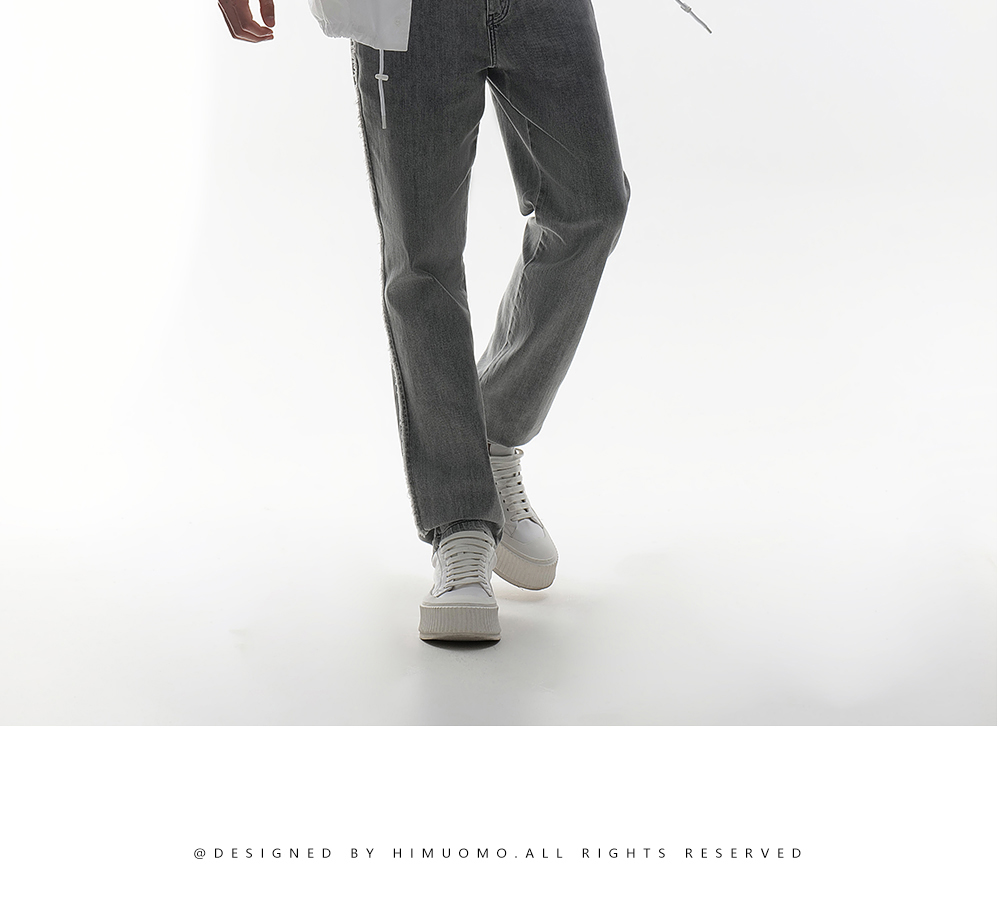 HIM漢崇 破洞洗水牛仔裤男潮流百搭高端简约修身小脚裤 2026夏季