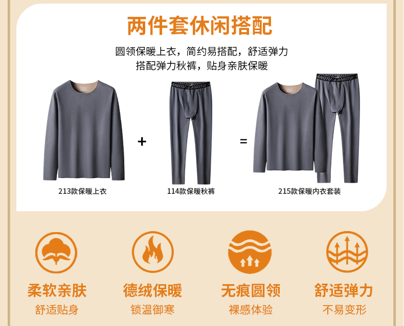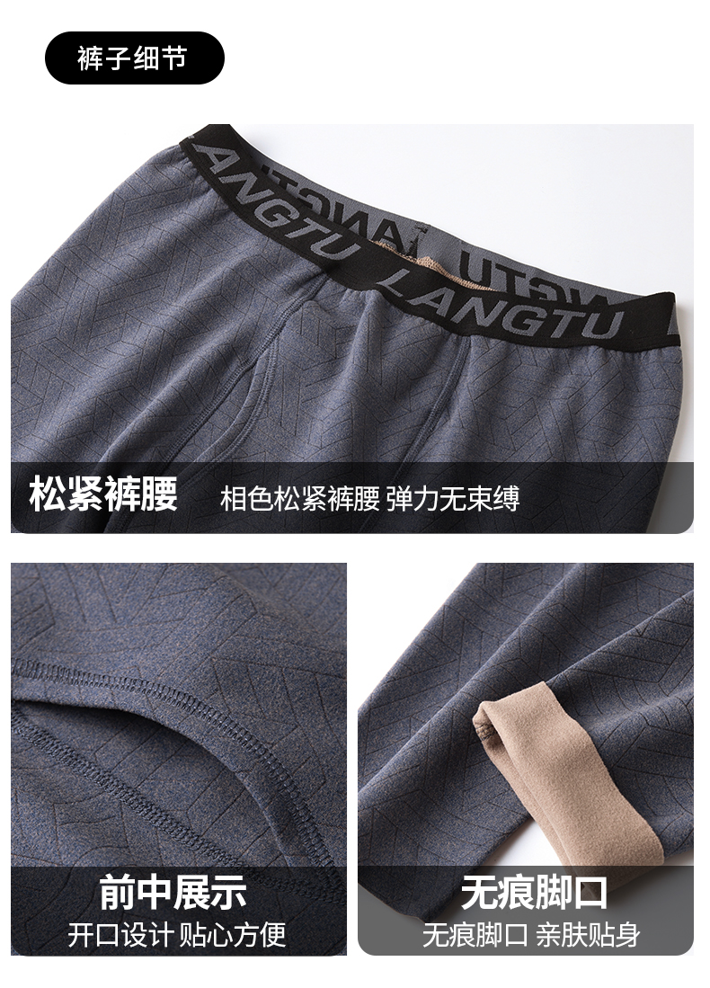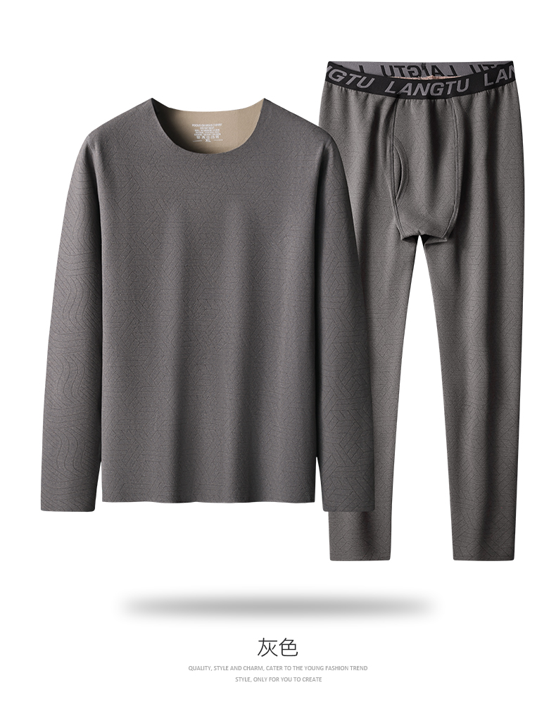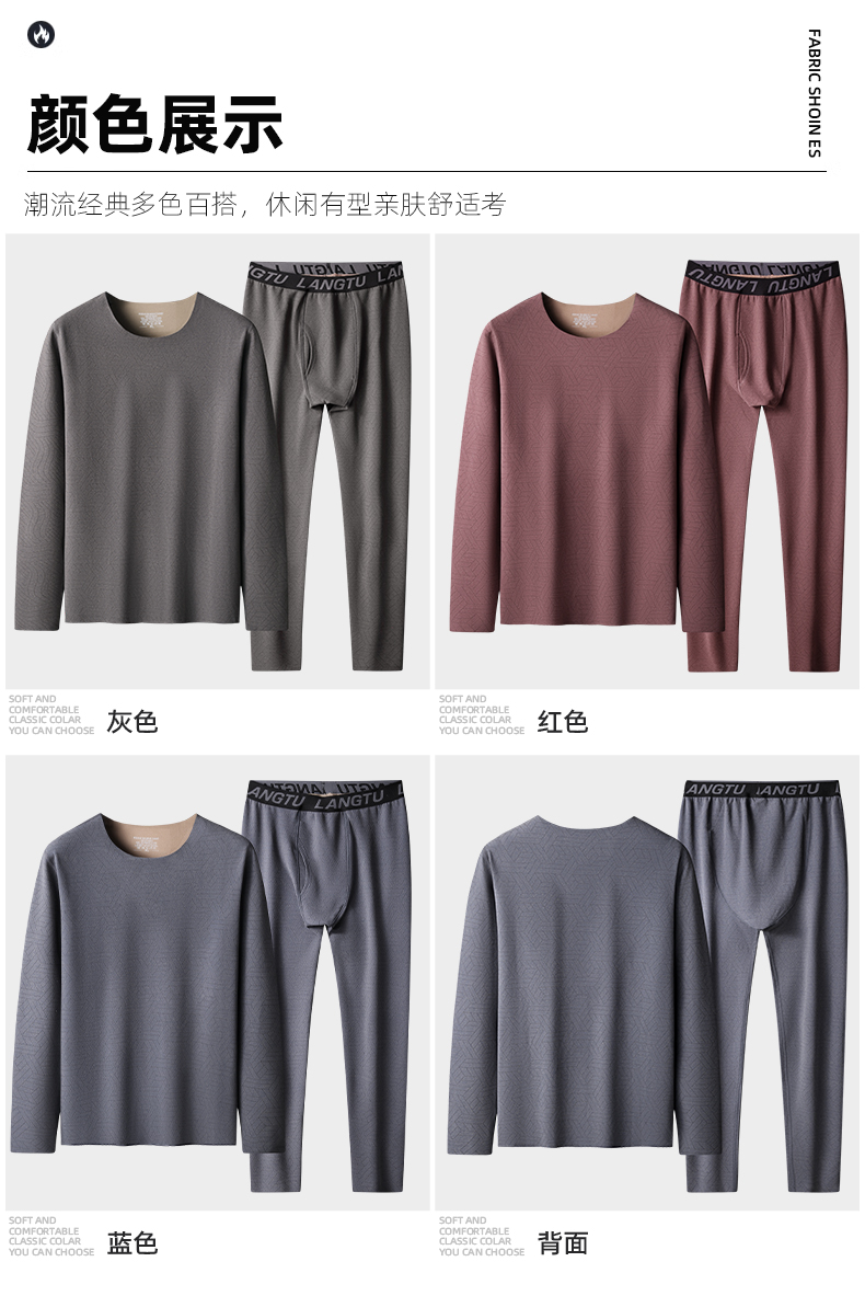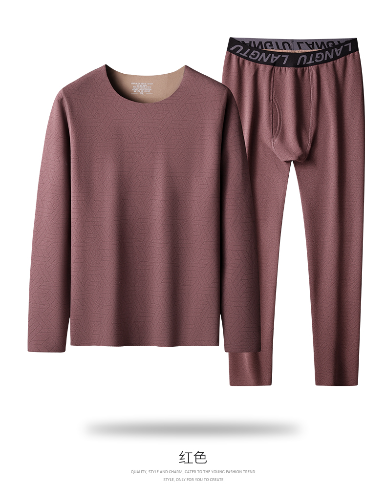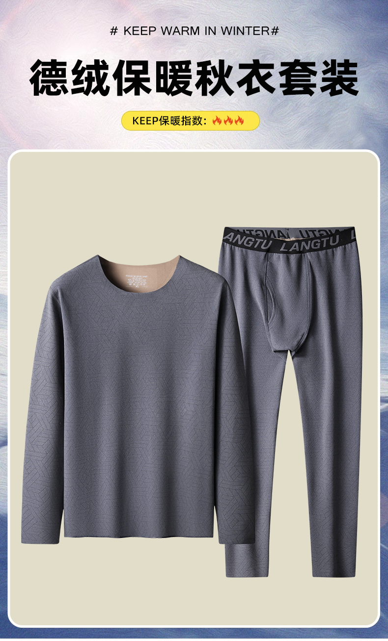 【德绒保暖】【新款DSF】大依优型大码男装直条纹德绒保暖套装内衣弹力舒适保暖秋衣秋裤