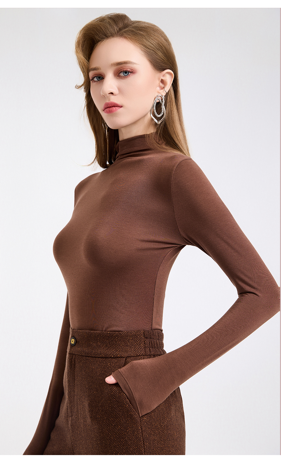 【三色可选】乔万尼莫代尔半高领轻奢百搭长袖修身裸感打底衫EZ4C188