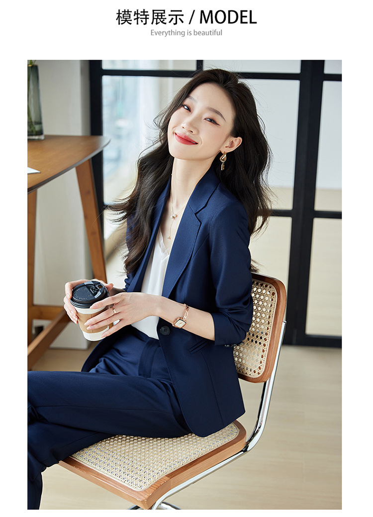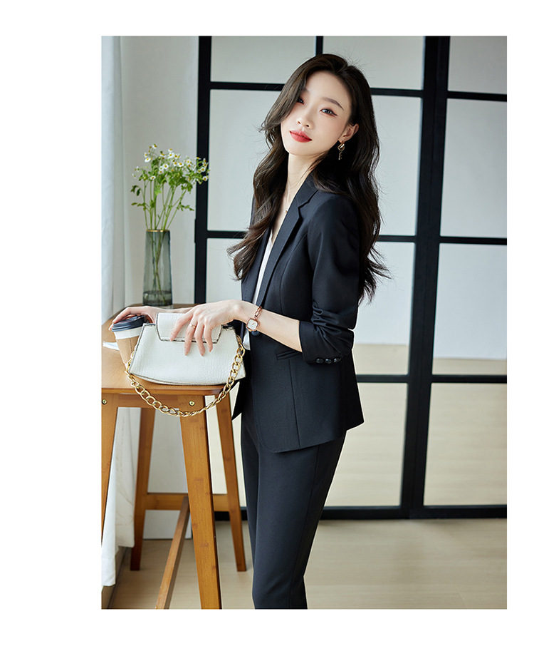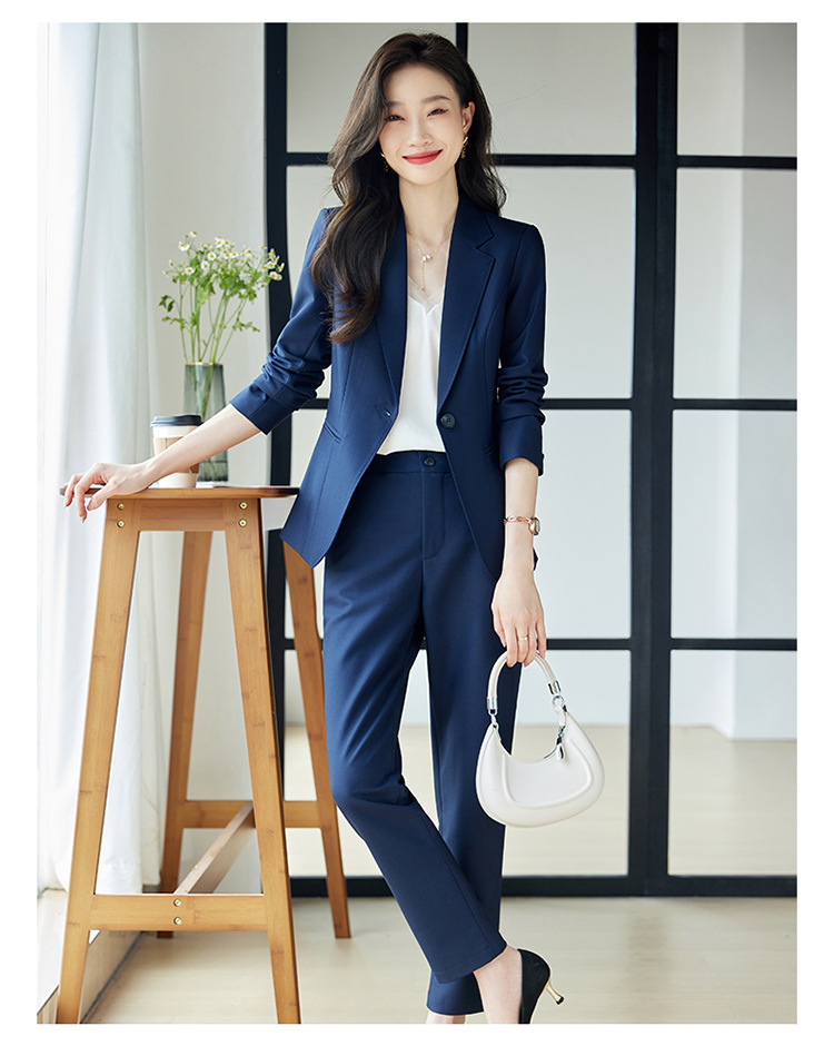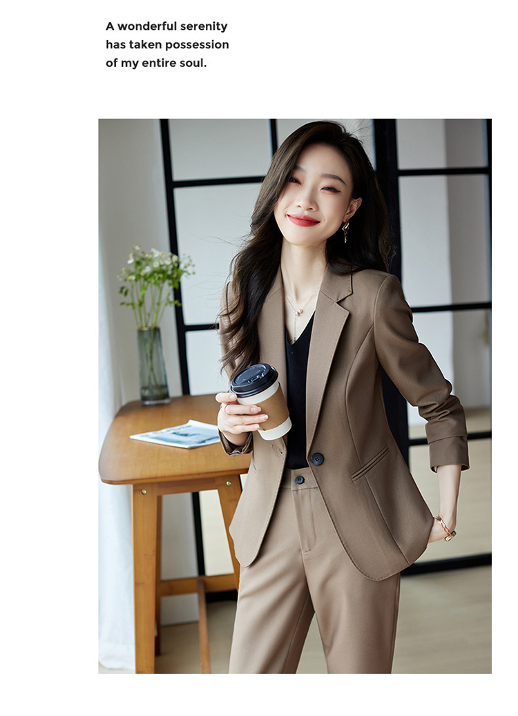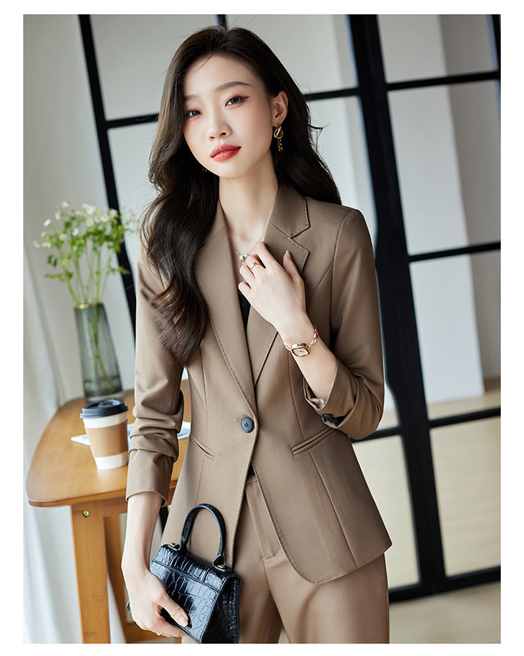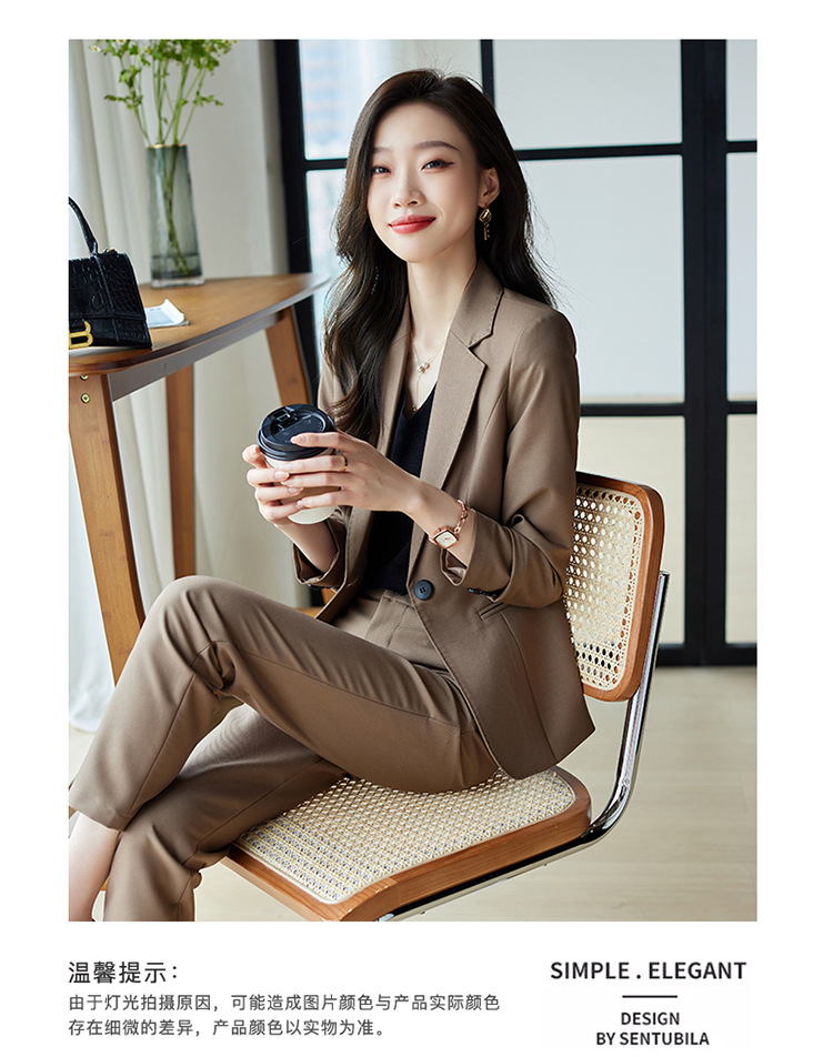 ALBB-咖色小西装套装女2023早秋新款韩版时尚修身职业装西服两件套