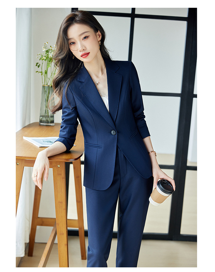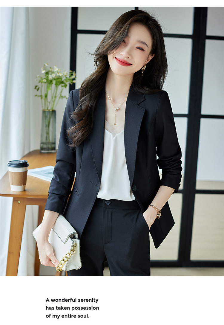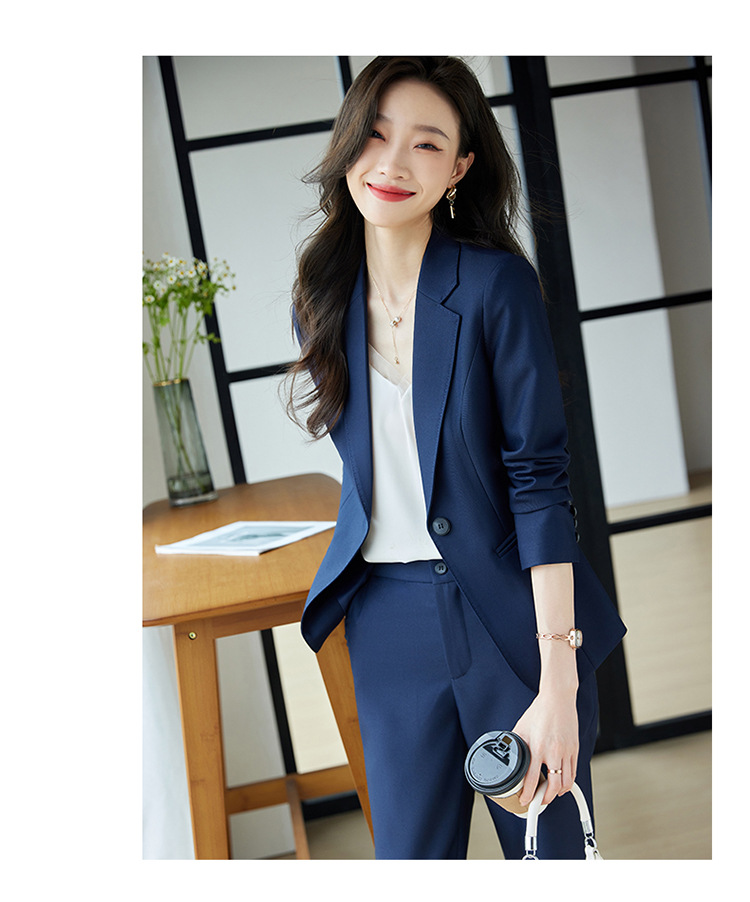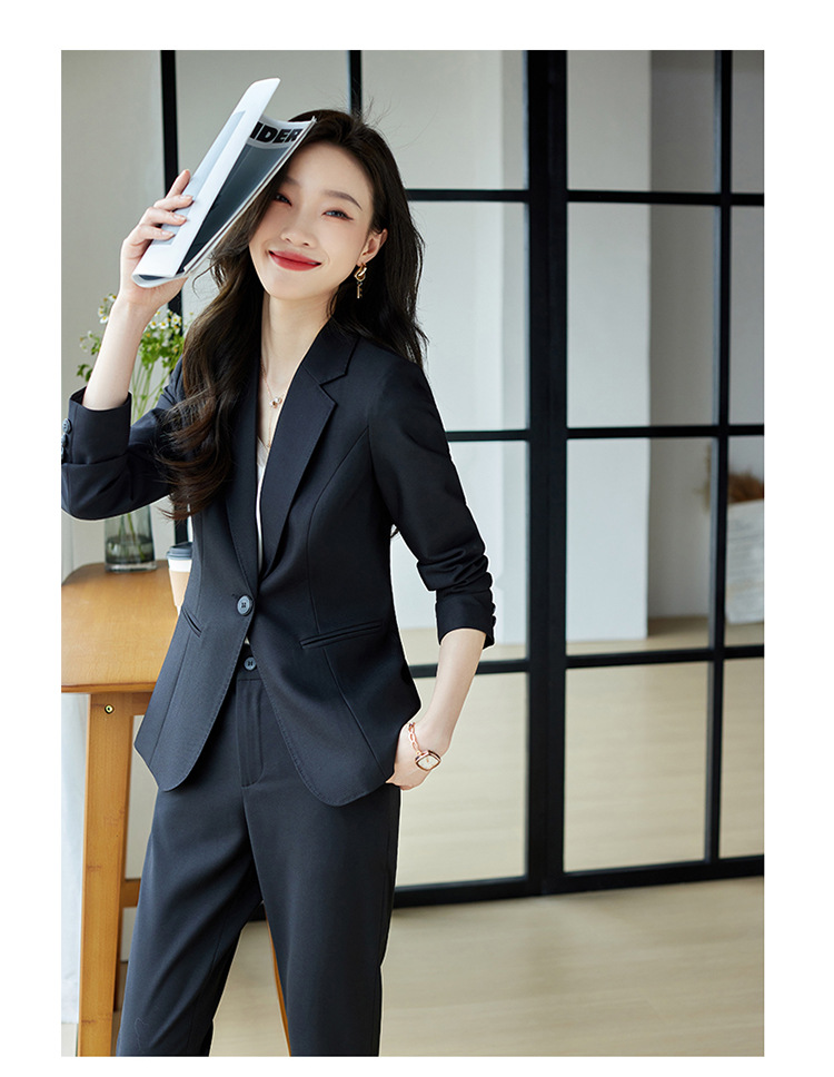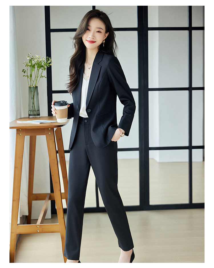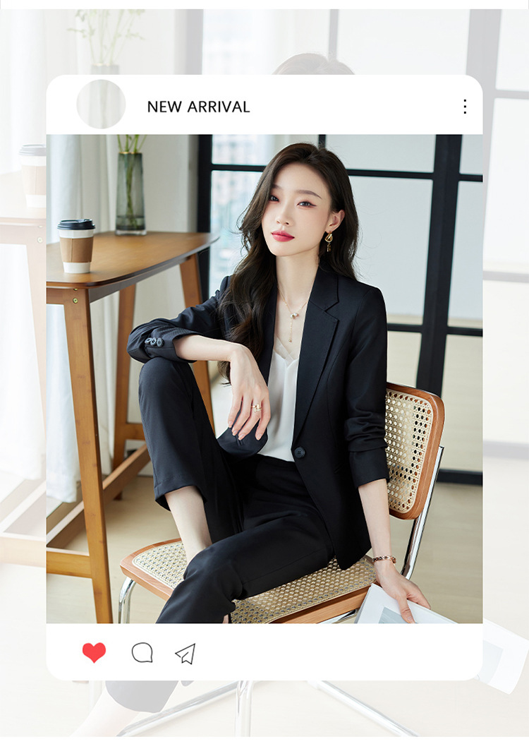ALBB-咖色小西装套装女2023早秋新款韩版时尚修身职业装西服两件套
