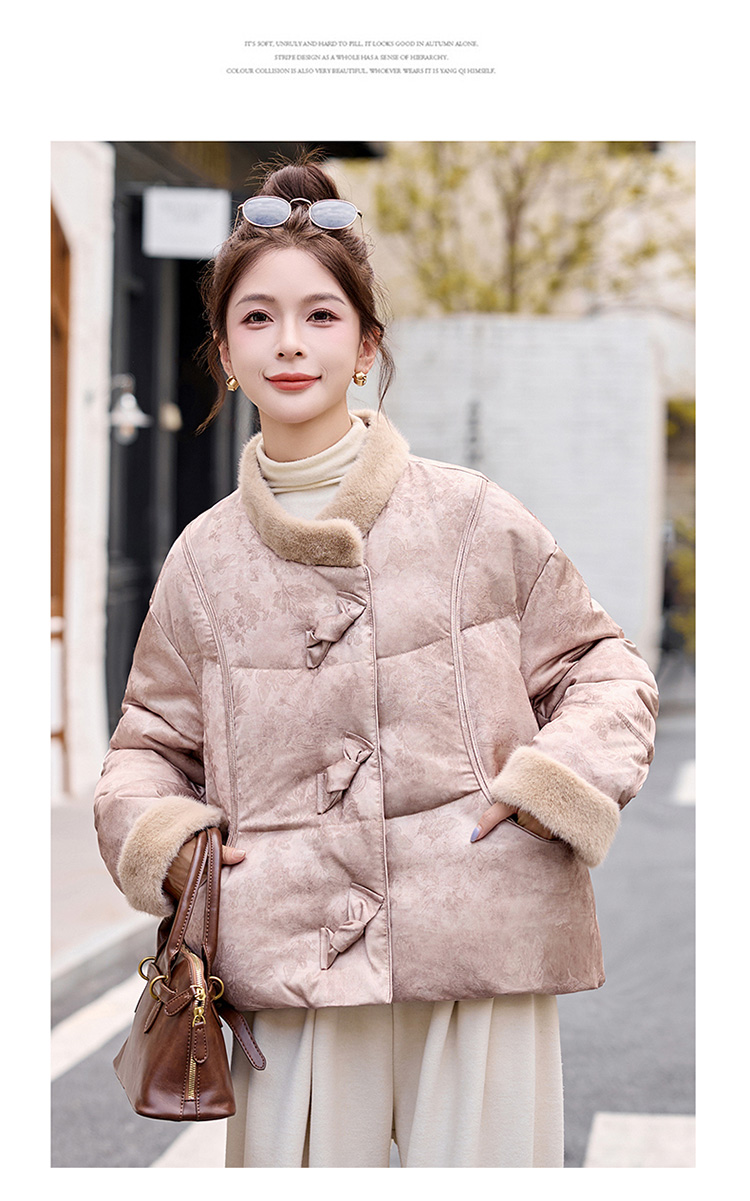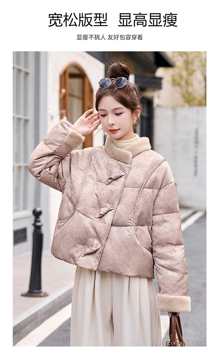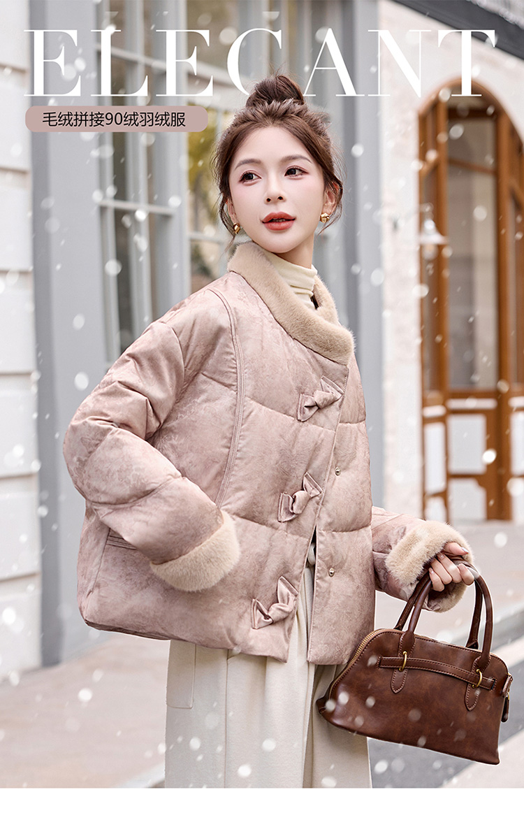 新中式国风羽绒服,仿水貂毛拼接宽松白鸭绒外套HR-YAX2555