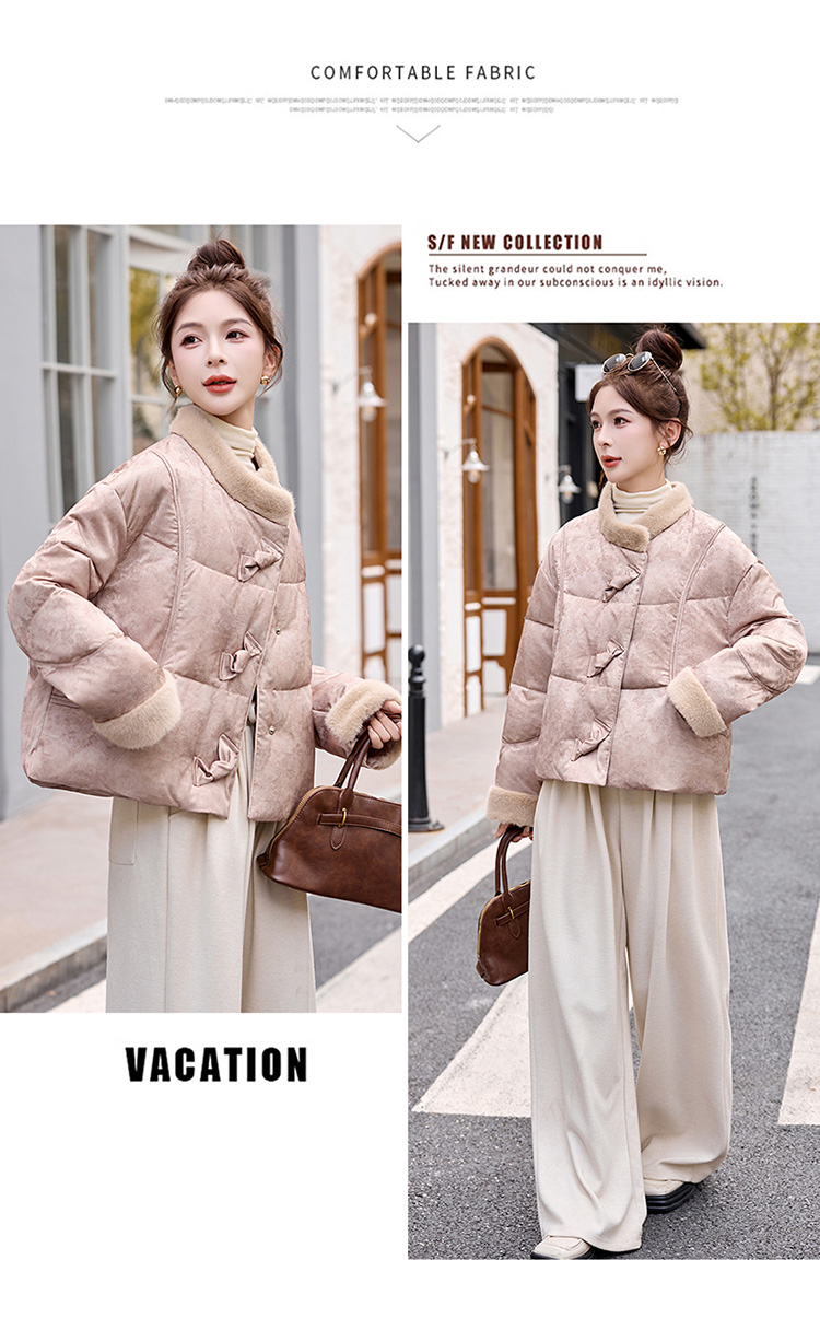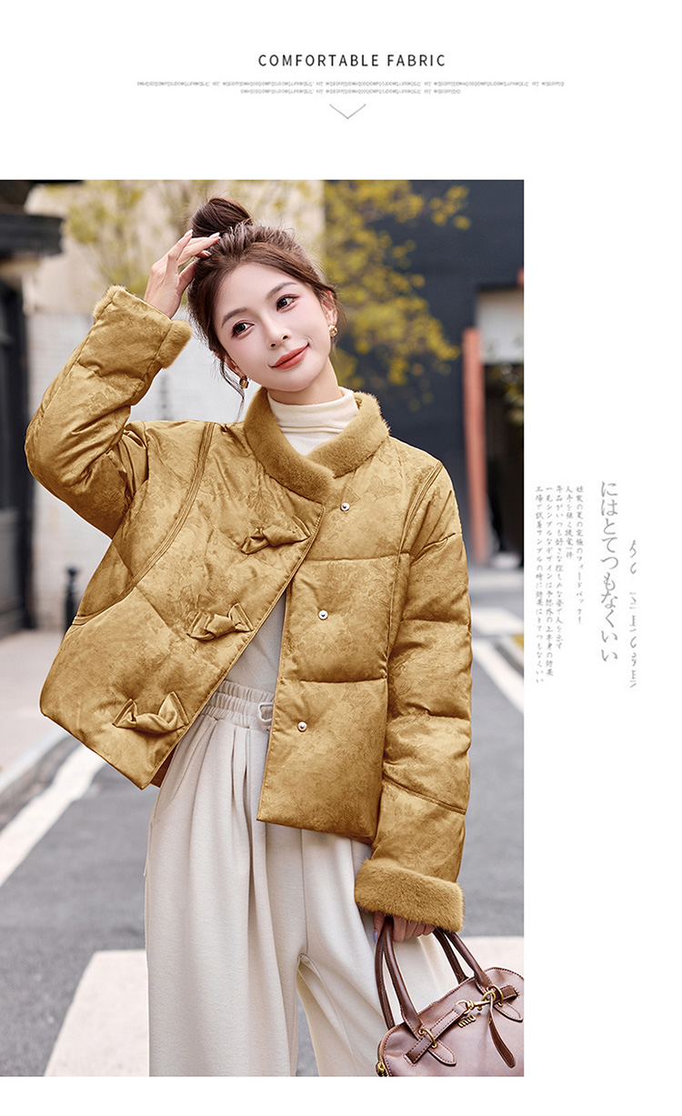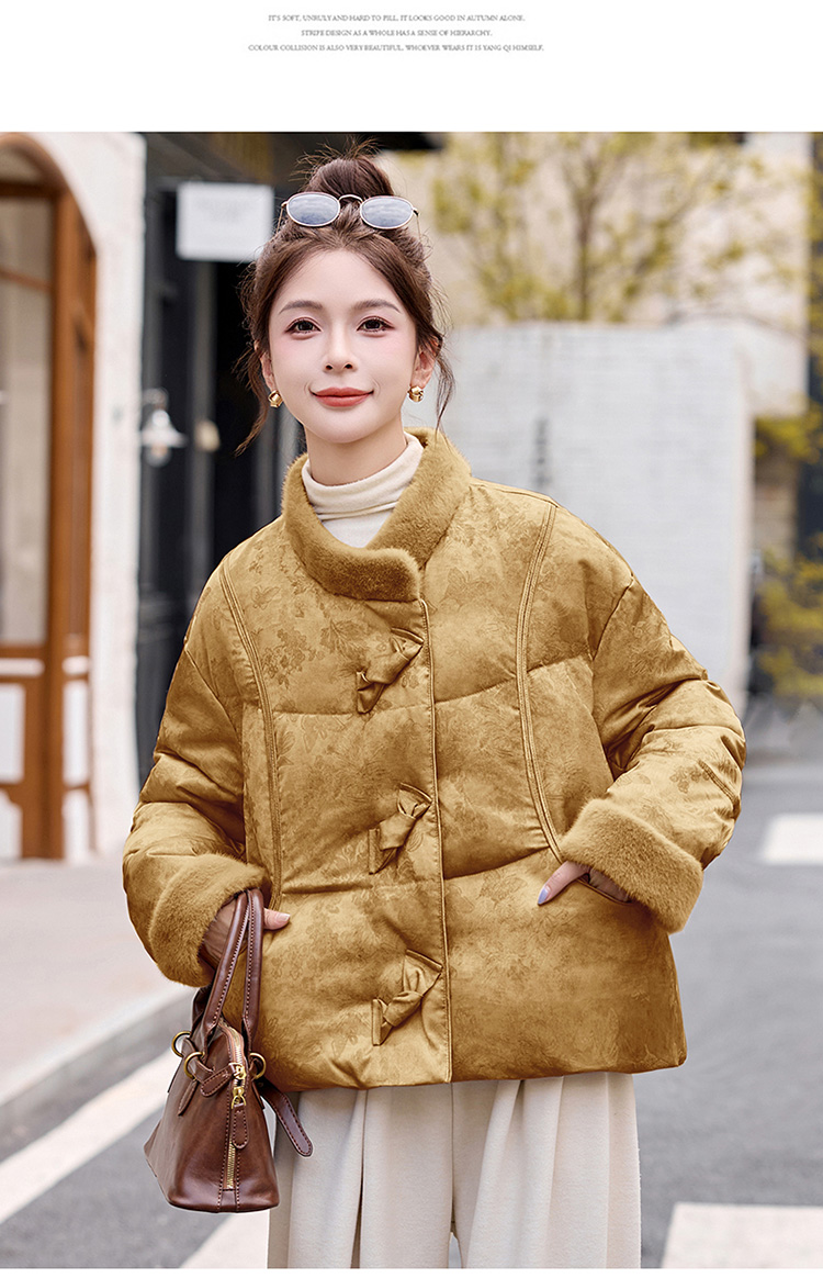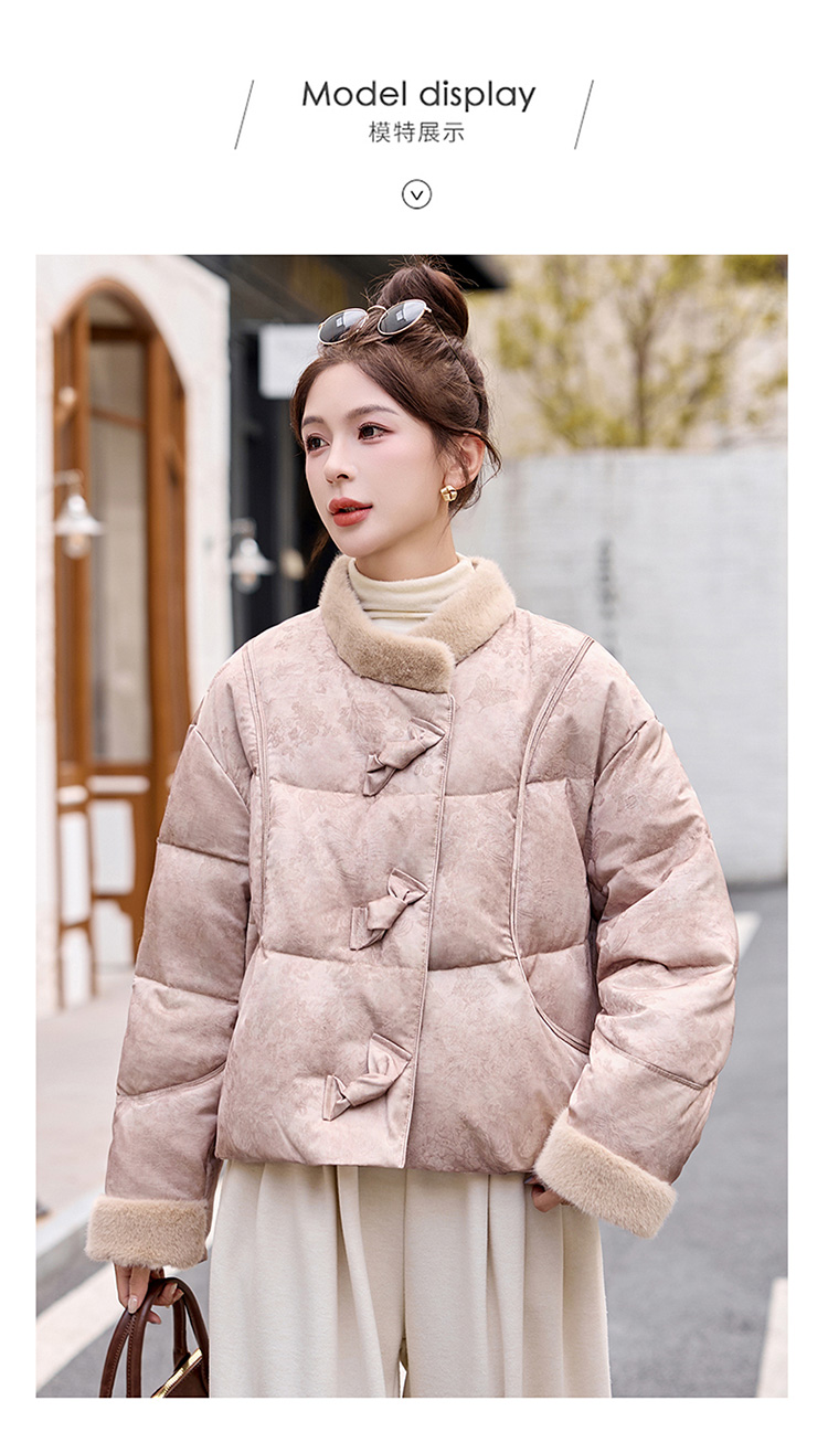 新中式国风羽绒服,仿水貂毛拼接宽松白鸭绒外套HR-YAX2555
