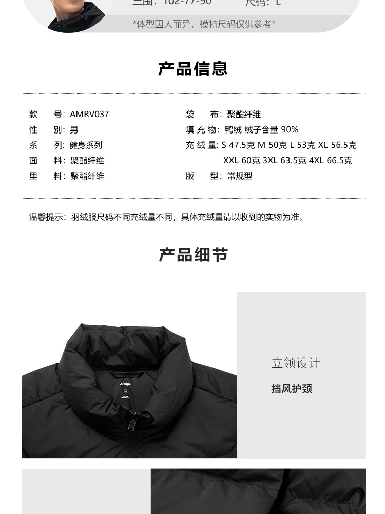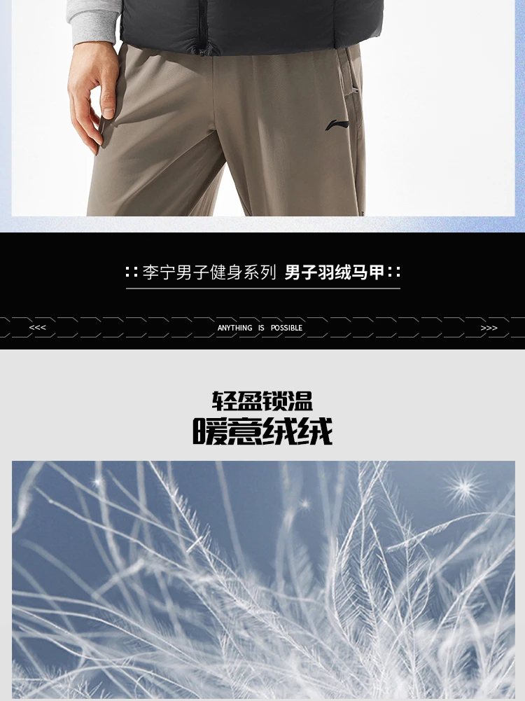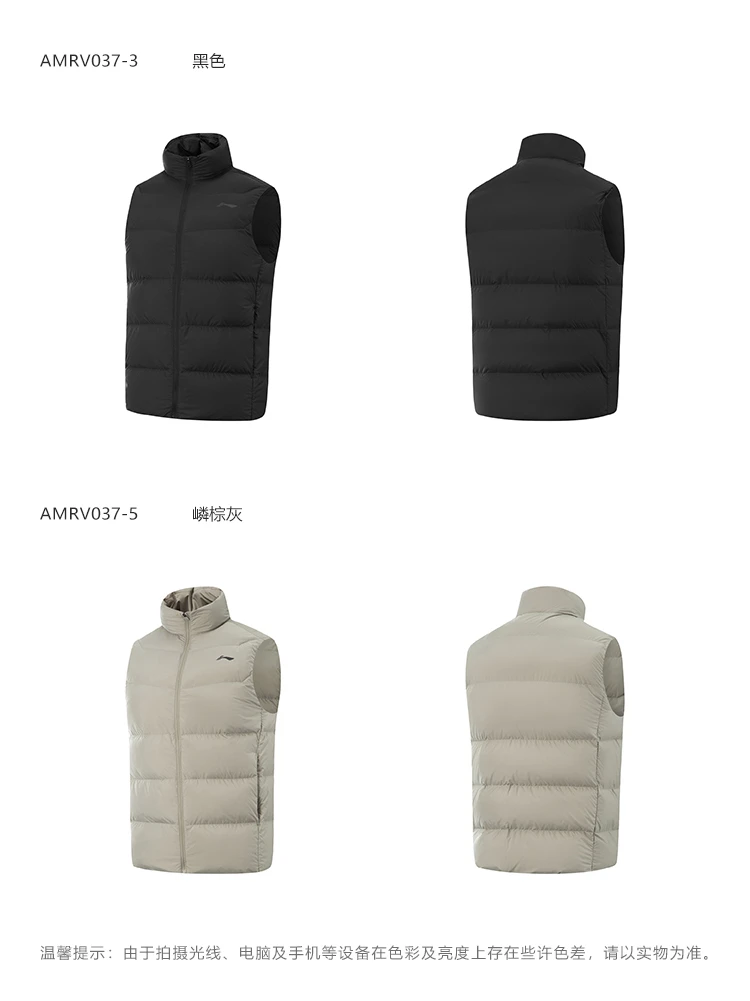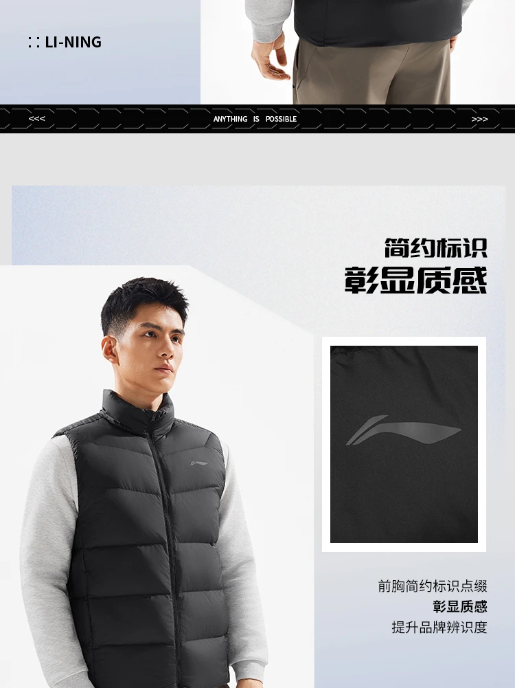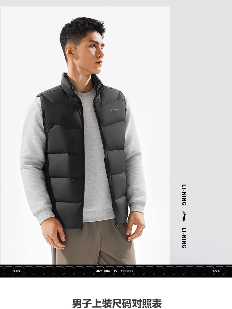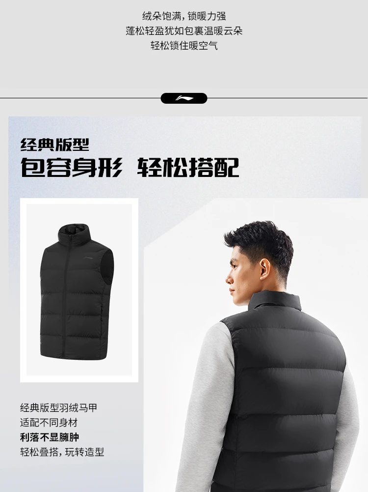 李宁男子90%鸭绒羽绒马甲AMRV037