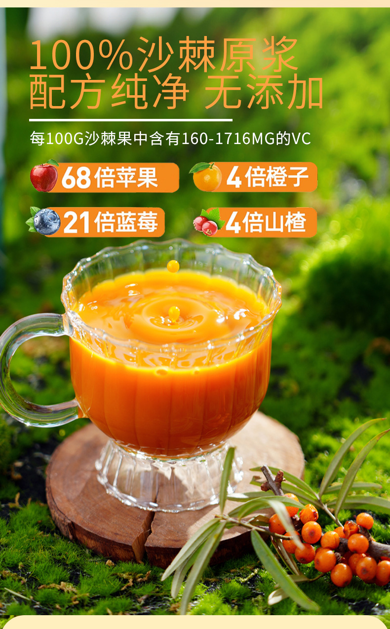 3袋巨划算【无添加❗️配方纯净】宁夏沙棘原浆头茬鲜沙棘NFC沙棘原浆。ja