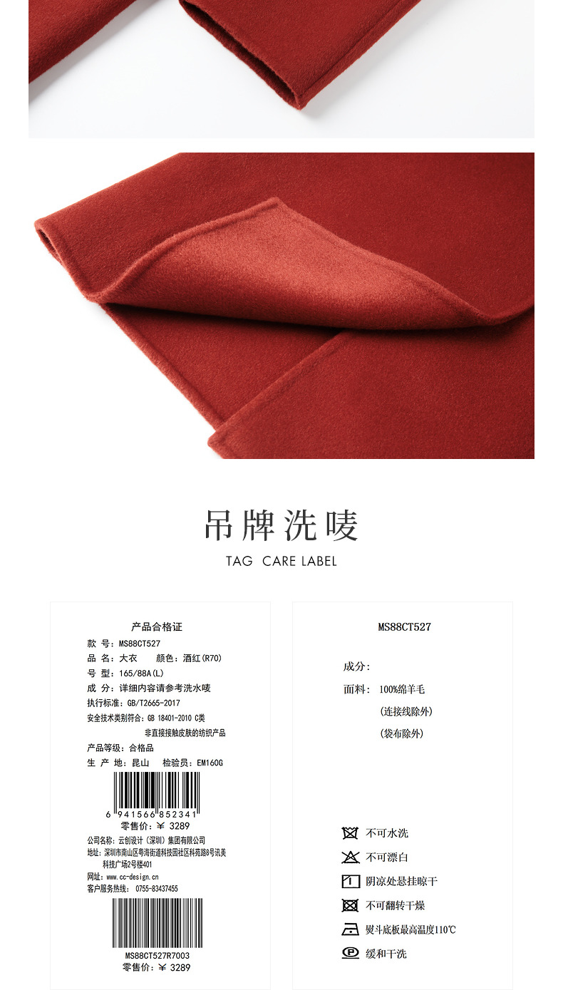 [东方新摩登]MAXRIENY极简复古直身大衣长款双面呢外套(货号:MS88CT527)
