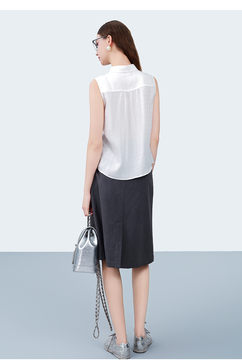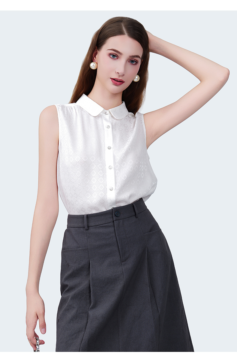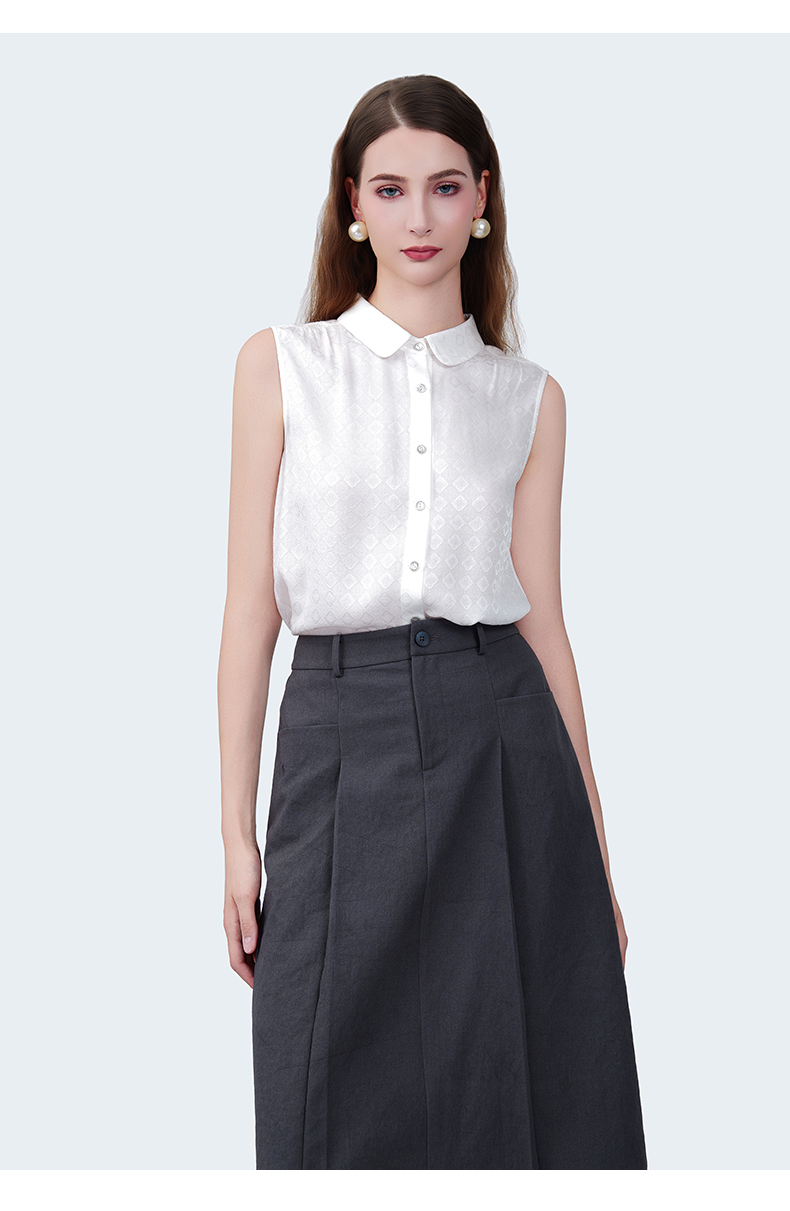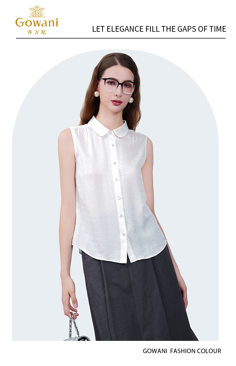 乔万尼新品2025100%真丝花罗无袖衬衫领上衣ED2C496