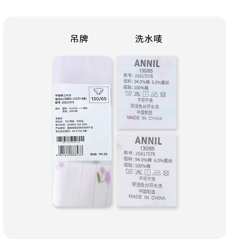 【实体店同款】女童三角裤三件装春季新款安奈儿童装JG617075