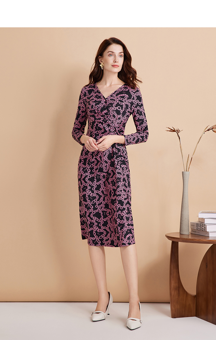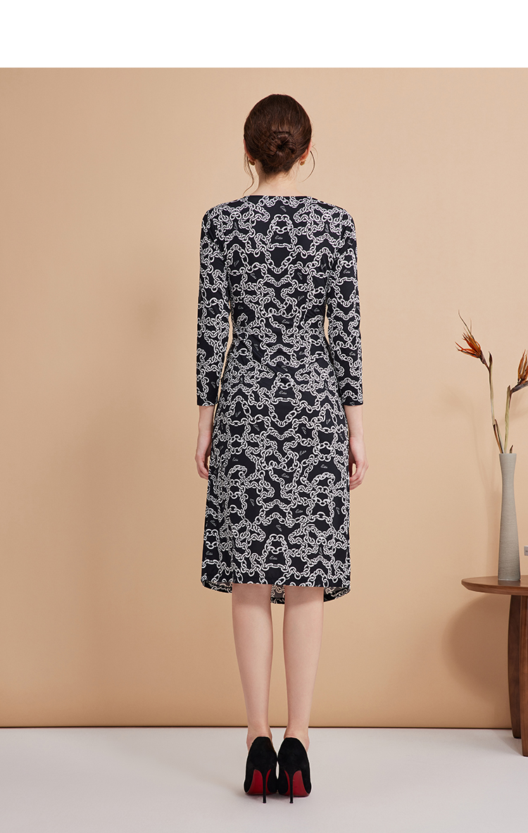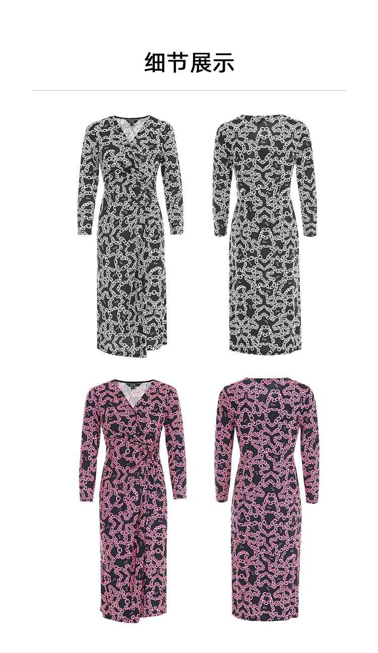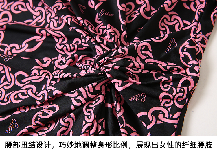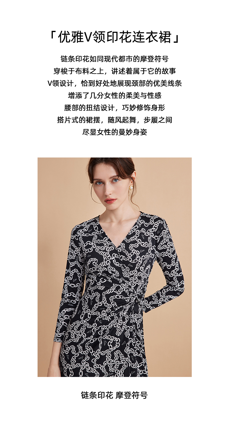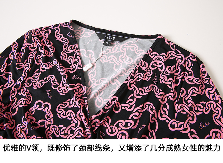 EITIE连爱特爱秋季新款时尚洋气显瘦V领收腰连衣裙女7507236