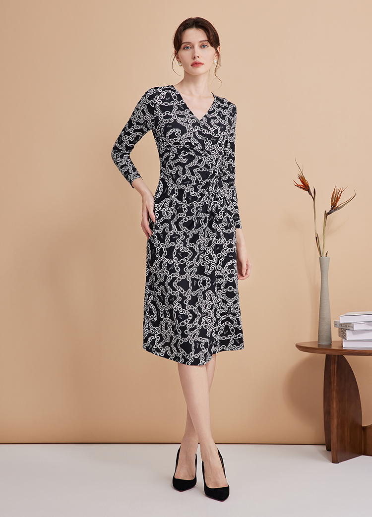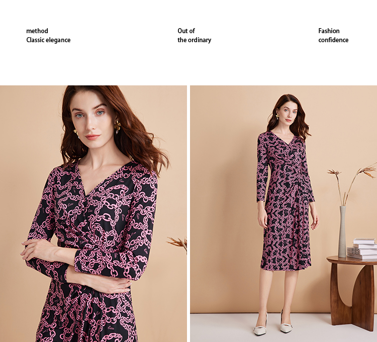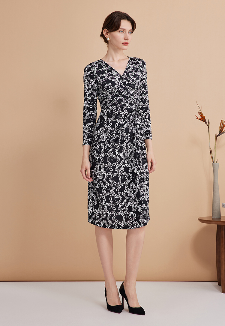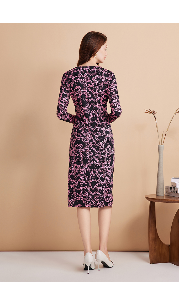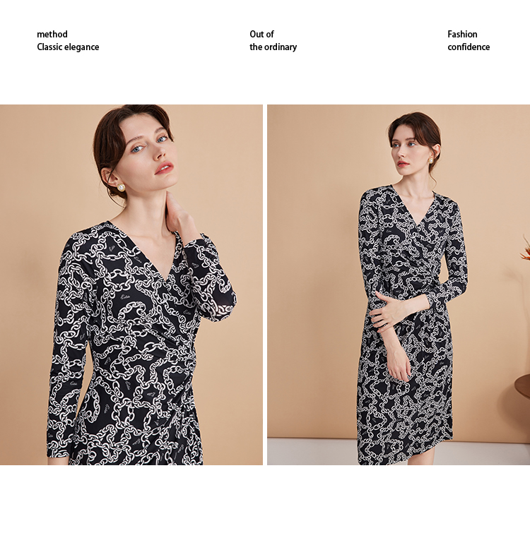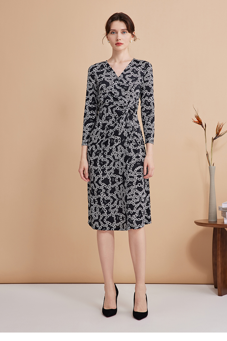 EITIE连爱特爱秋季新款时尚洋气显瘦V领收腰连衣裙女7507236