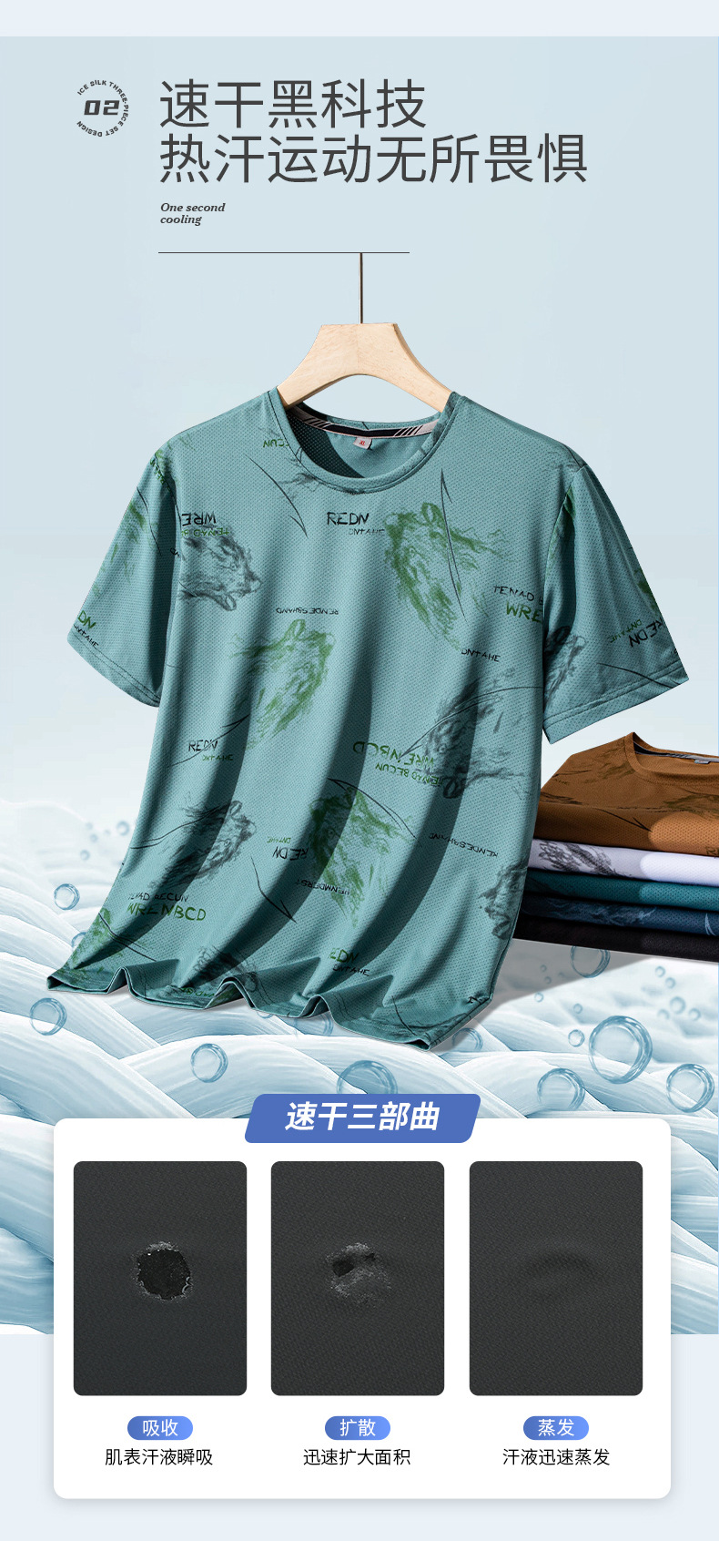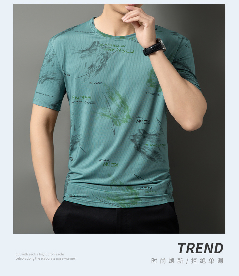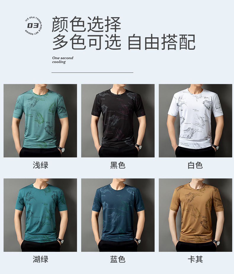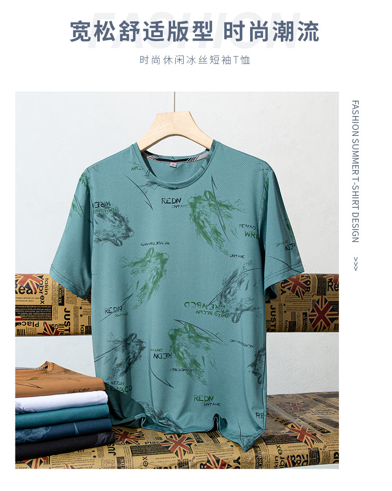【DSK】大依优型大码冰丝短袖T恤凉感圆领潮牌加大码宽松速干男士上衣
