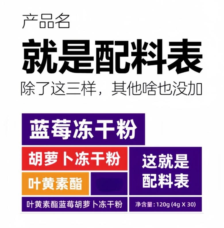 【拓高】叶黄素酯蓝莓胡萝卜冻干粉120克(4克*30条)/盒*3盒(到手90袋)