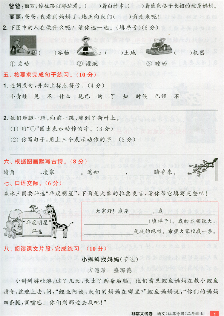 2025秋 非常大试卷 语文 二年级上册 人教版 部编版 小学教辅 测试卷 同步训练 2上 含答案讲解视频 通成学典