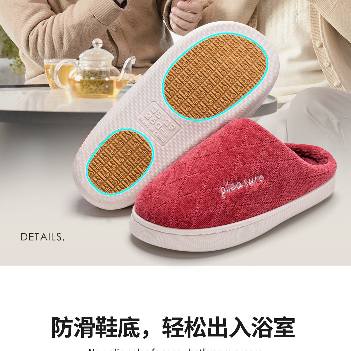 丁摩 老人防滑棉拖鞋男女士秋冬季室内家居保暖厚底情侣毛毛拖鞋5ZF-27212