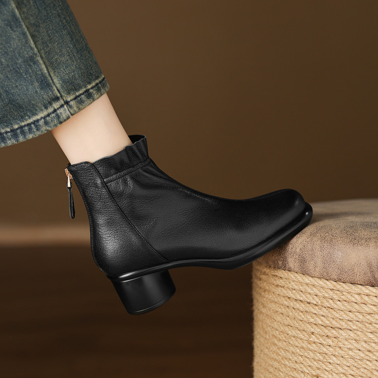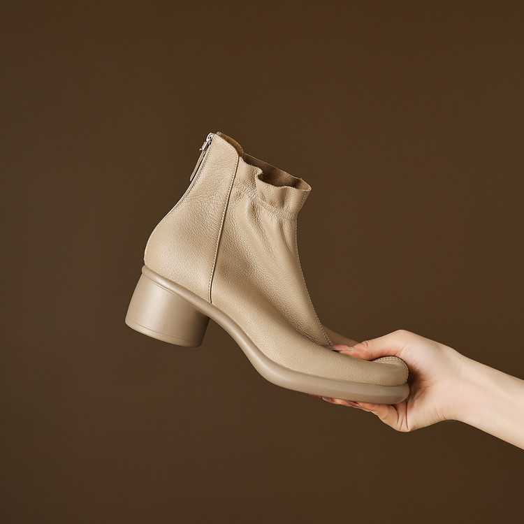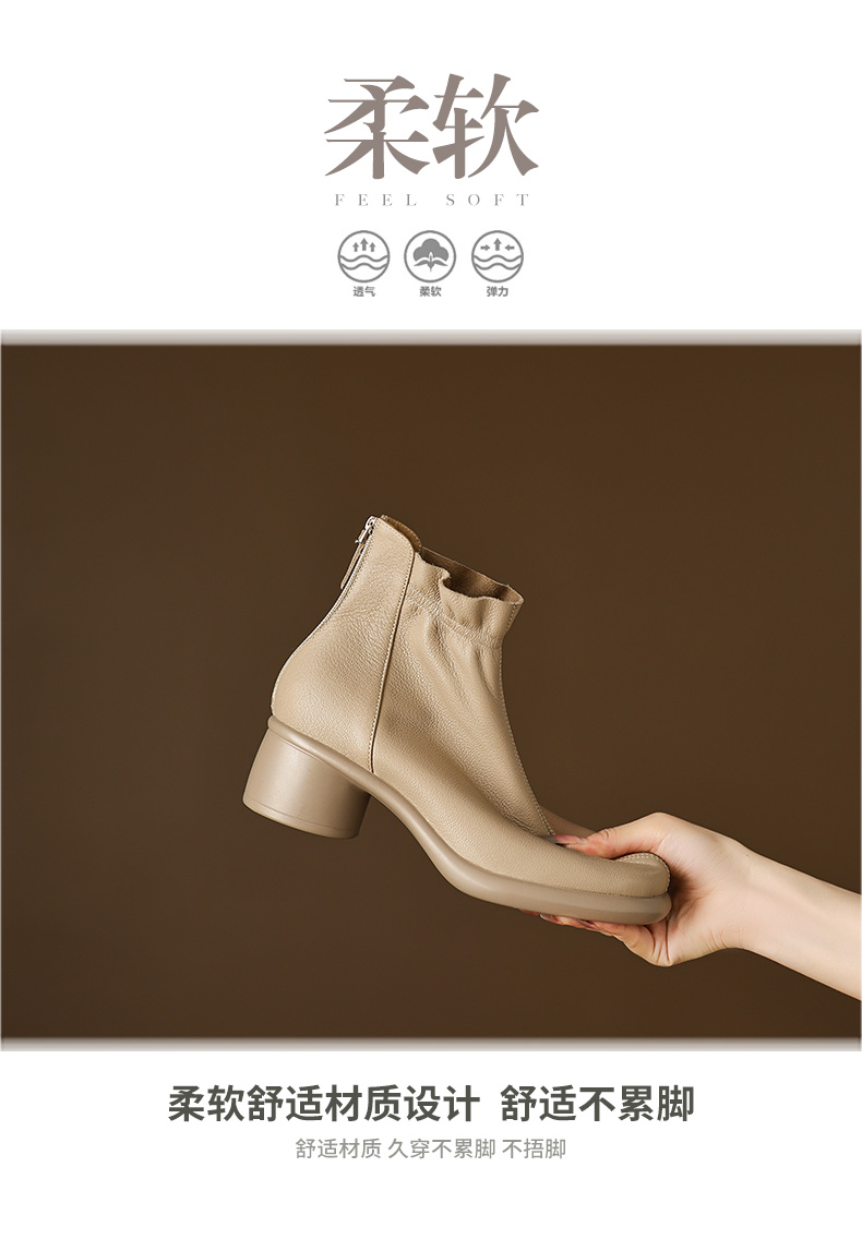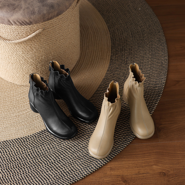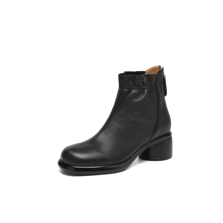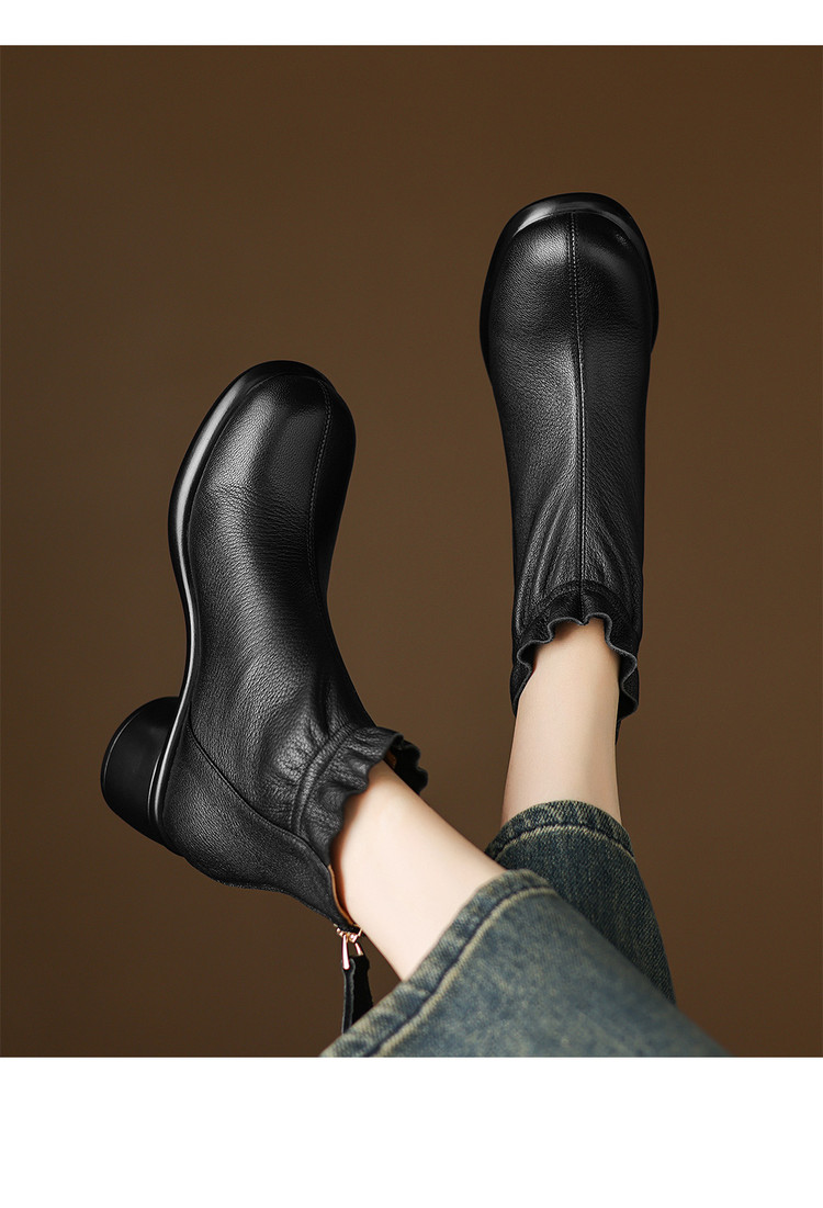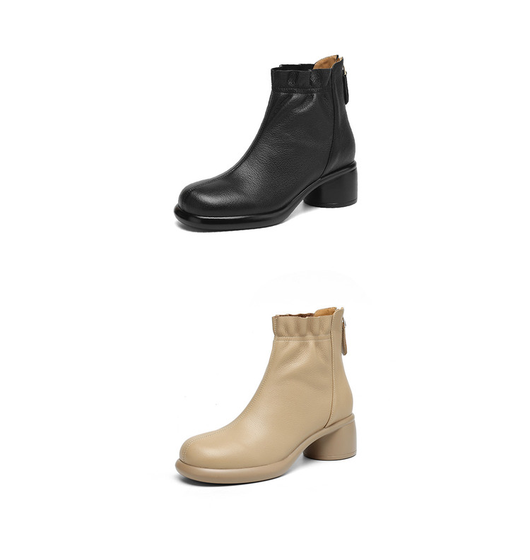 【预售5天】软羊皮粗跟厚底舒适短靴女秋冬新款圆头中跟百搭马丁靴LD&7458